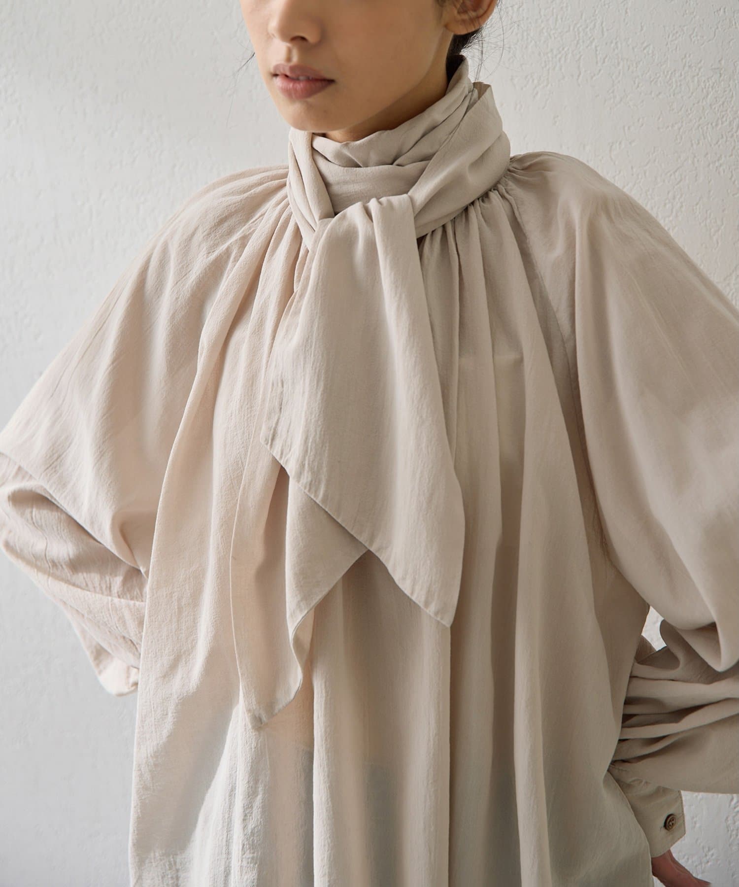 ■軽やかでシャリ感のあるボイル素材を使用したボウタイブラウス。