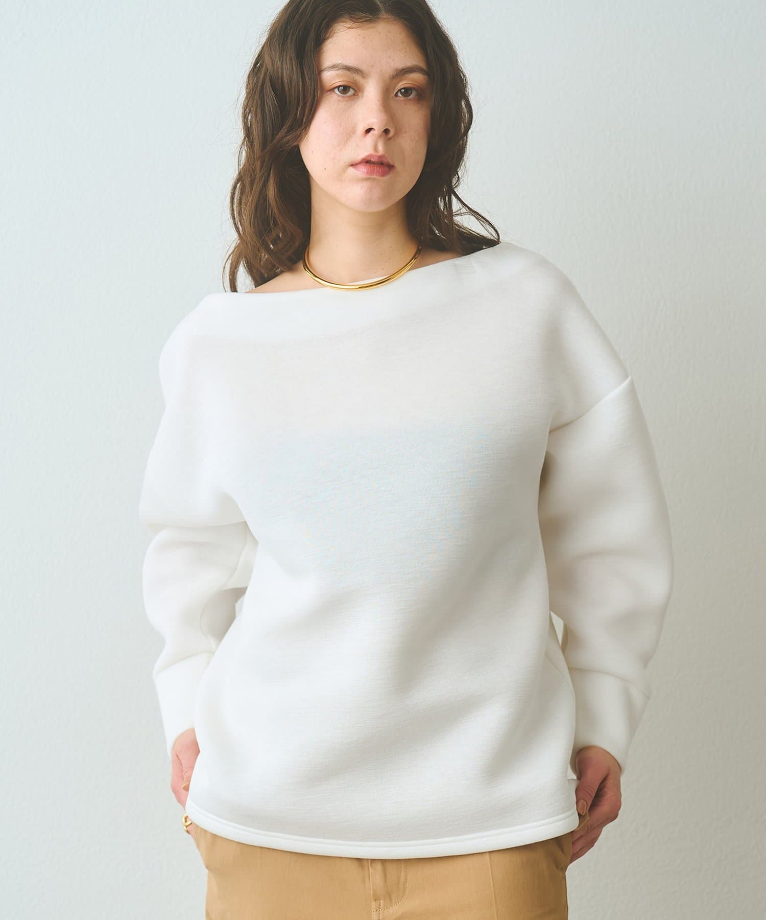 • Whim Gazette(ウィム ガゼット) オフショルダンボールプルオーバー
