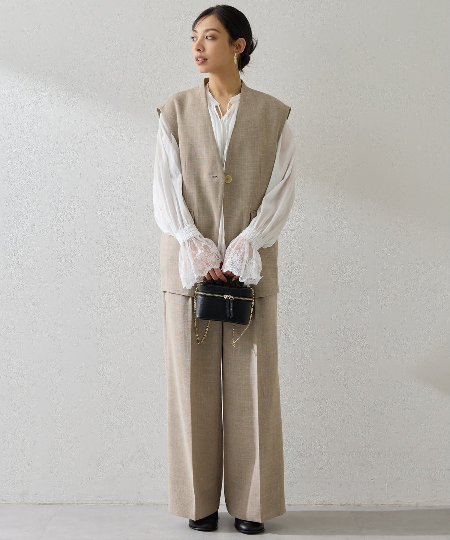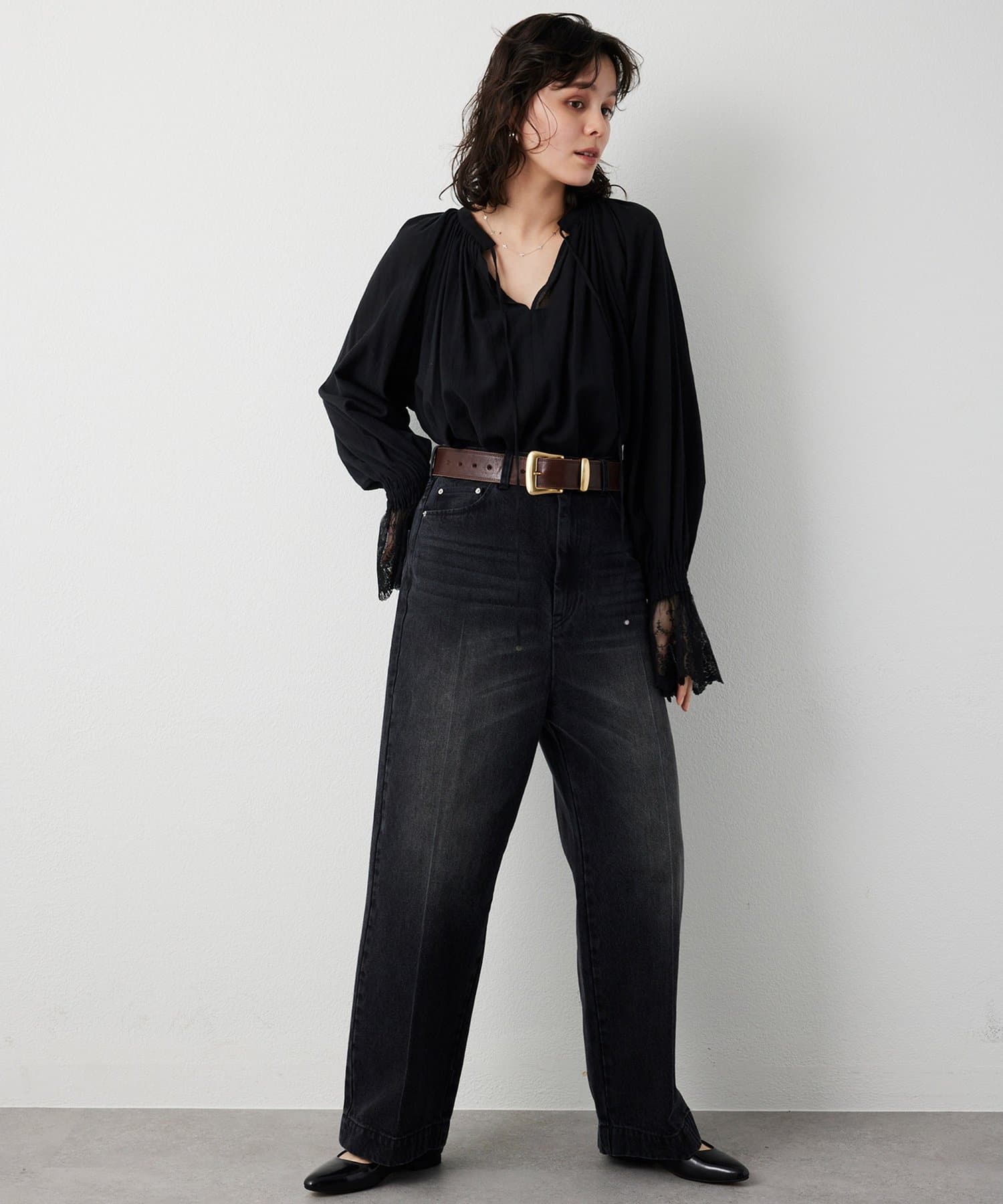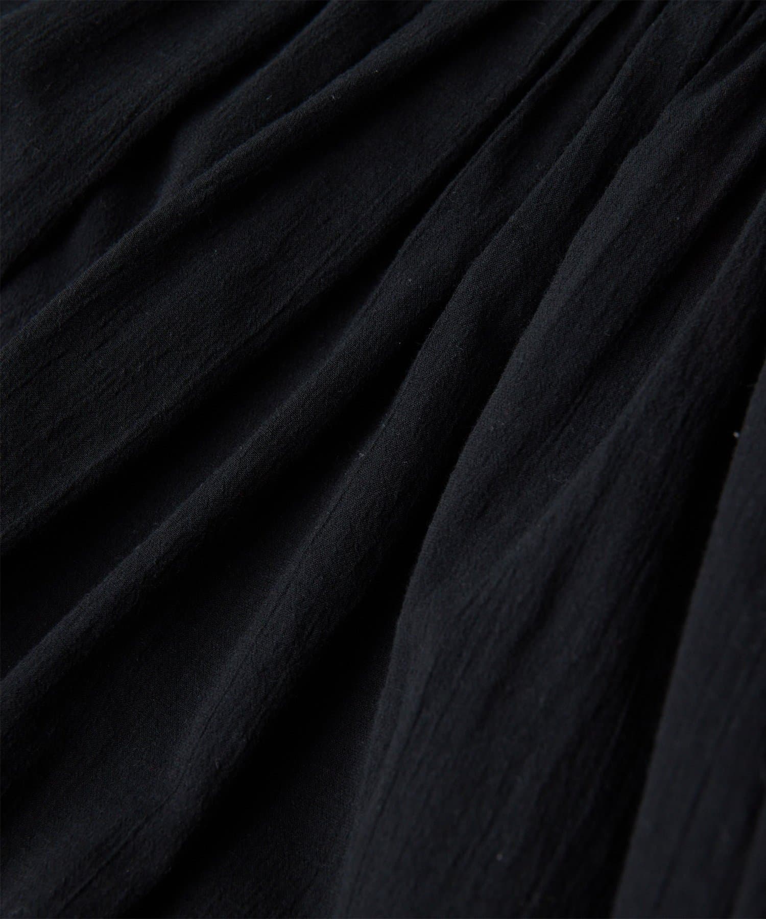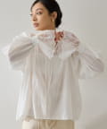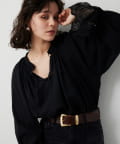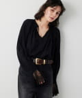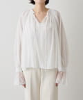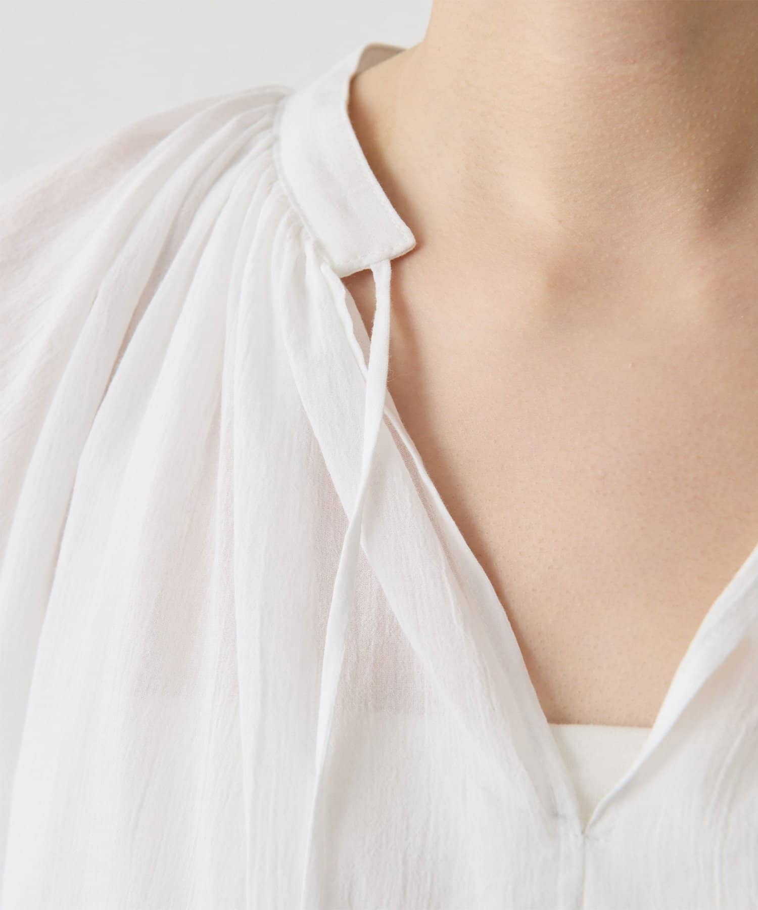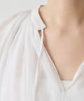 ■袖口とネックにたっぷりギャザーを入れ、ナチュラルなシボ感のあるこなれたルックスに仕上げた一枚。