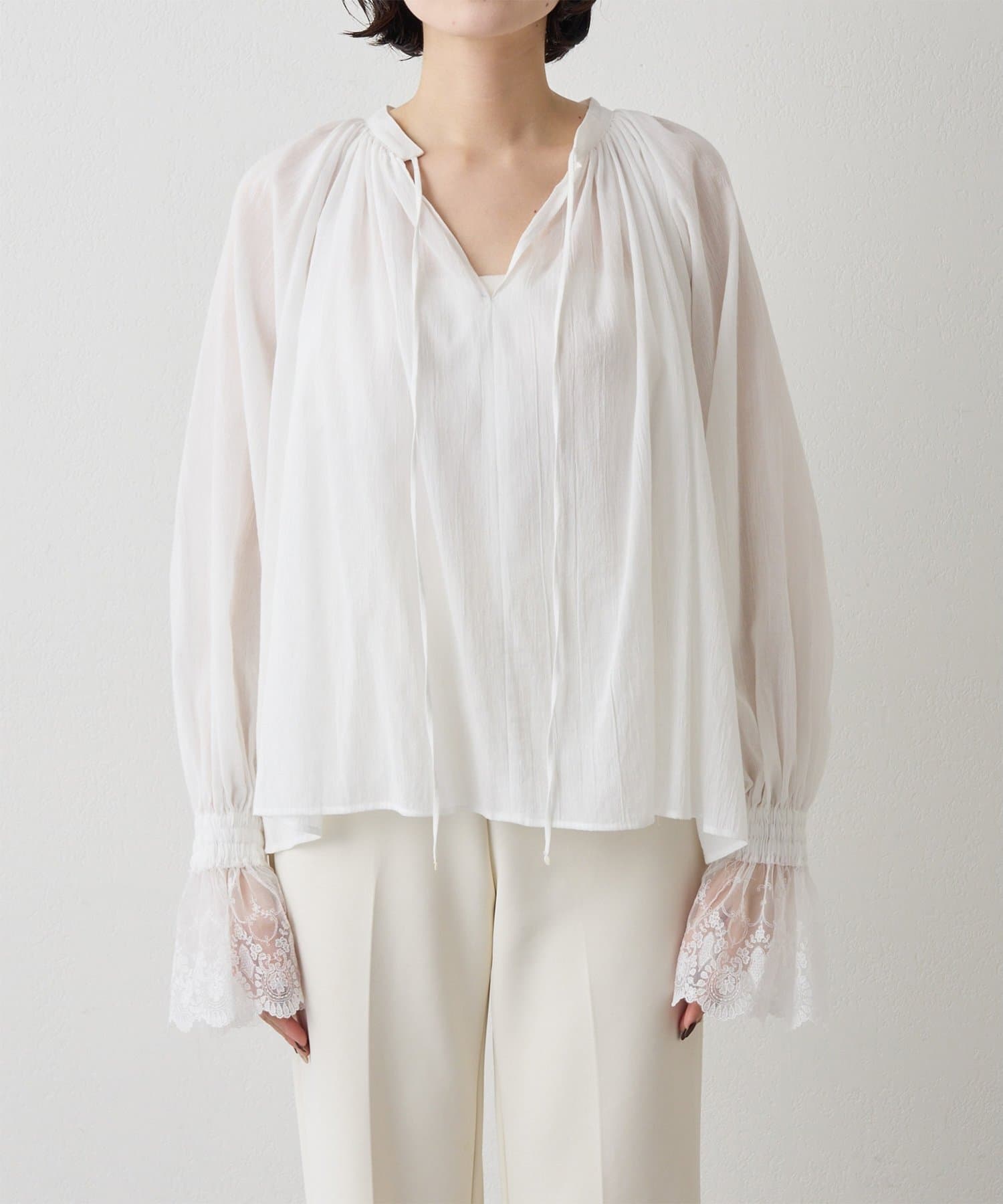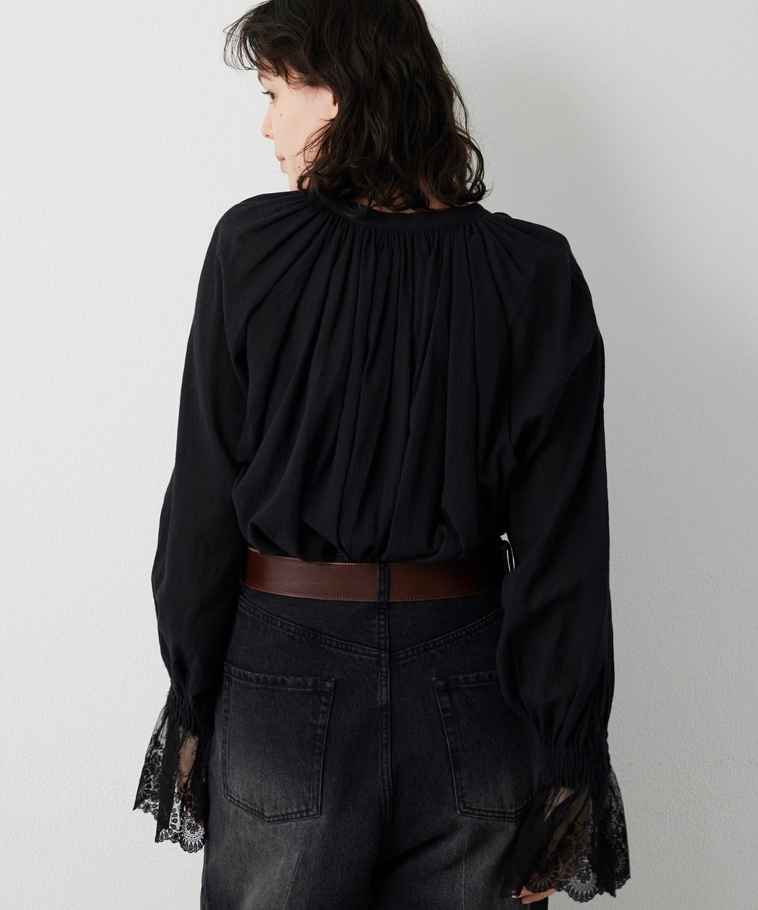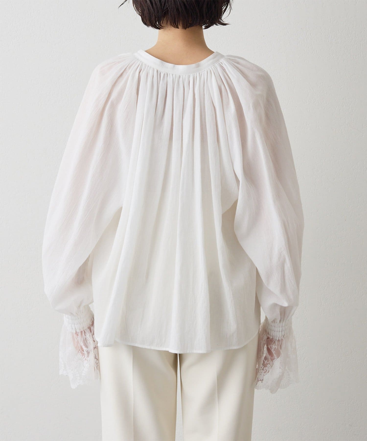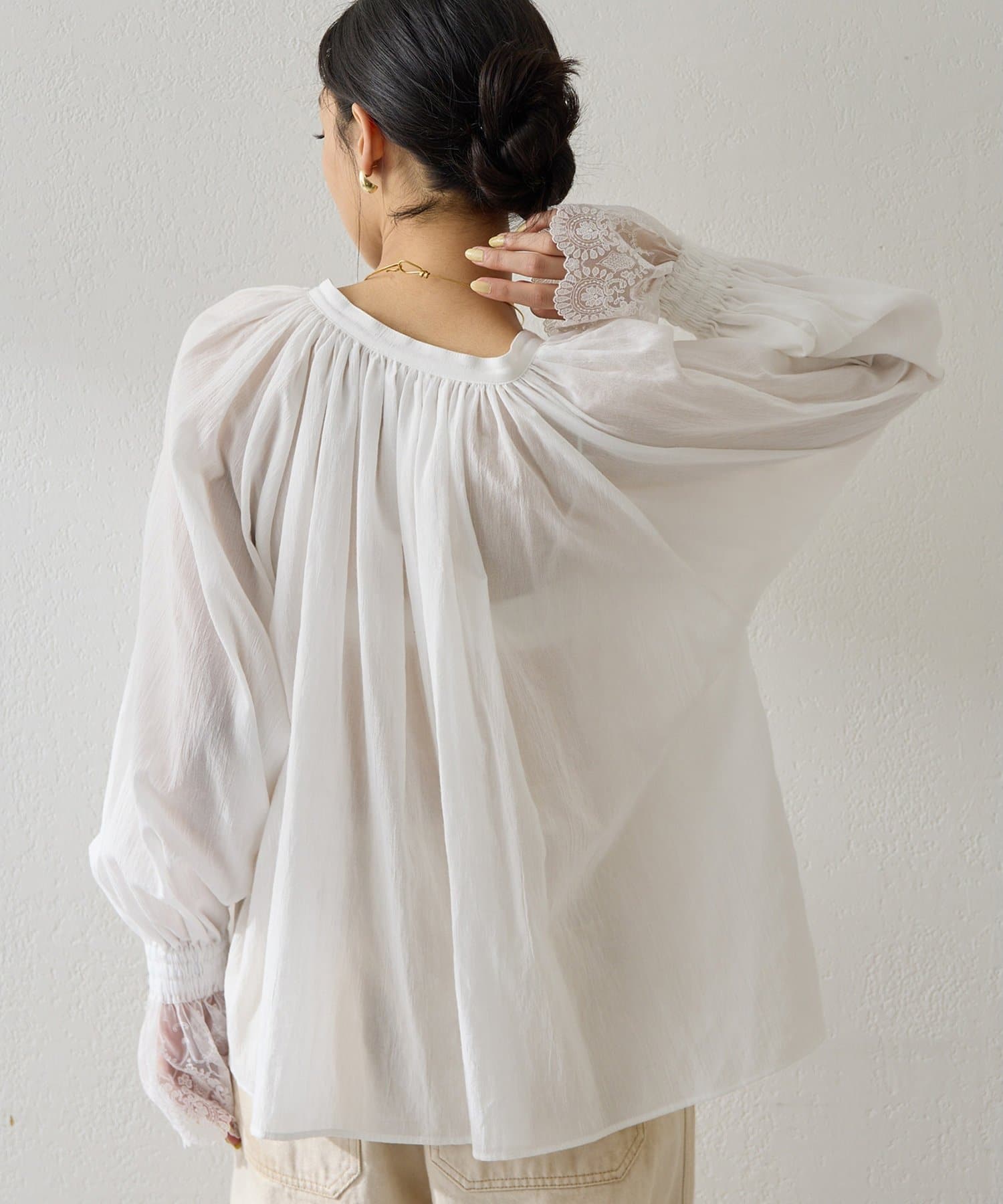 繊細なレースが手元で揺れる、軽やかギャザーブラウス