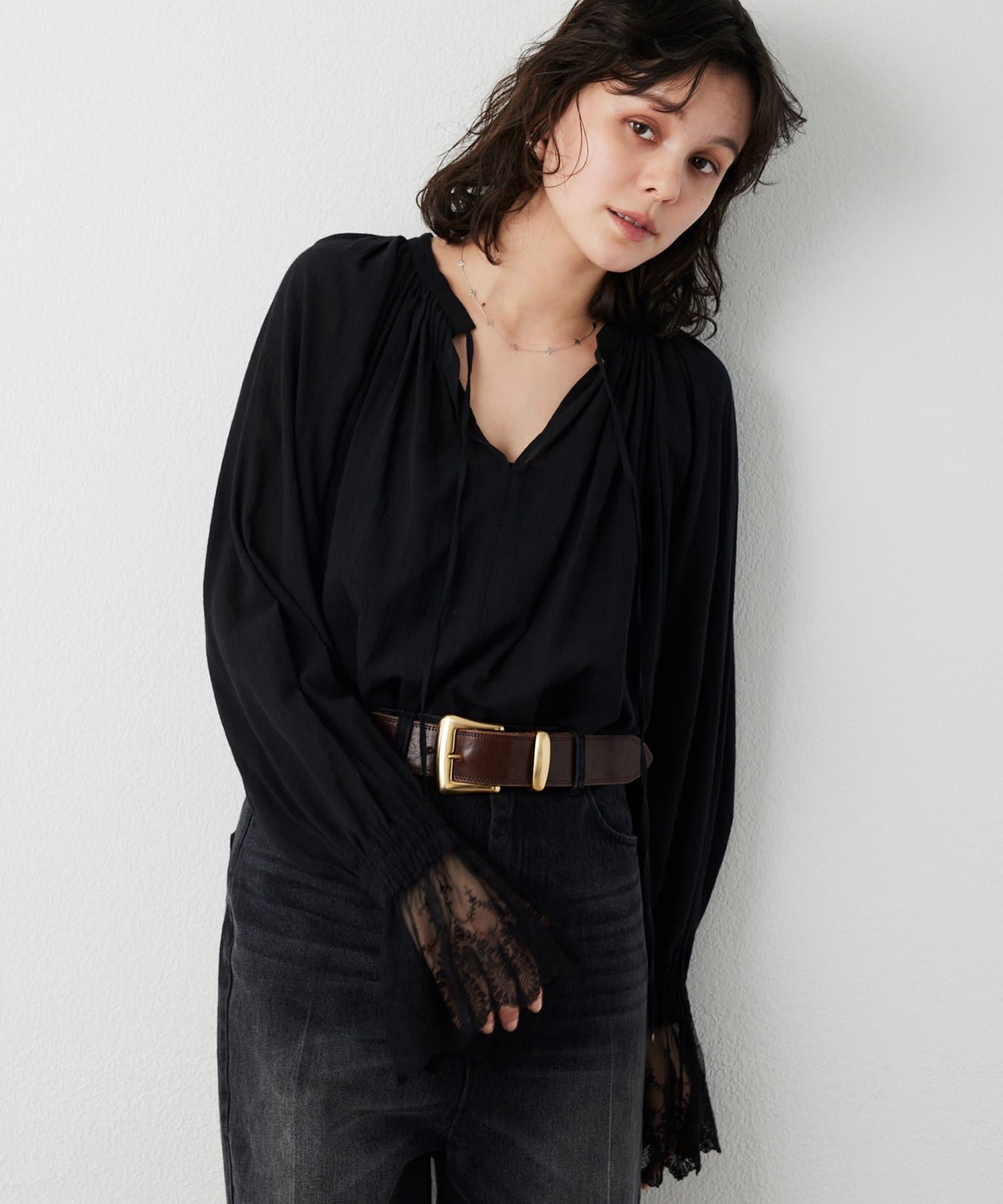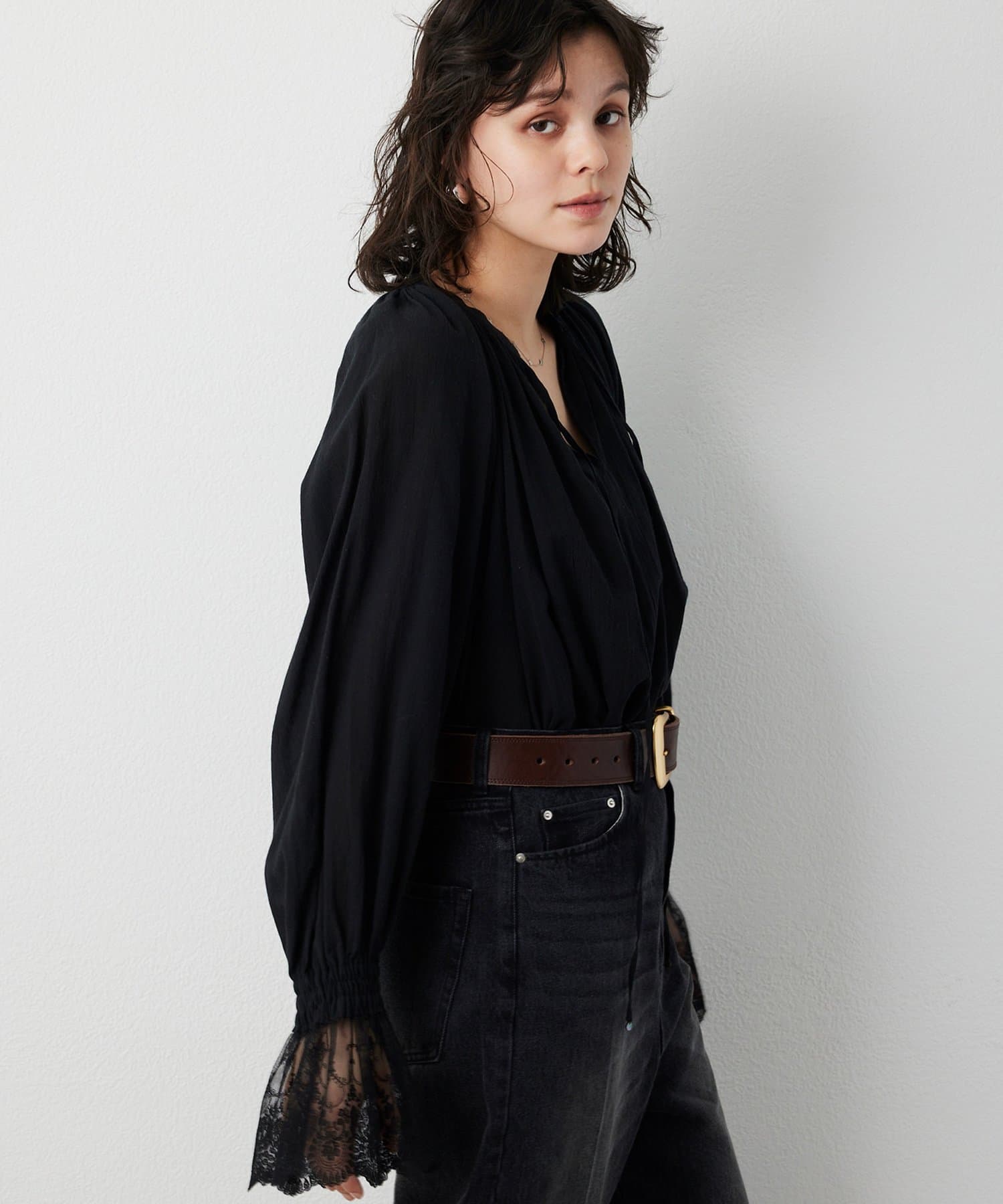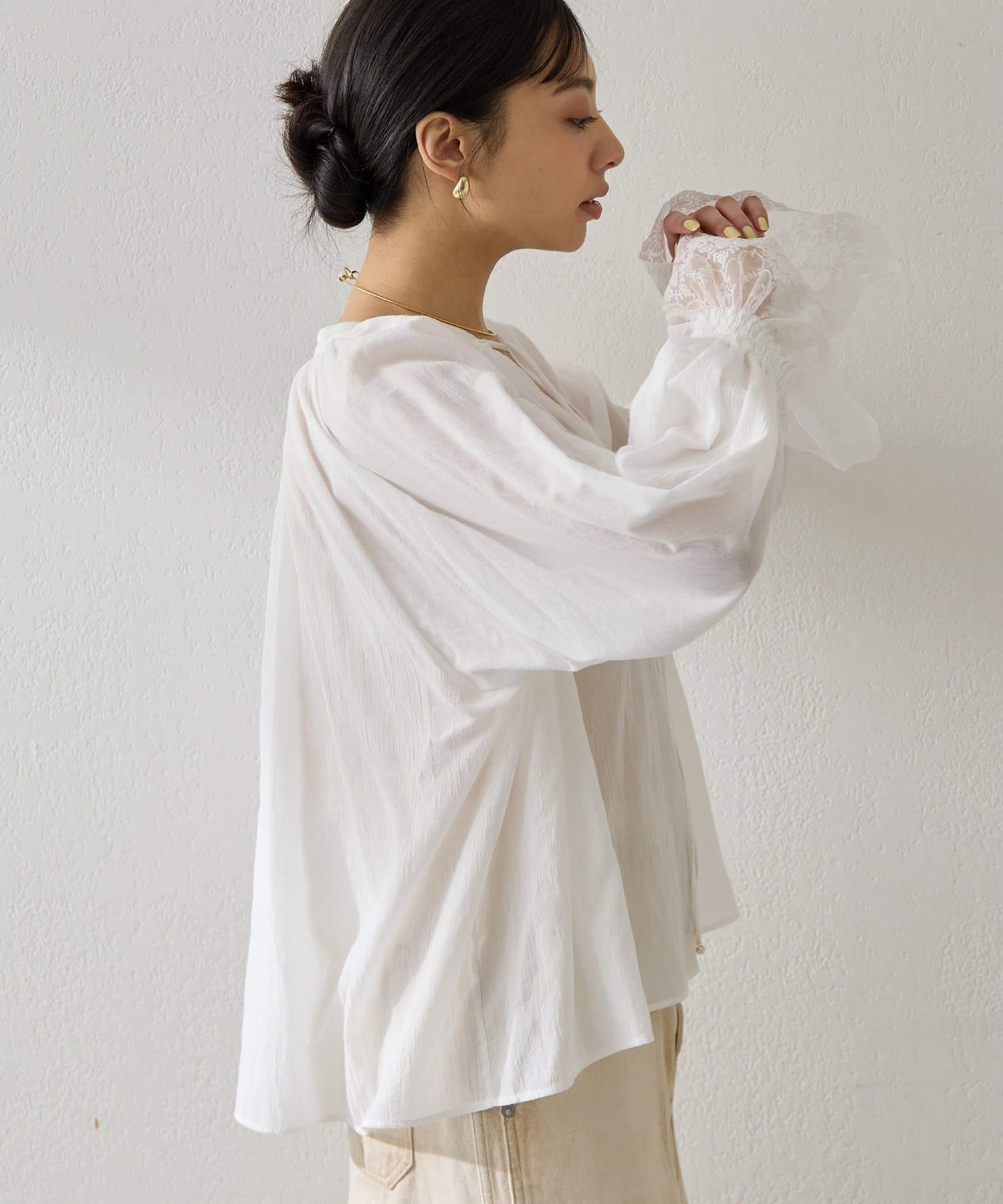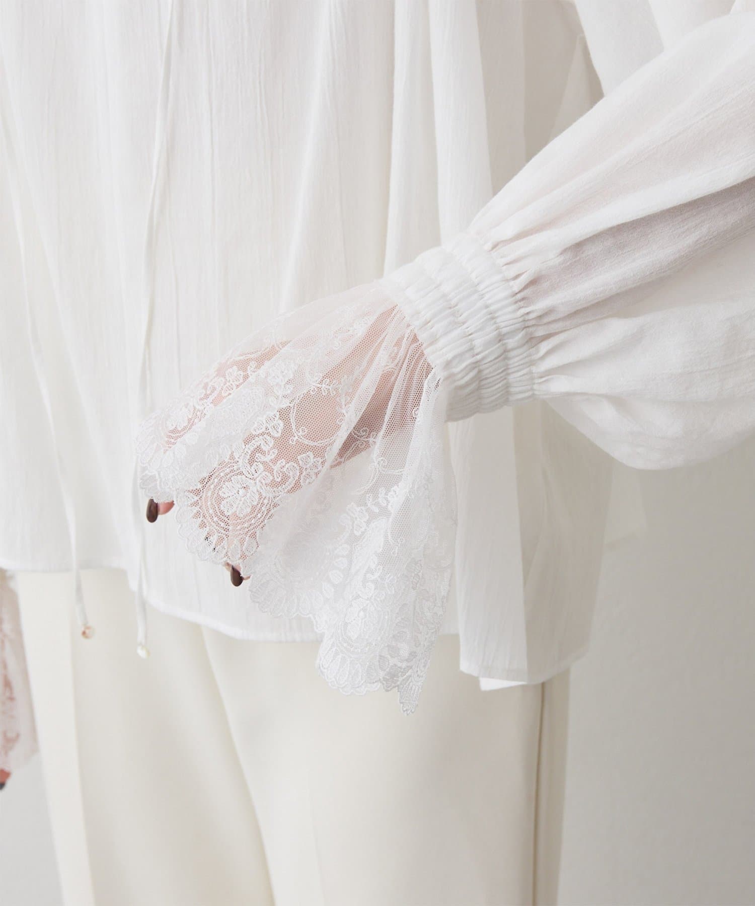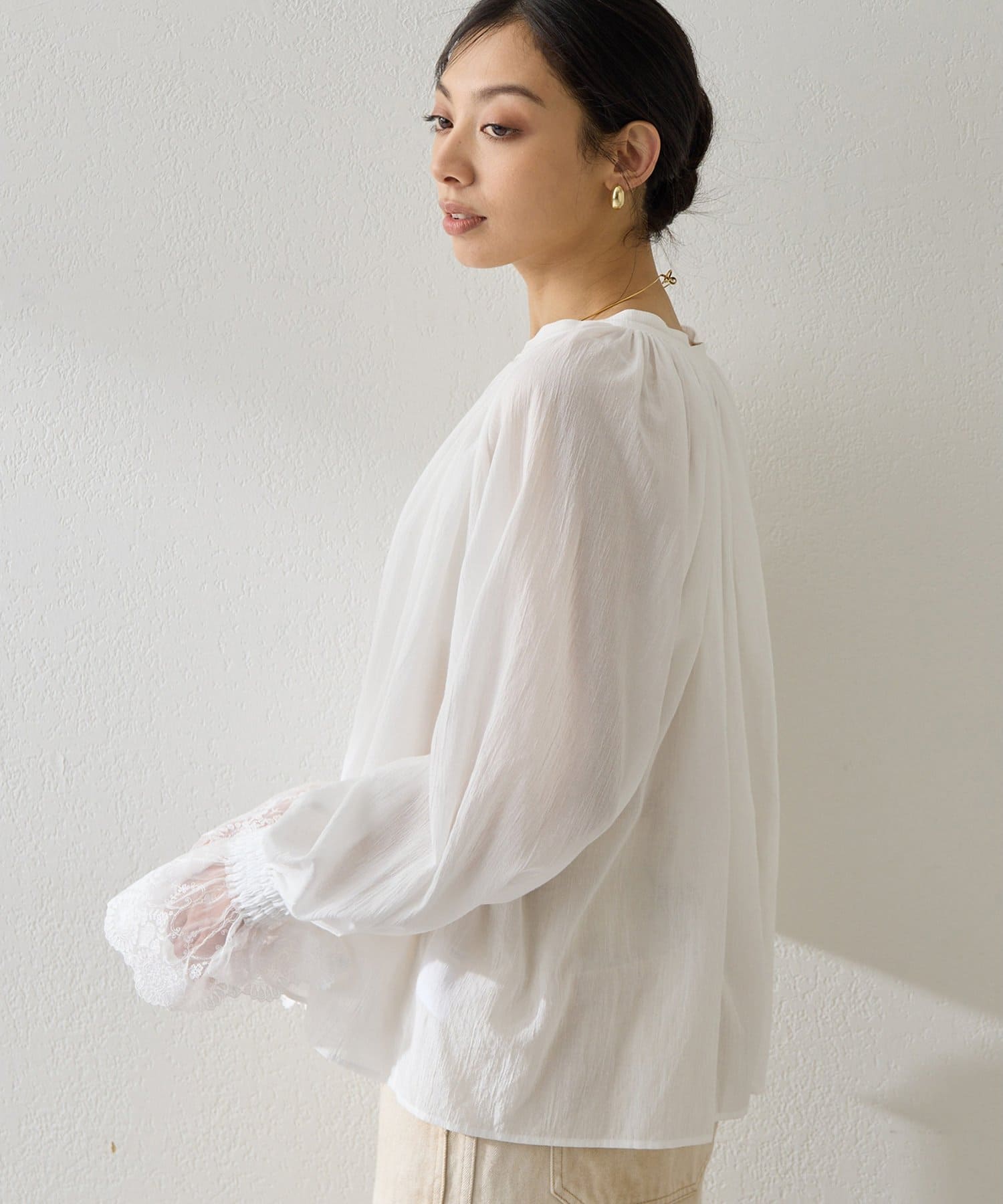 繊細なレースが手元で揺れる、軽やかギャザーブラウス