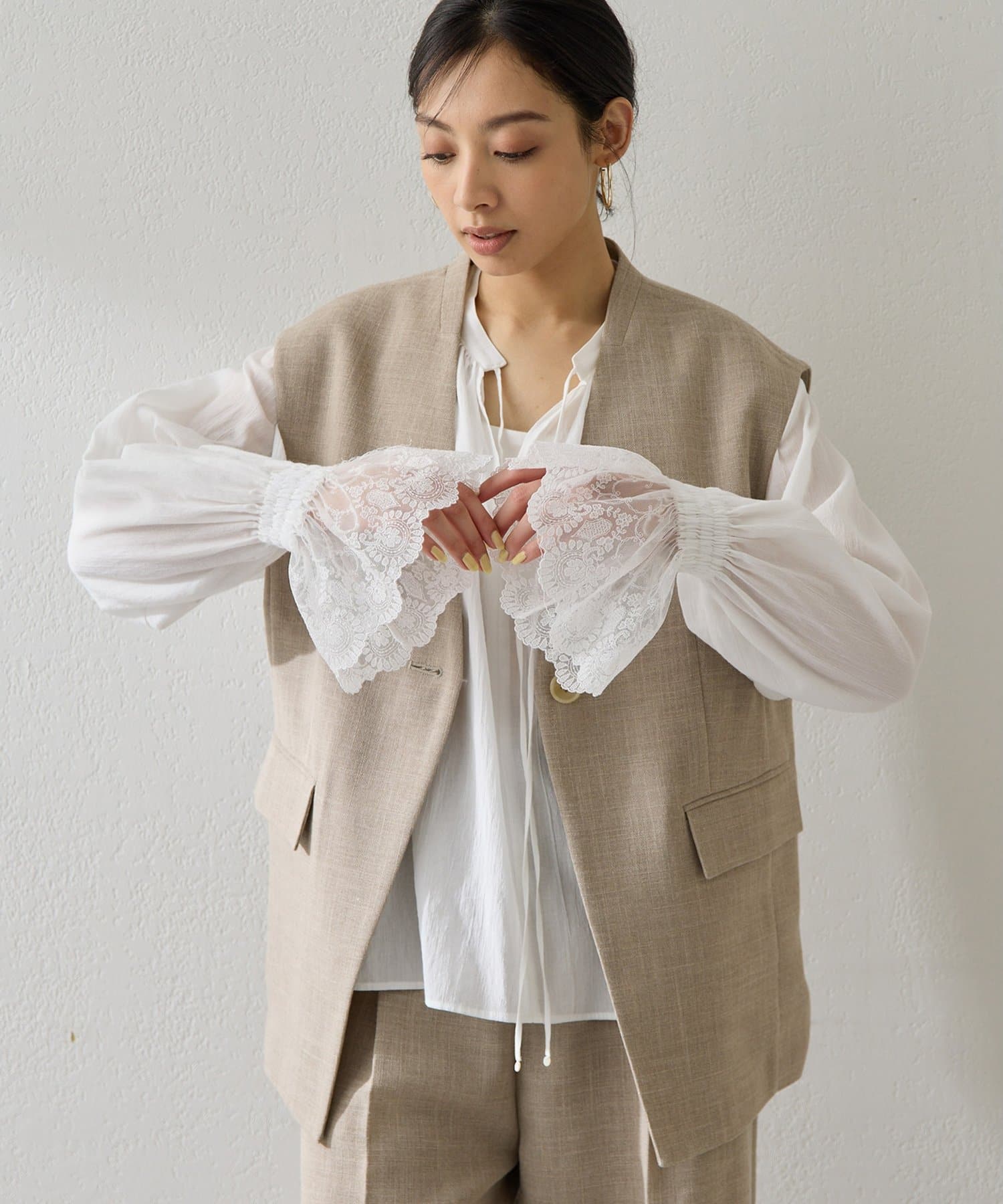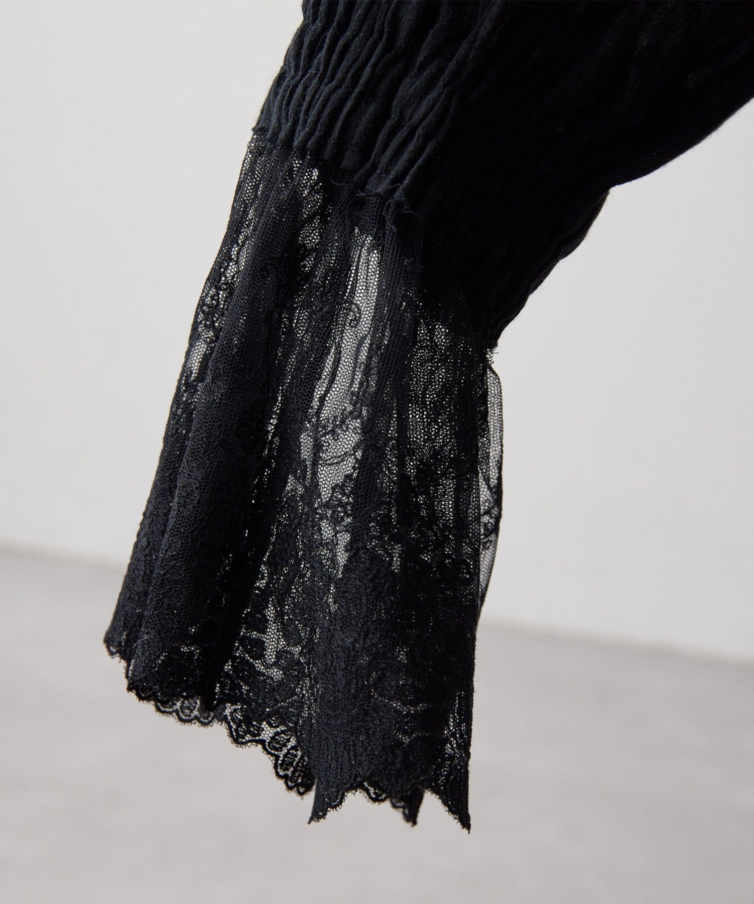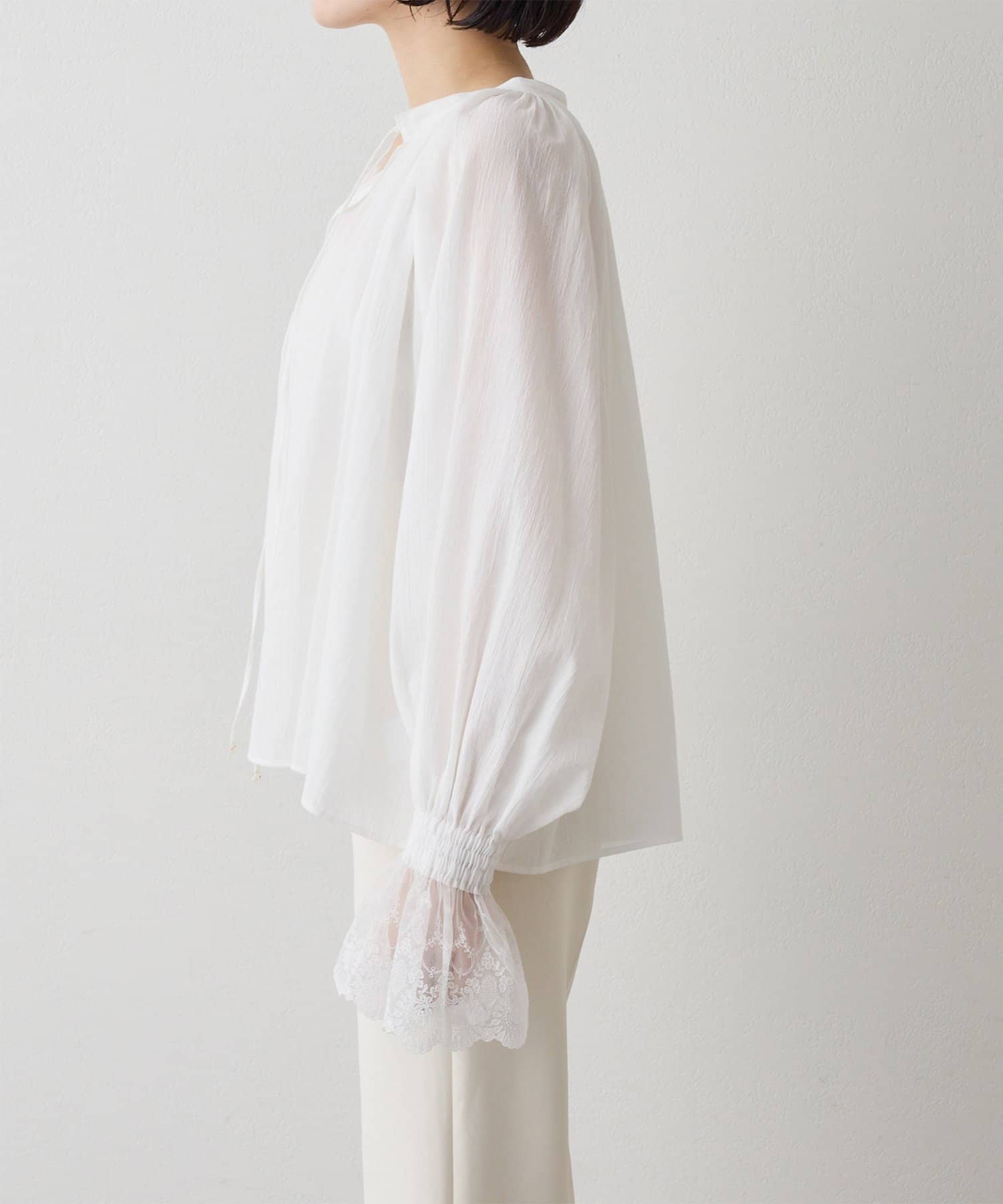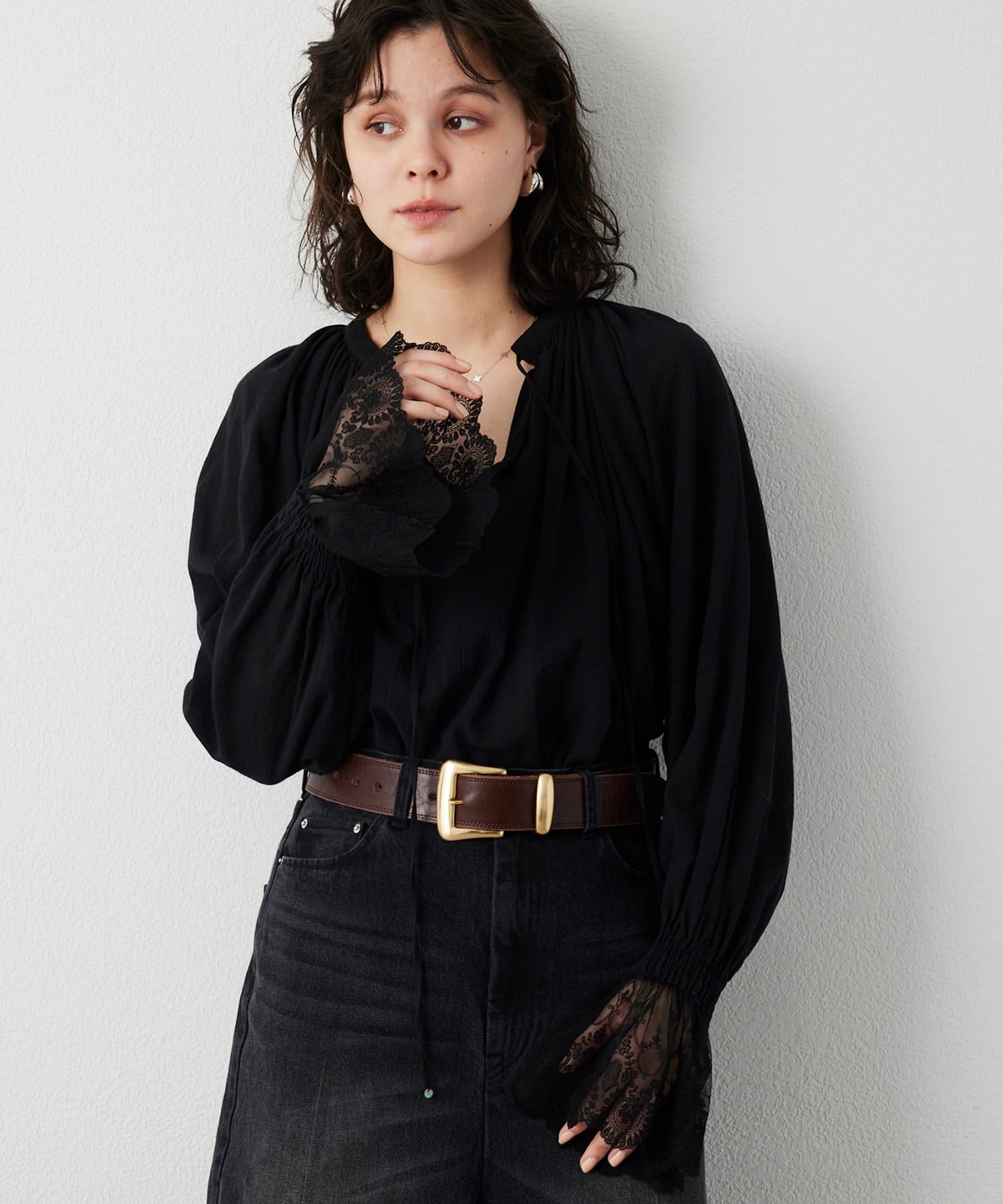 繊細なレースが手元で揺れる、軽やかギャザーブラウス