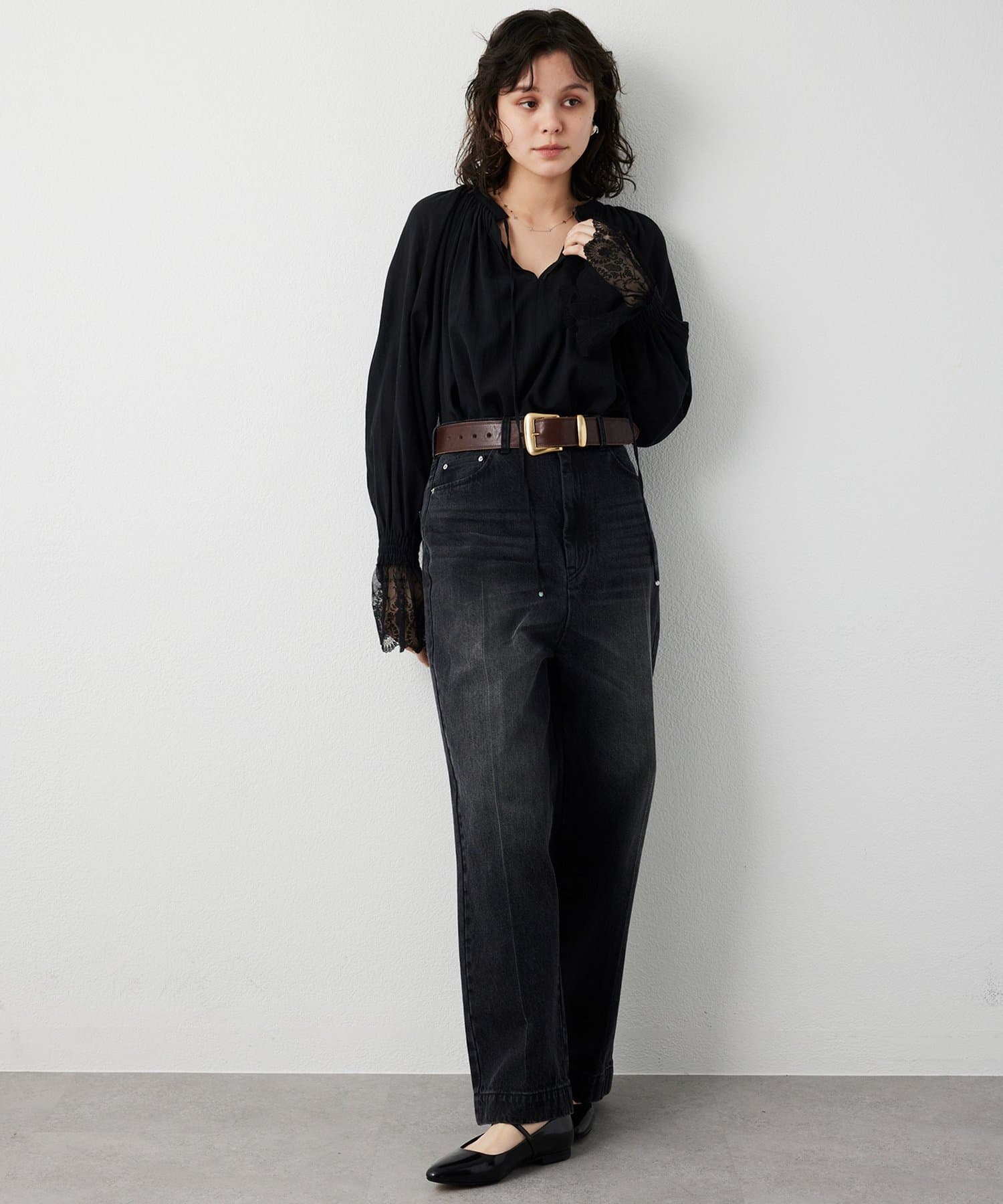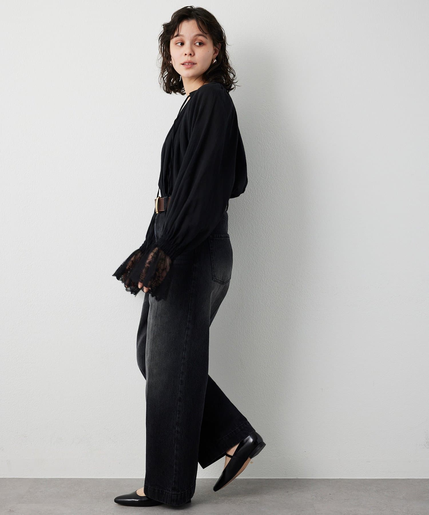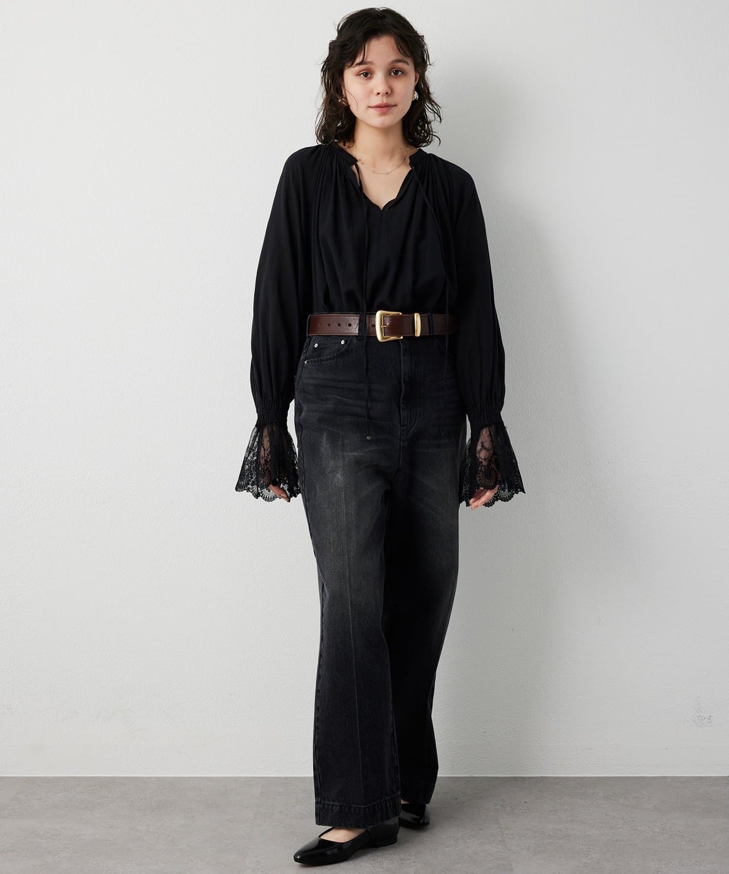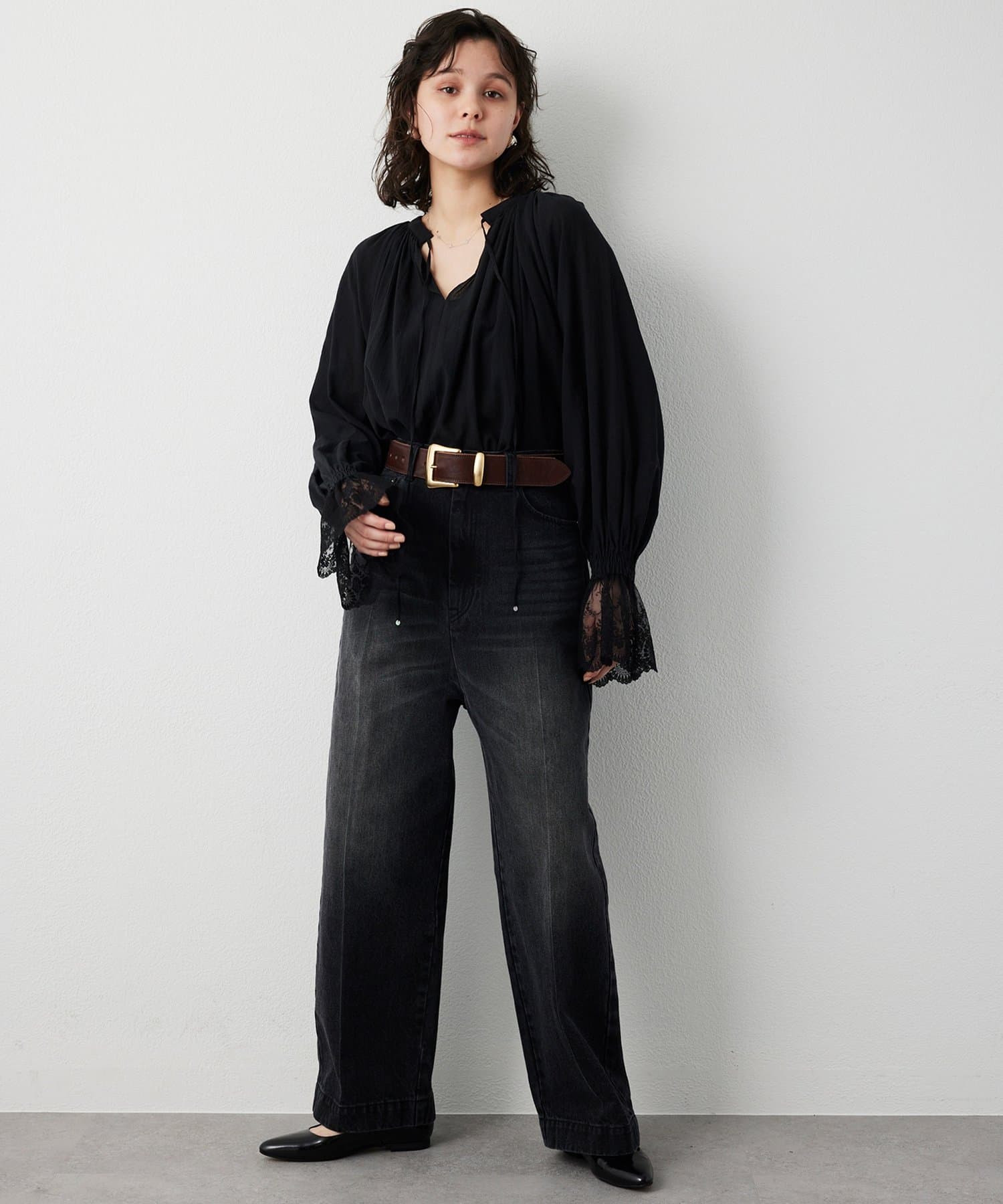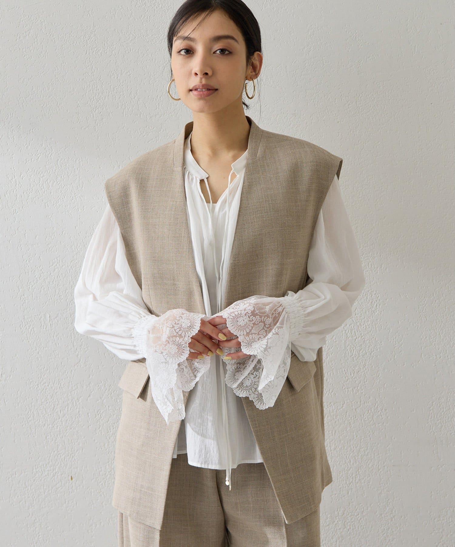 繊細なレースが手元で揺れる、軽やかギャザーブラウス