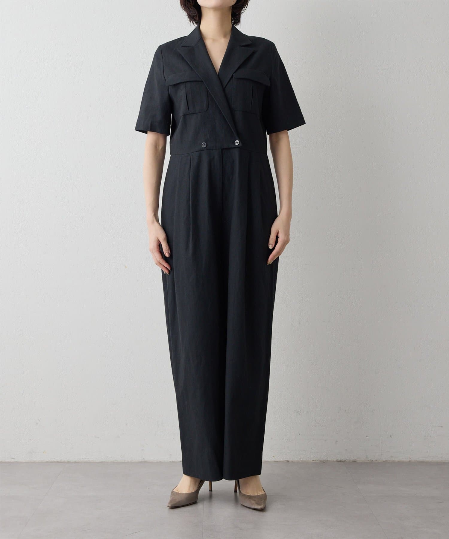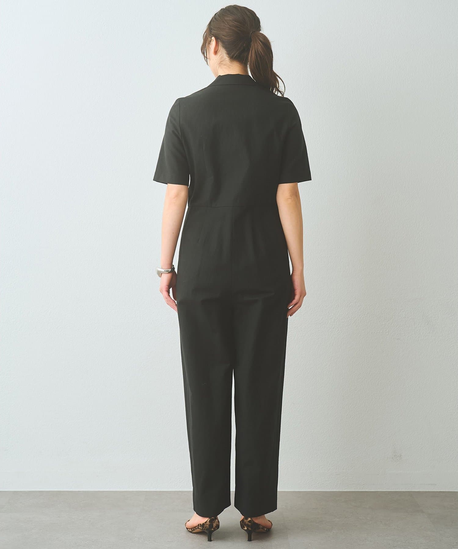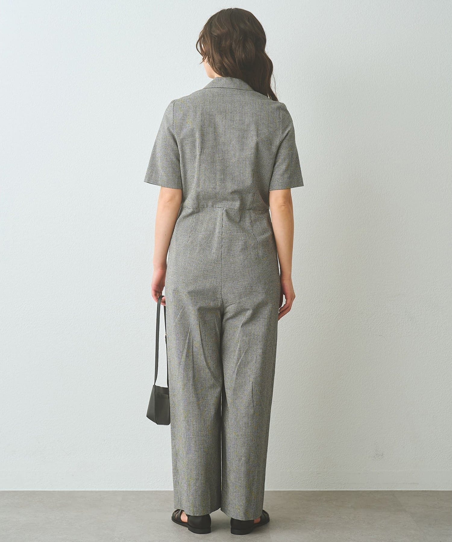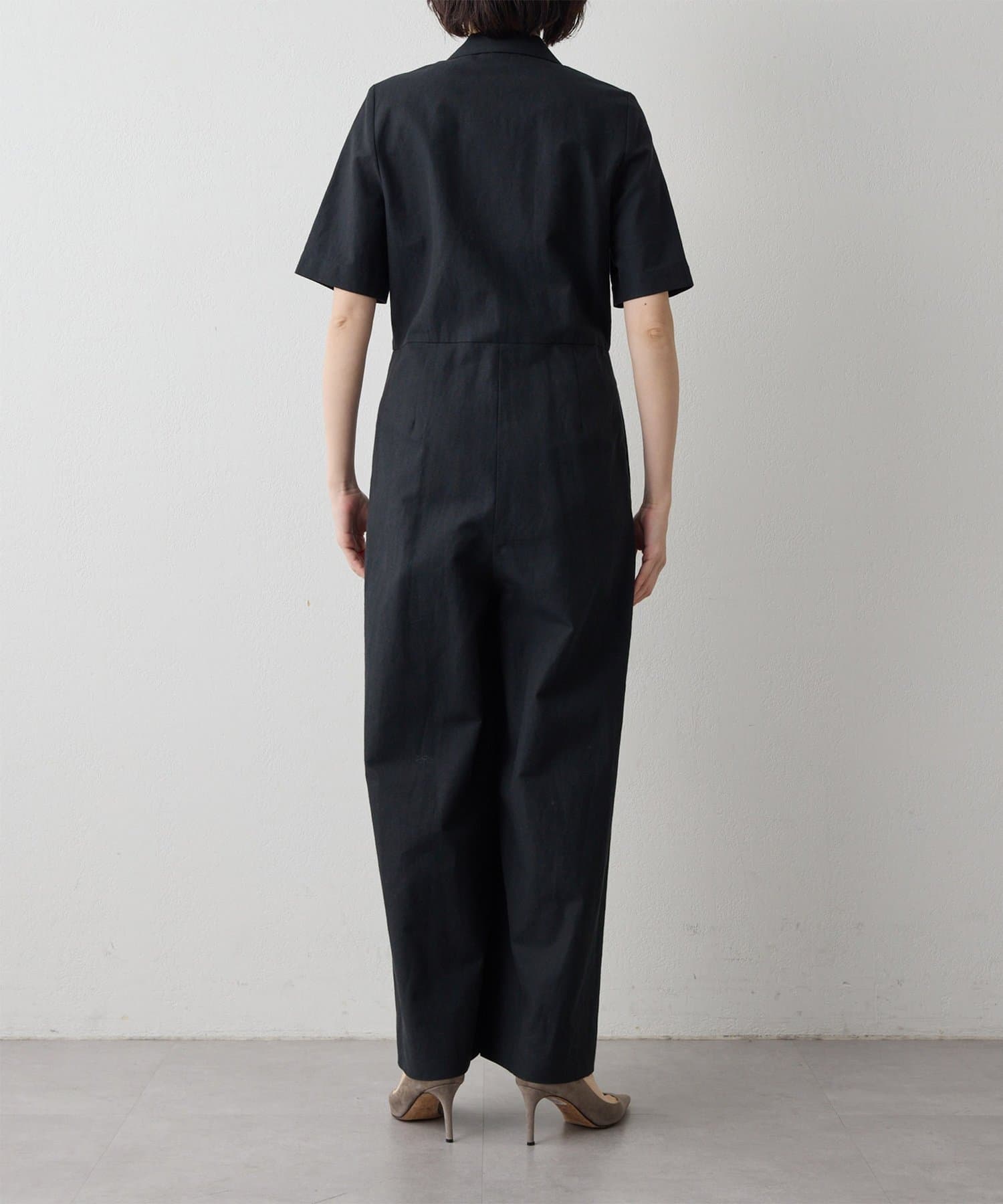 暑い季節に嬉しい、綿麻素材の半袖ジャンプスーツ
