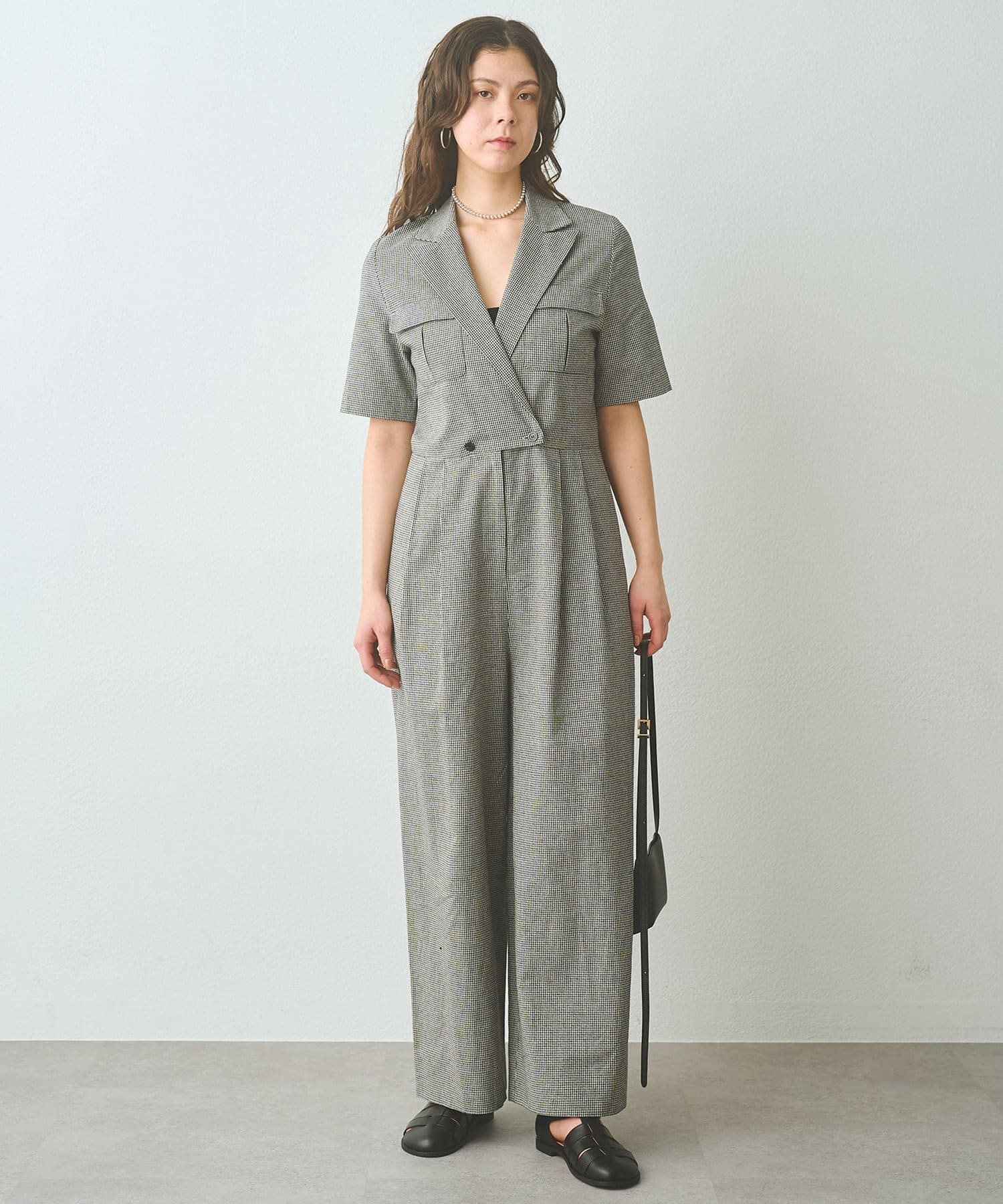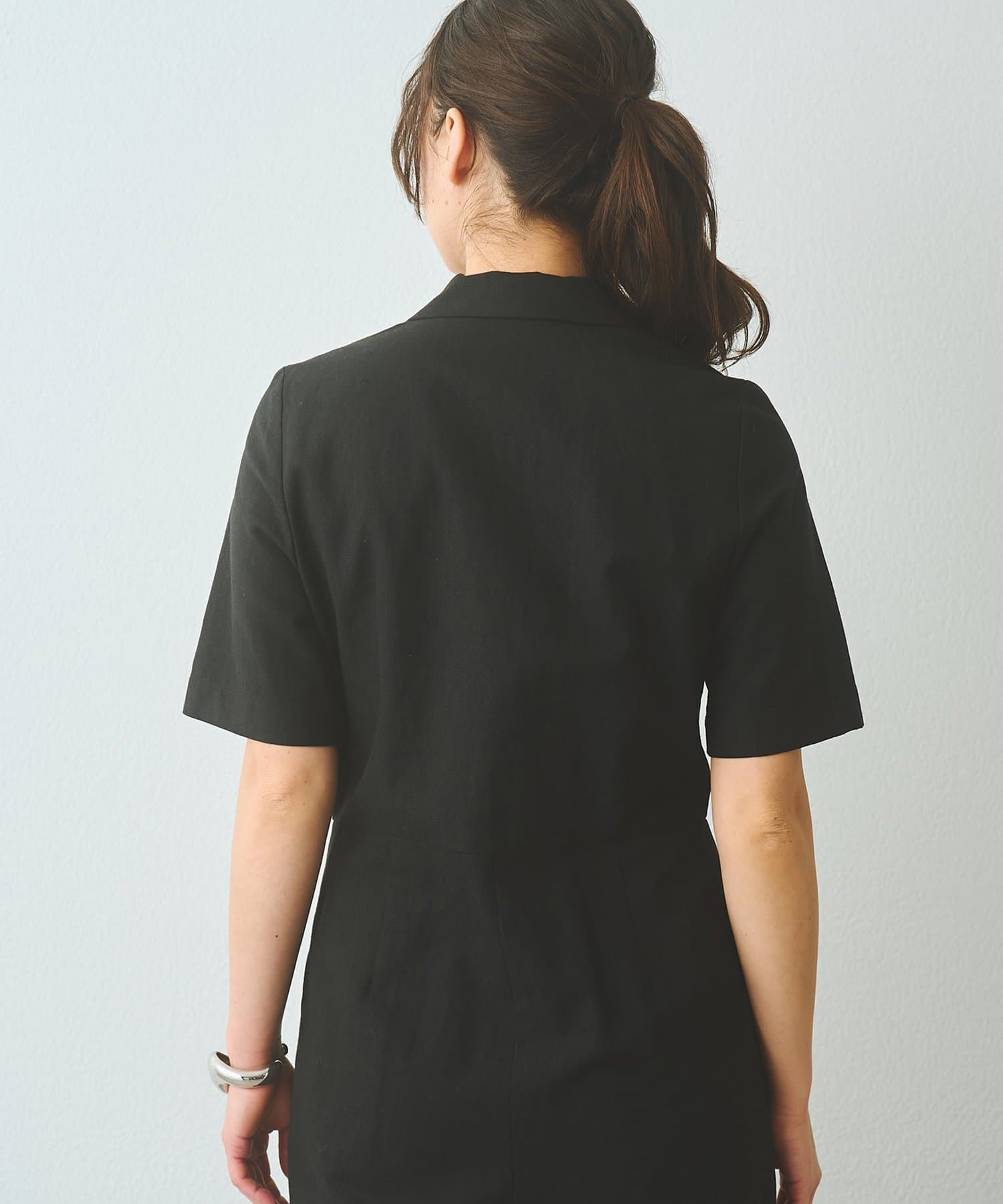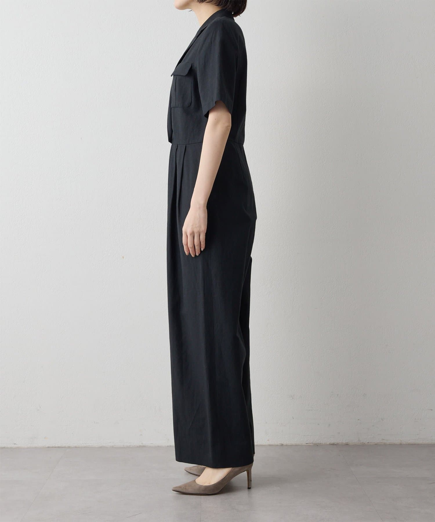 暑い季節に嬉しい、綿麻素材の半袖ジャンプスーツ