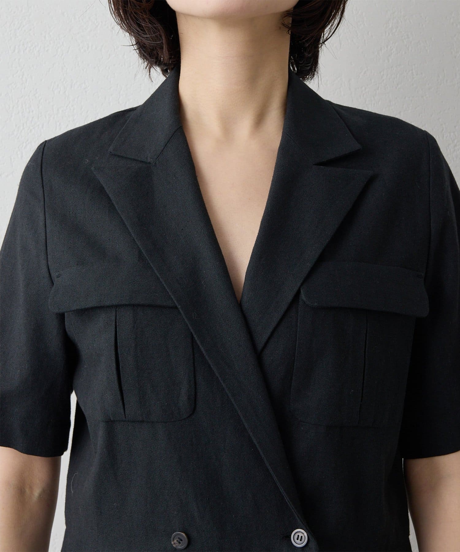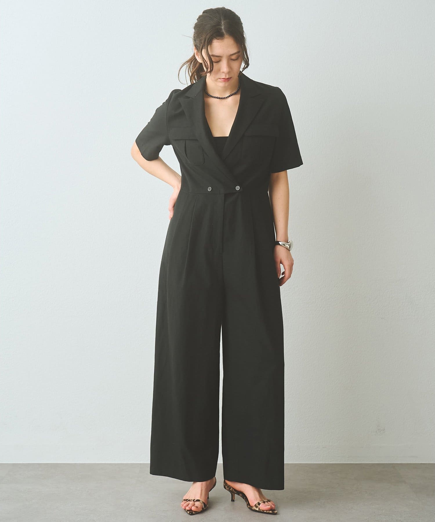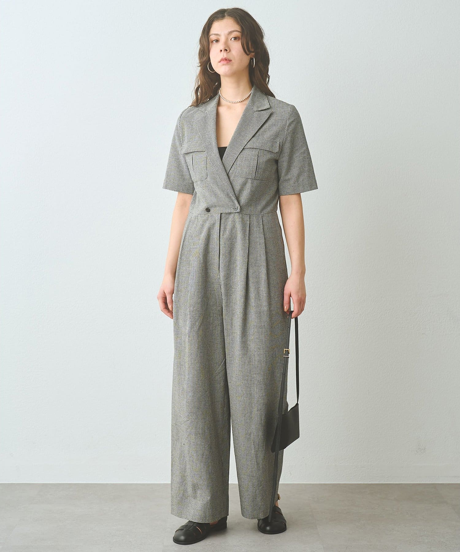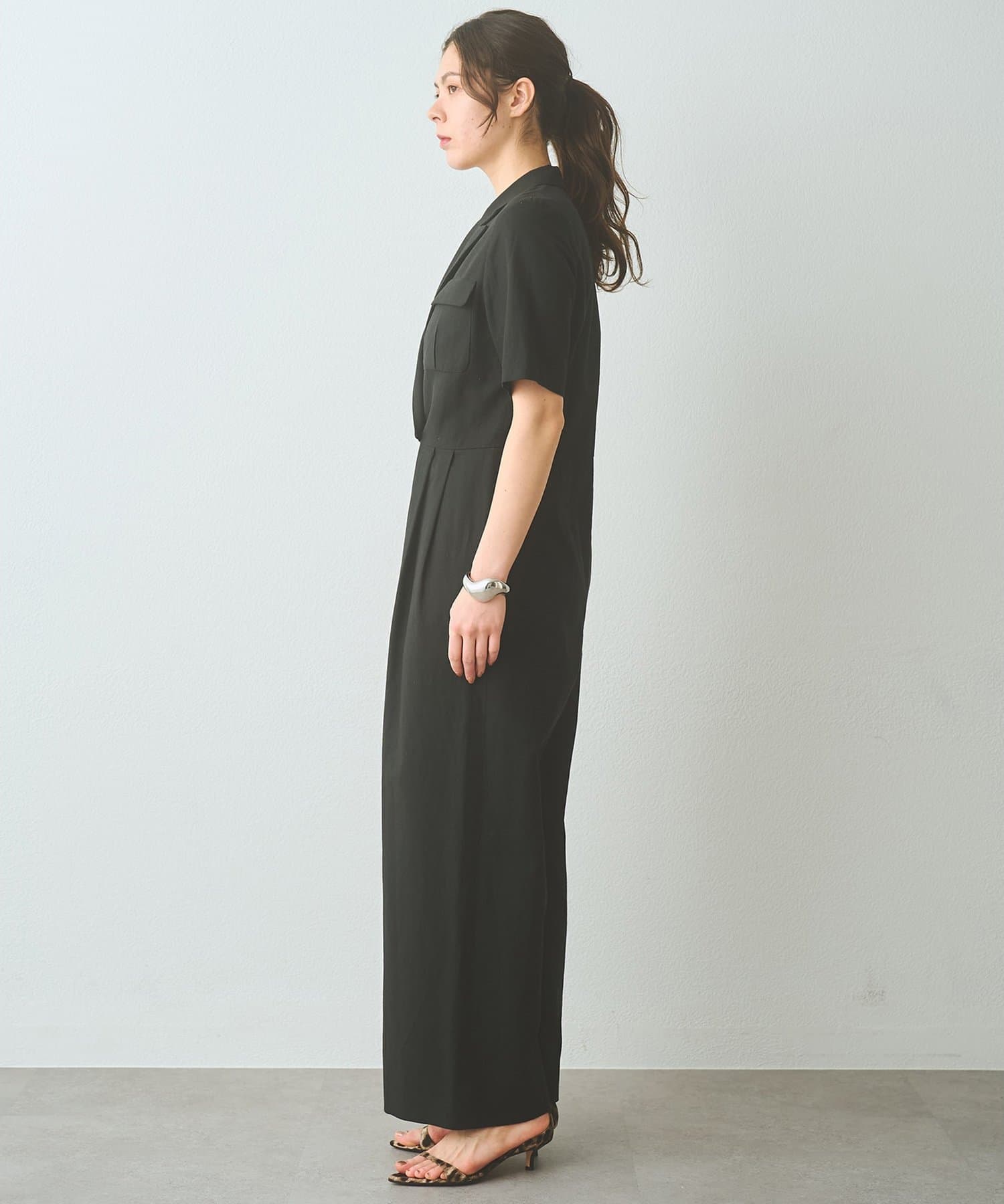 暑い季節に嬉しい、綿麻素材の半袖ジャンプスーツ