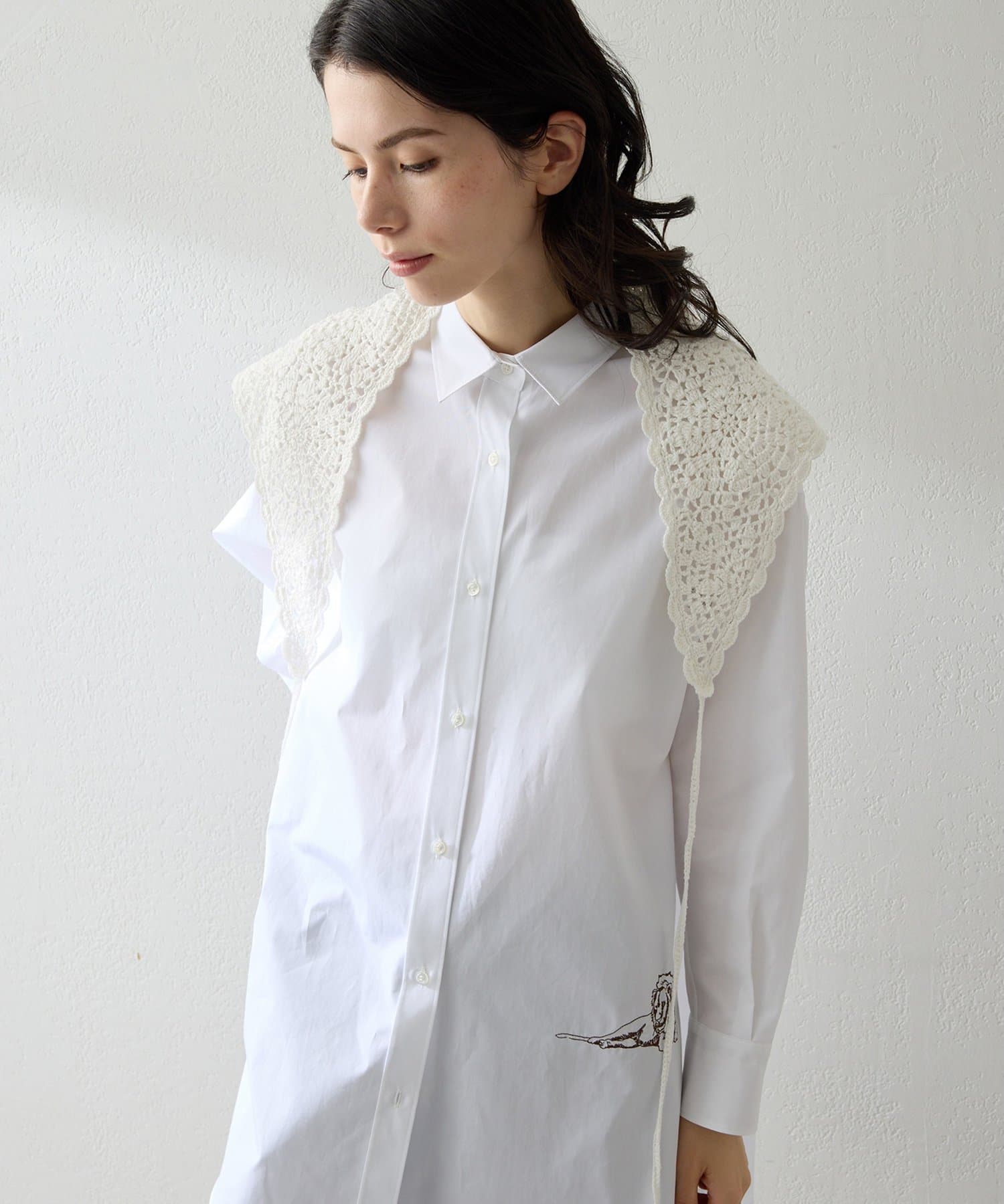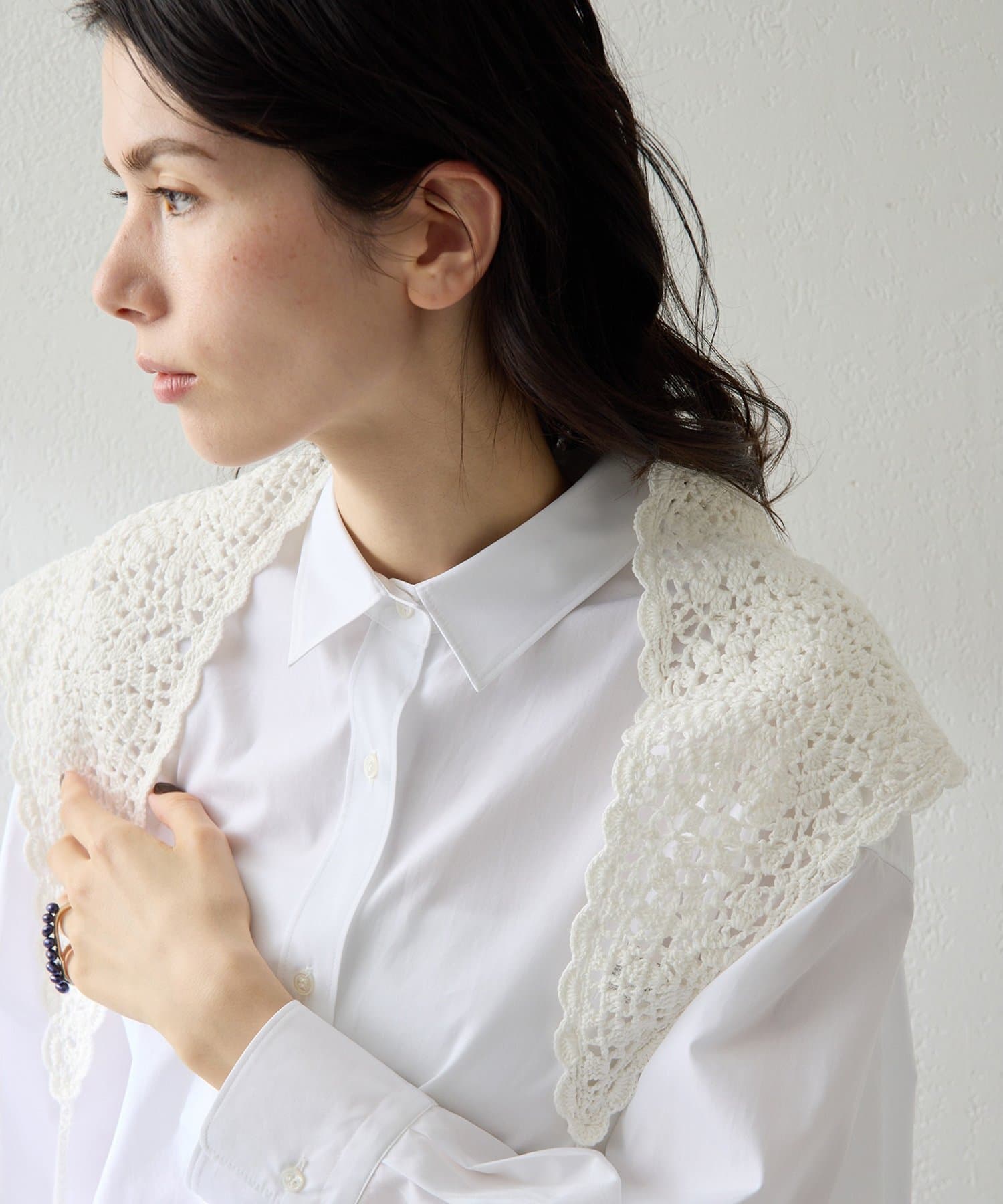 装いに軽やかなアクセントを添えるクロシェスカーフ