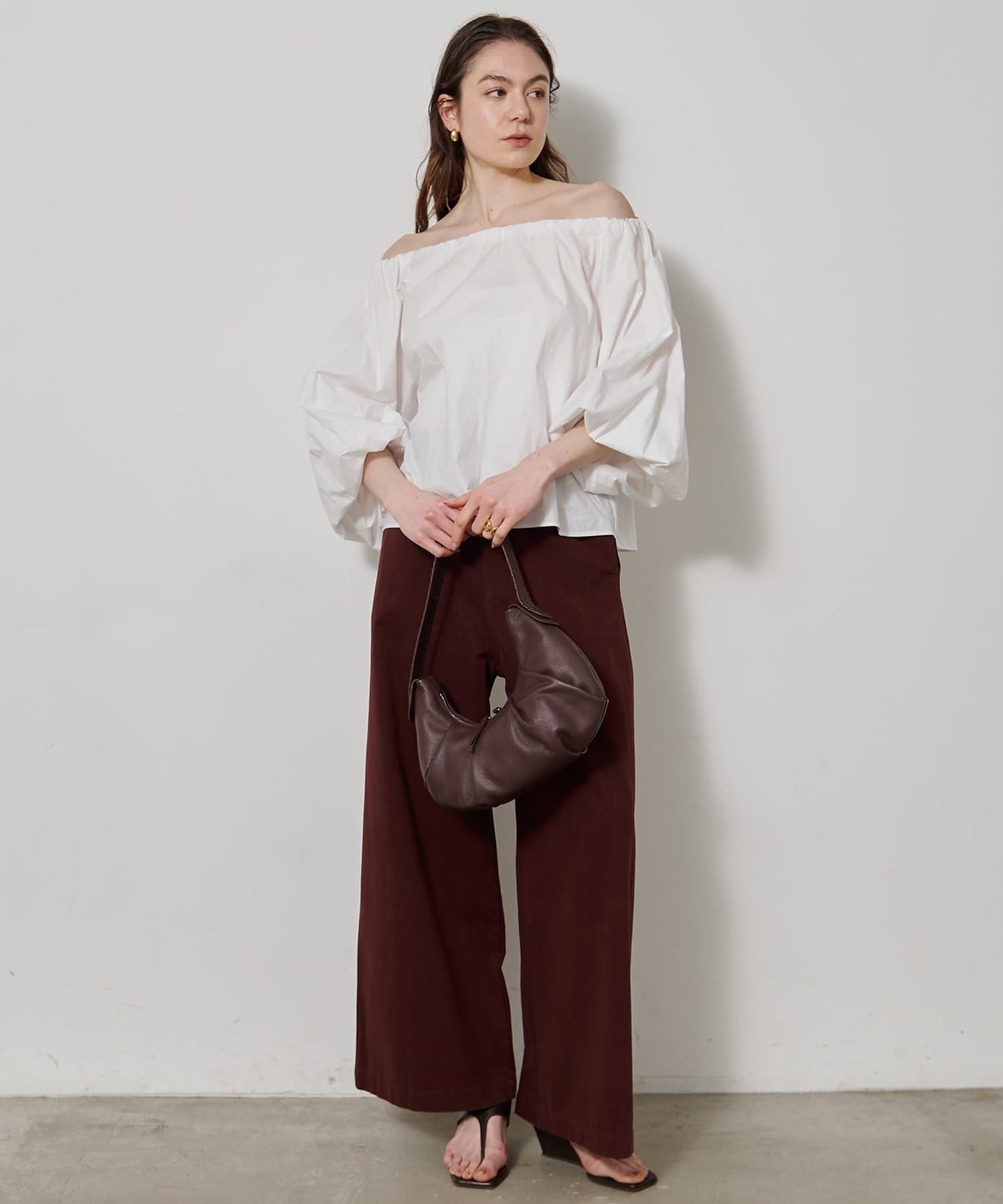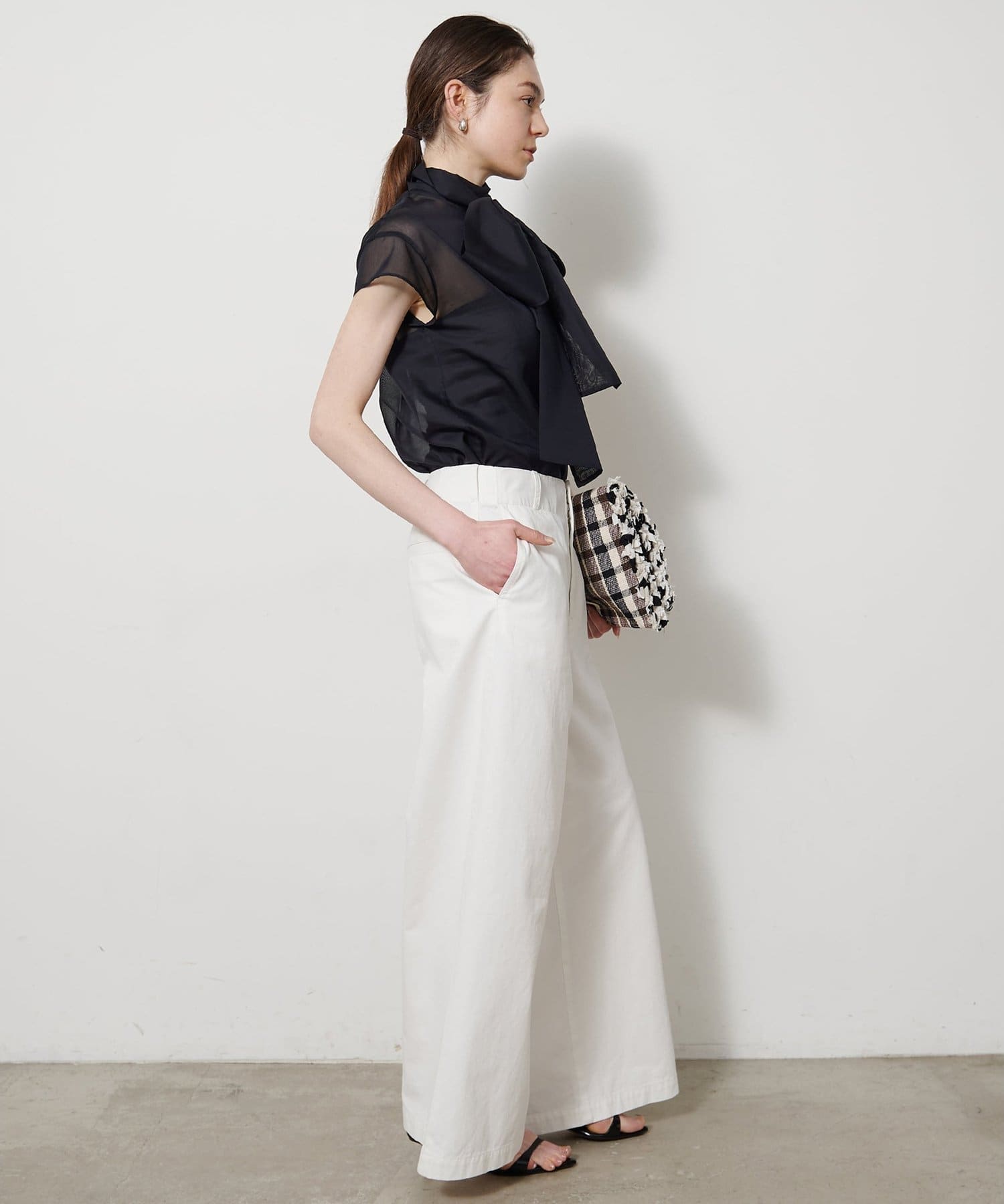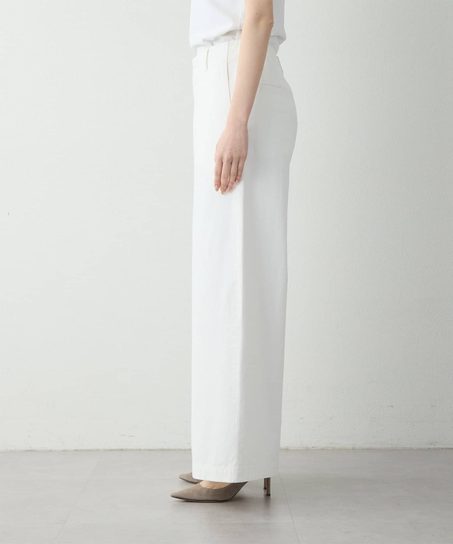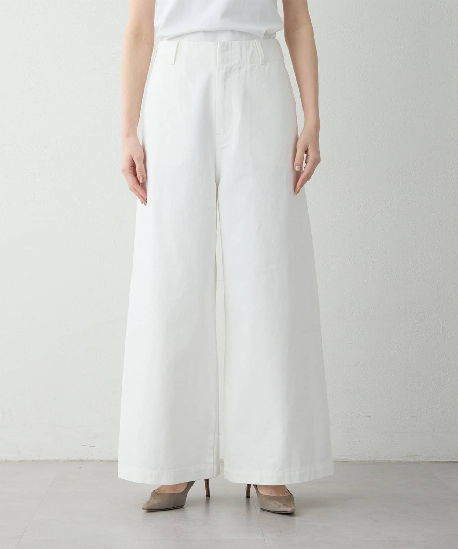 ■腰周りはすっきりと全体はバランス良く仕上げた、ハイウエスト×ワイドシルエット。