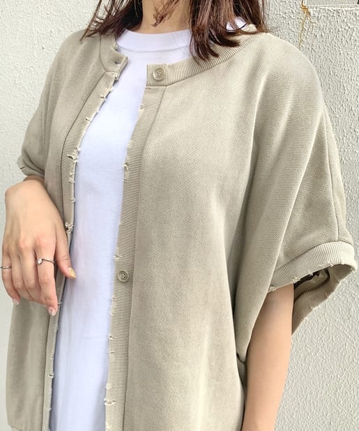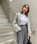 ②カーディガン:前でボタンを開けて。