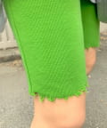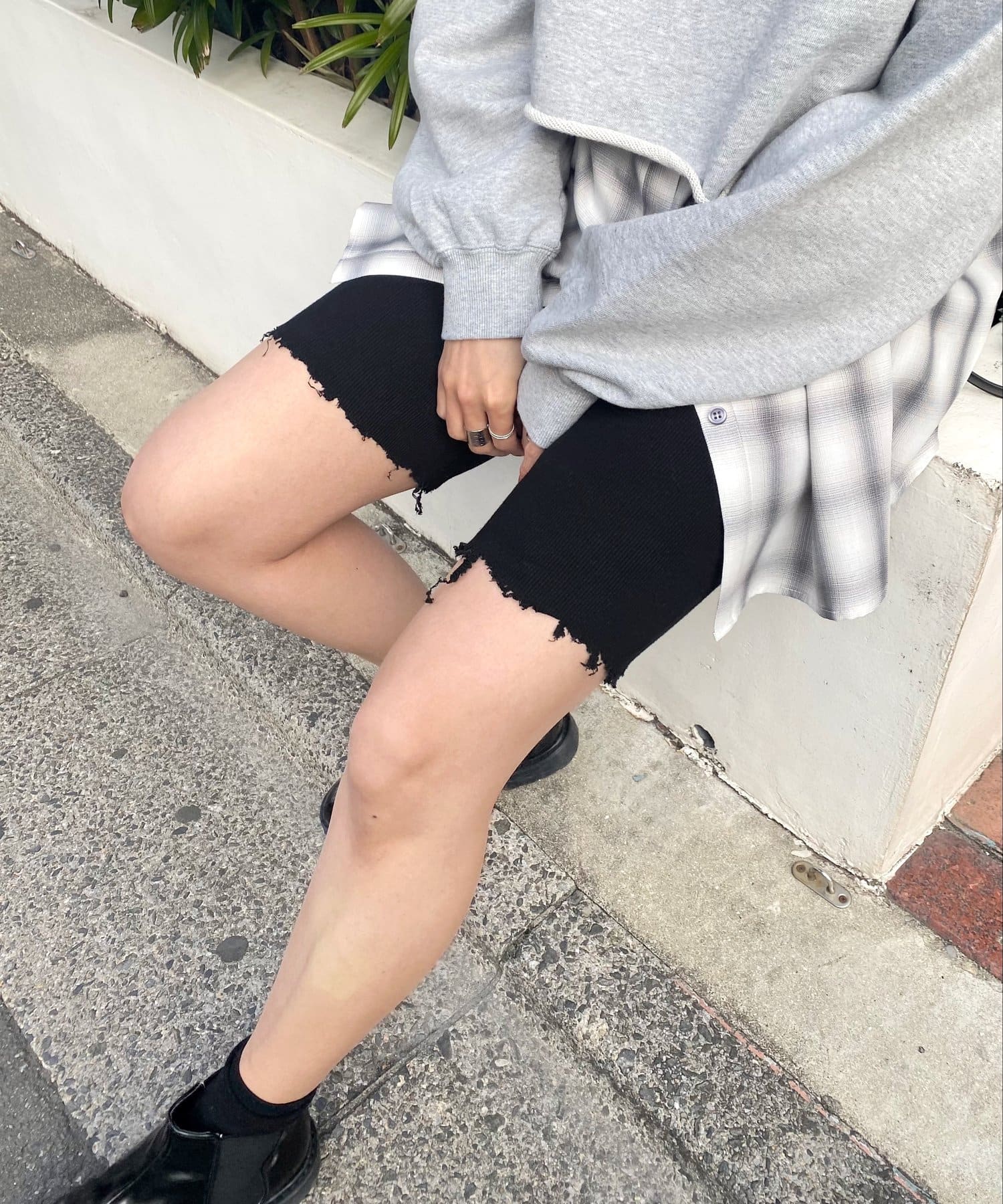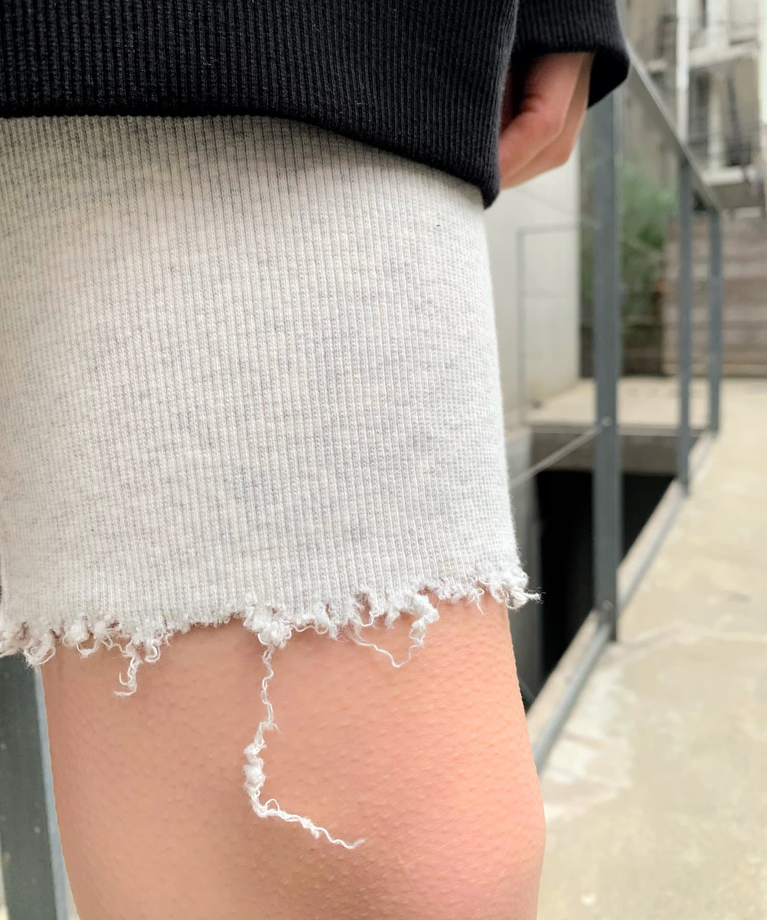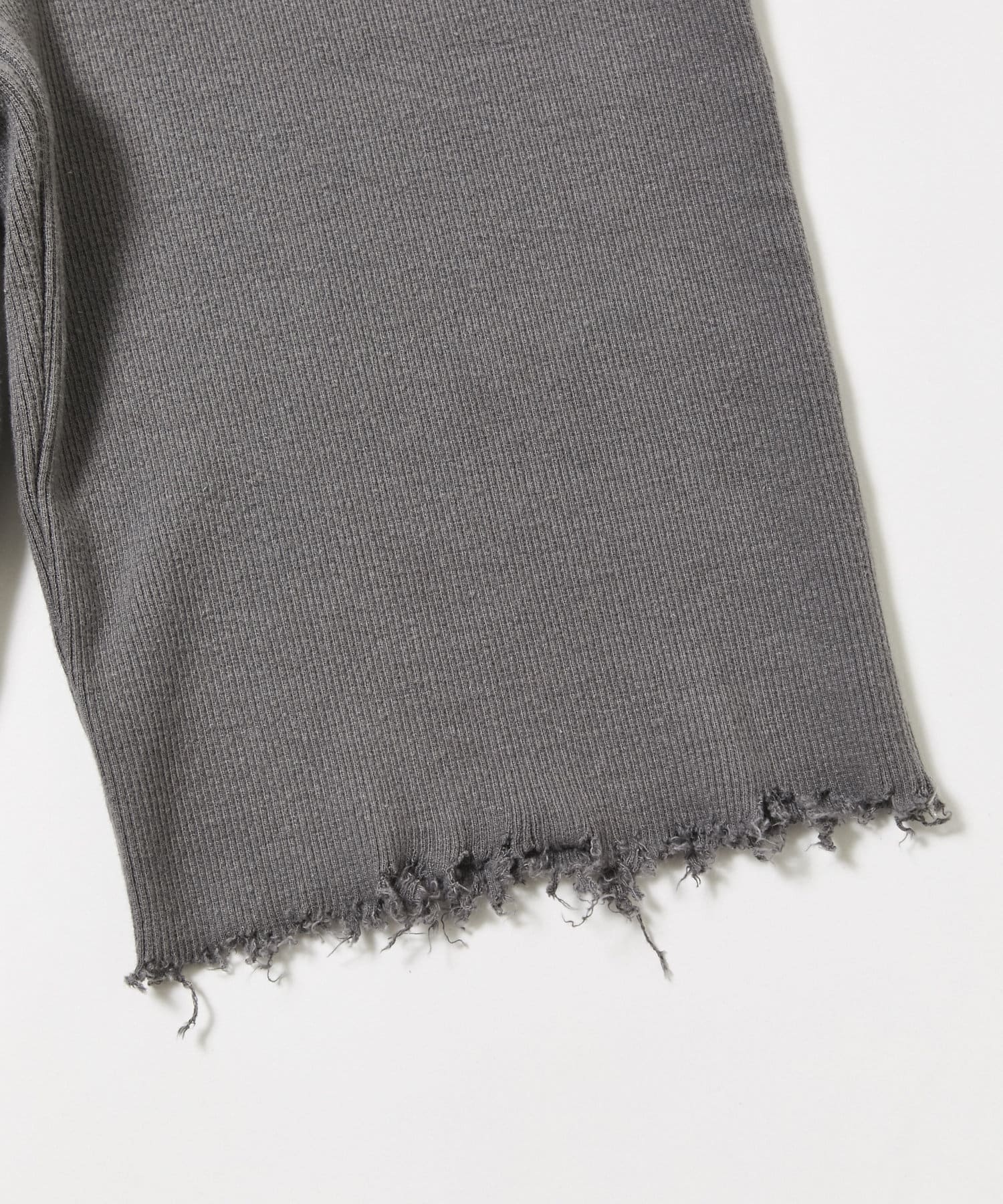 ・リブの凹凸がストライプのように見え、裾のダメージ加工と相まって、シンプルながらもさりげないデザインに。