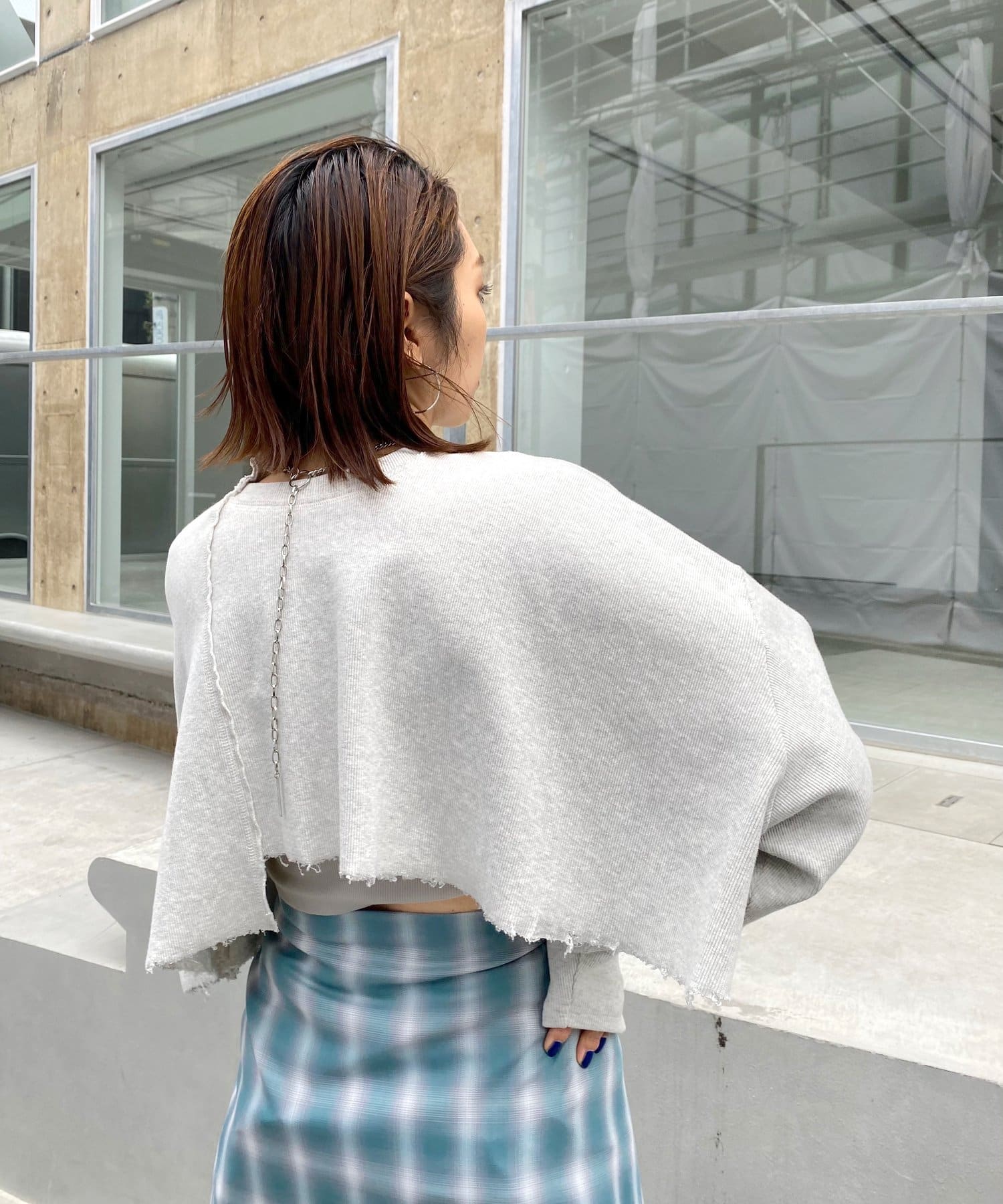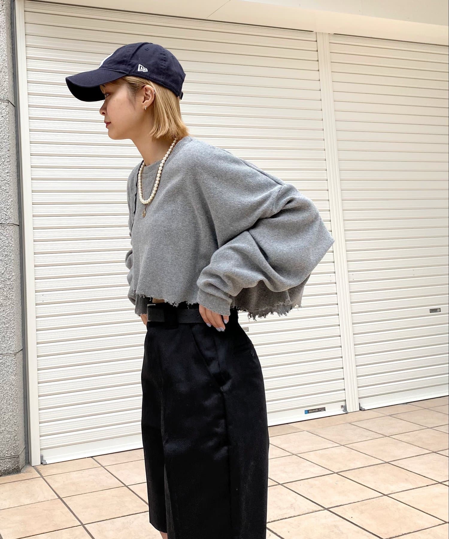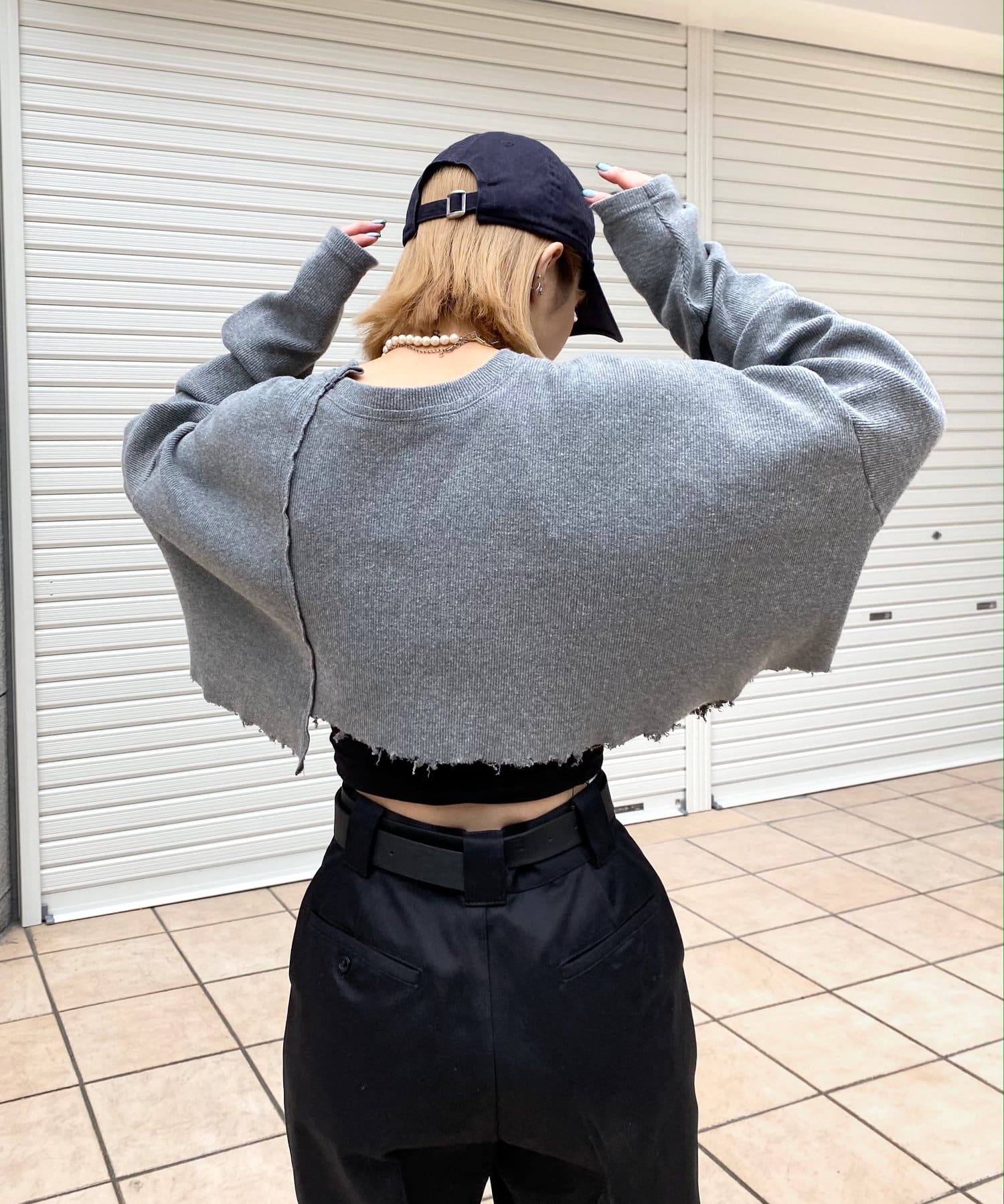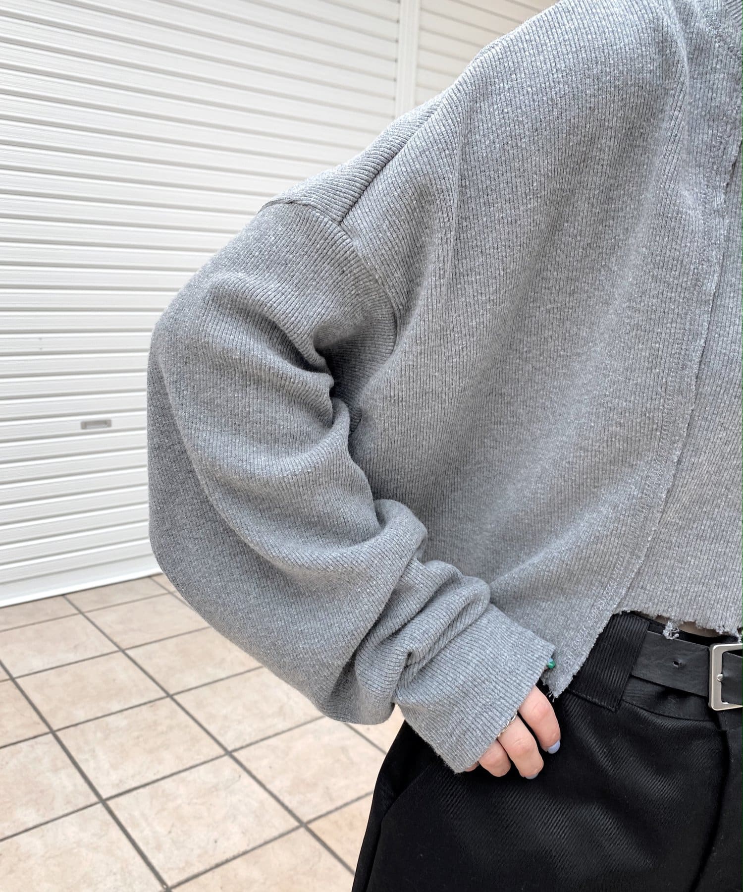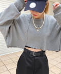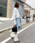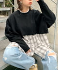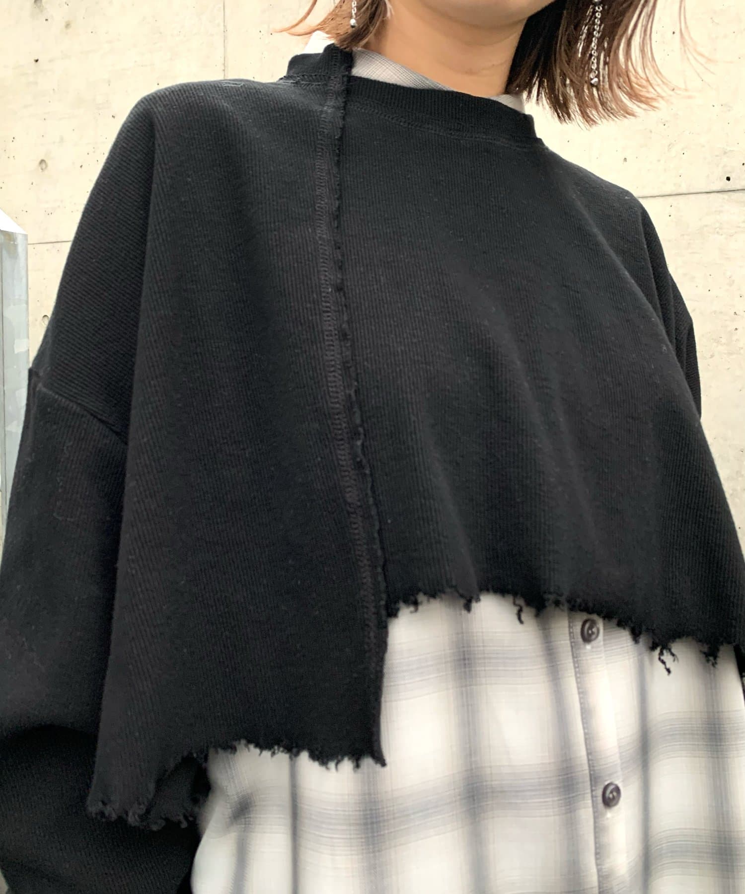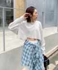 ・短丈なので、レイヤードスタイルにも◎。シャツやロンT、Tシャツなど好きな組み合わせで是非。