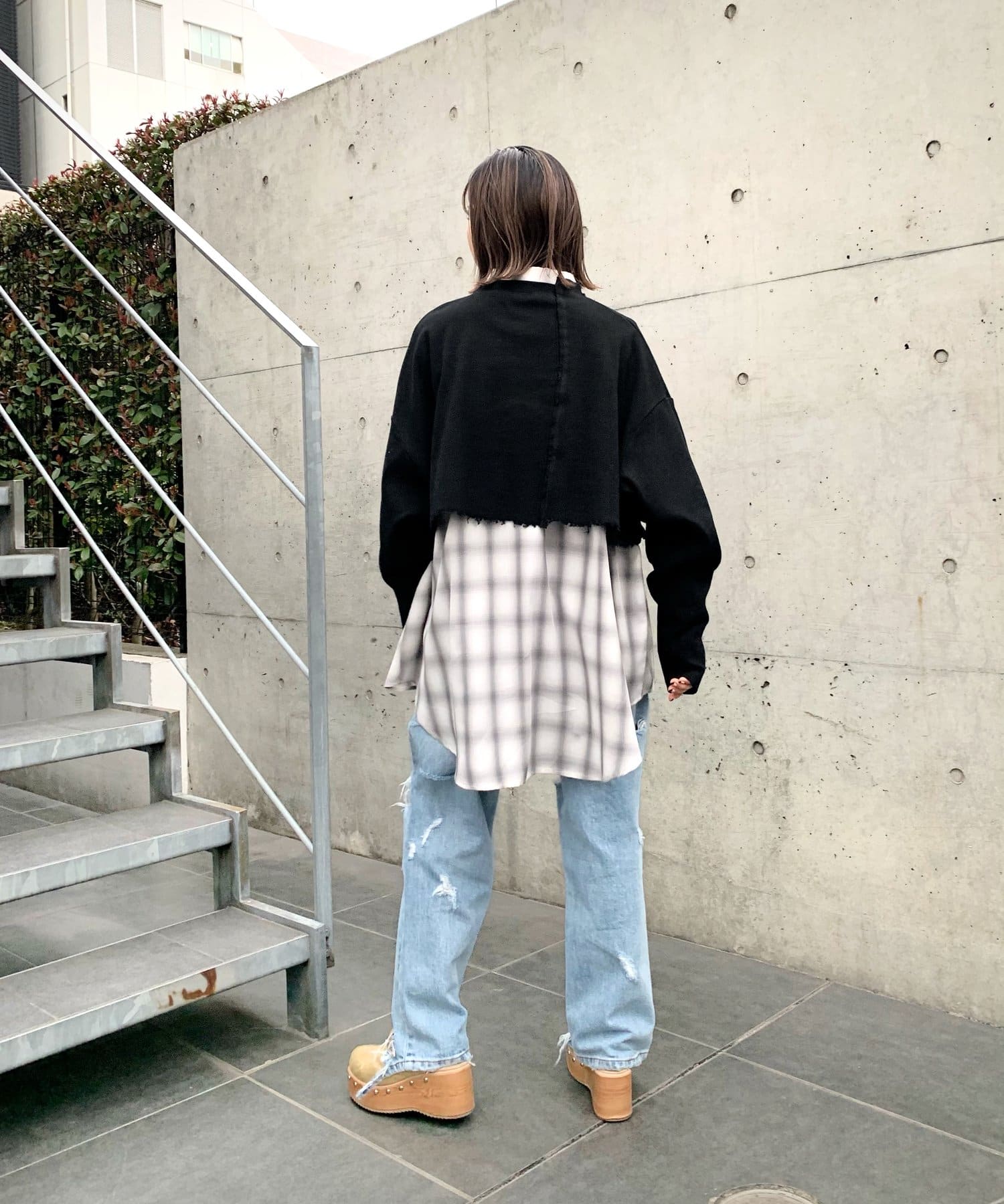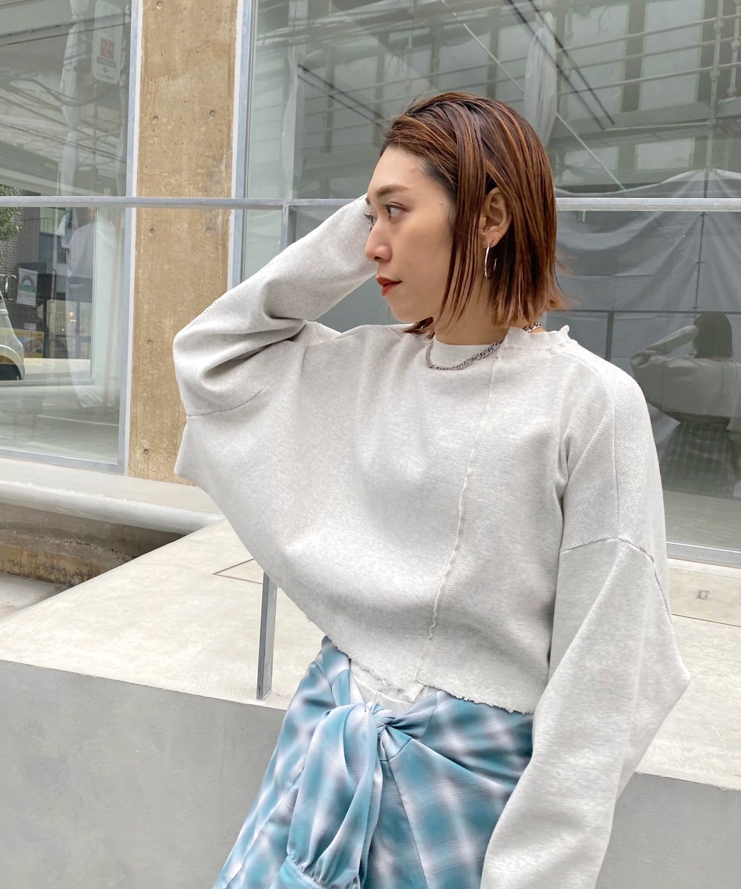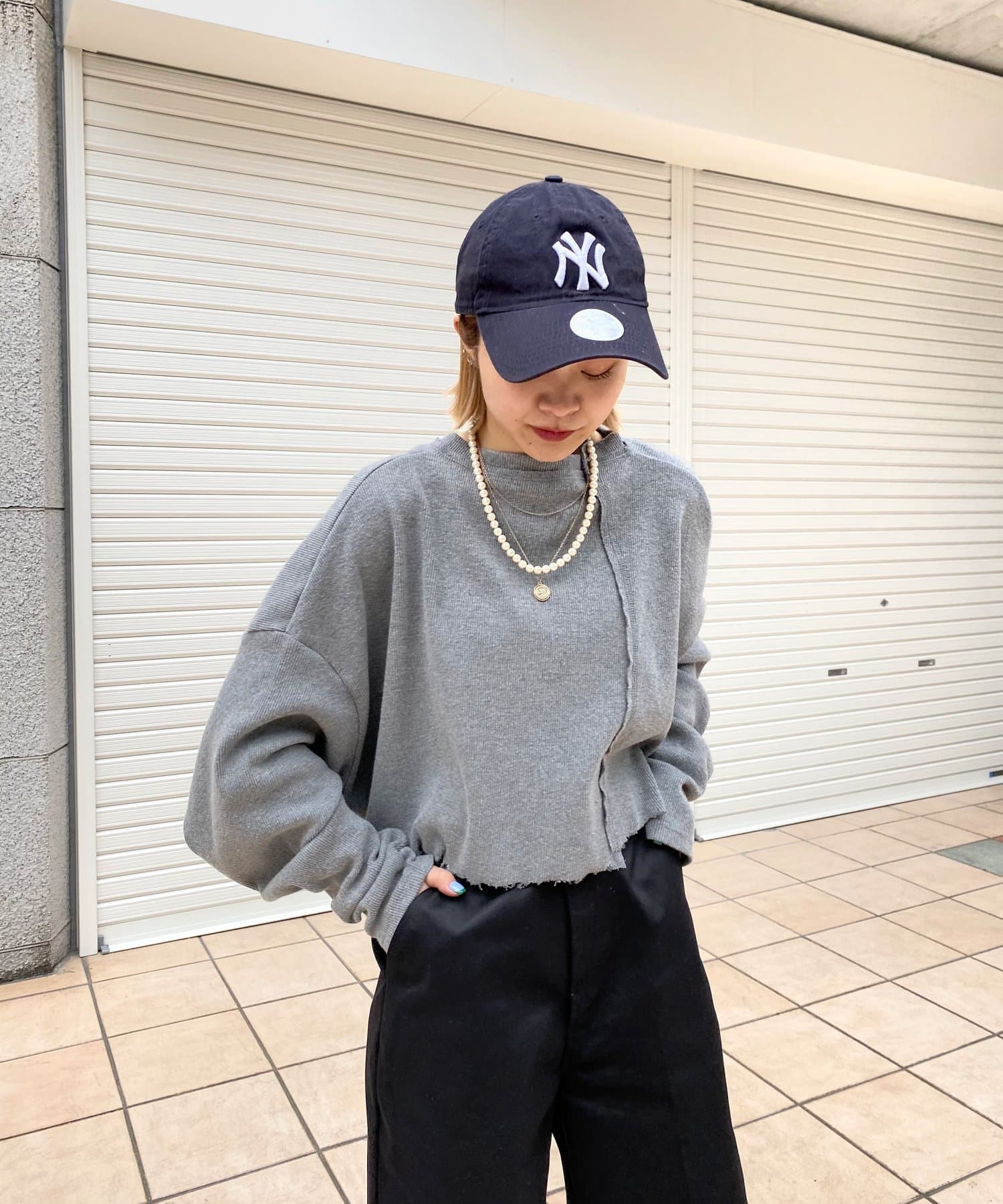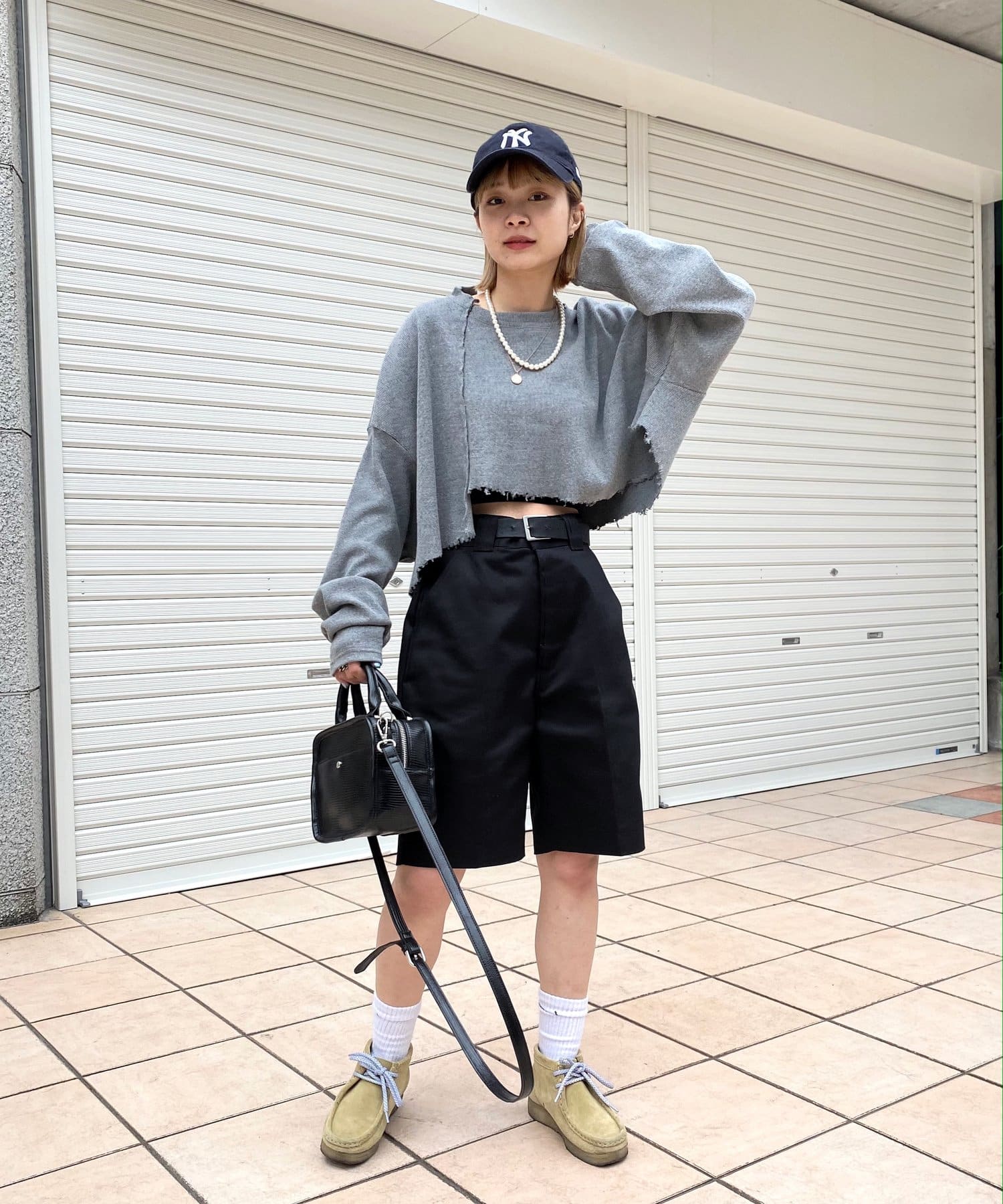 ・短丈なので、レイヤードスタイルにも◎。シャツやロンT、Tシャツなど好きな組み合わせで是非。