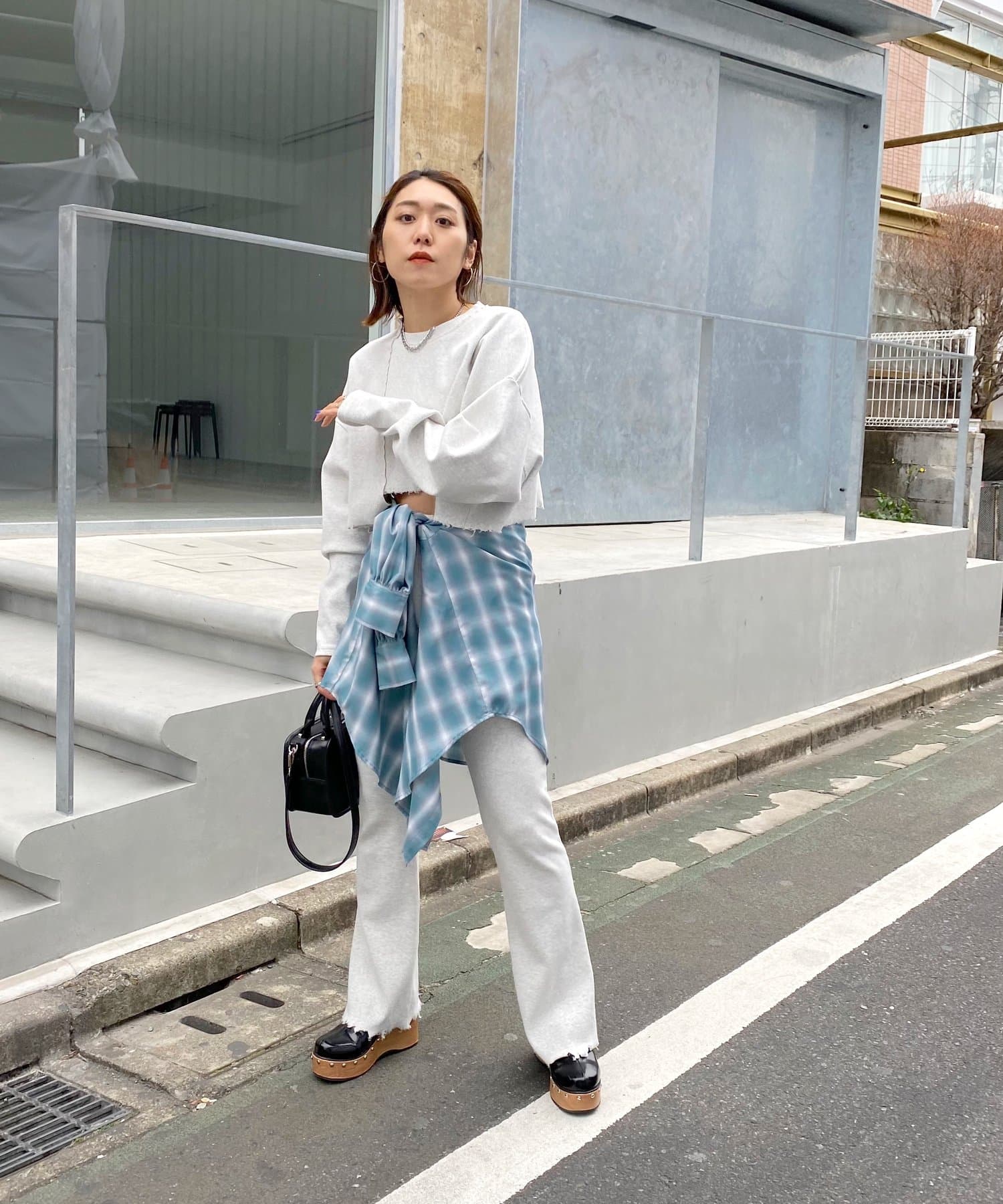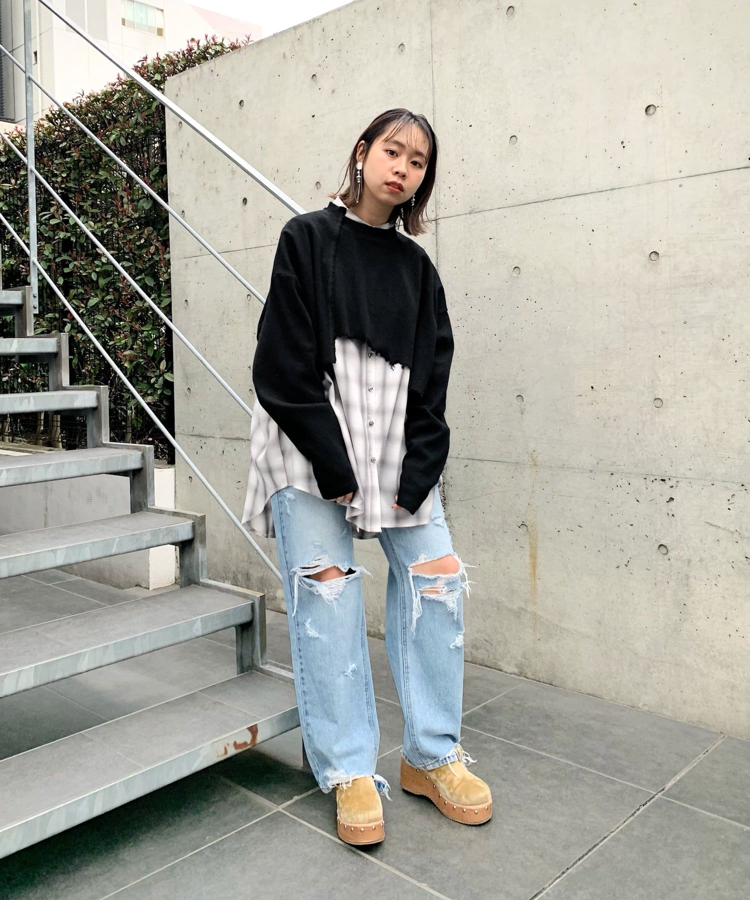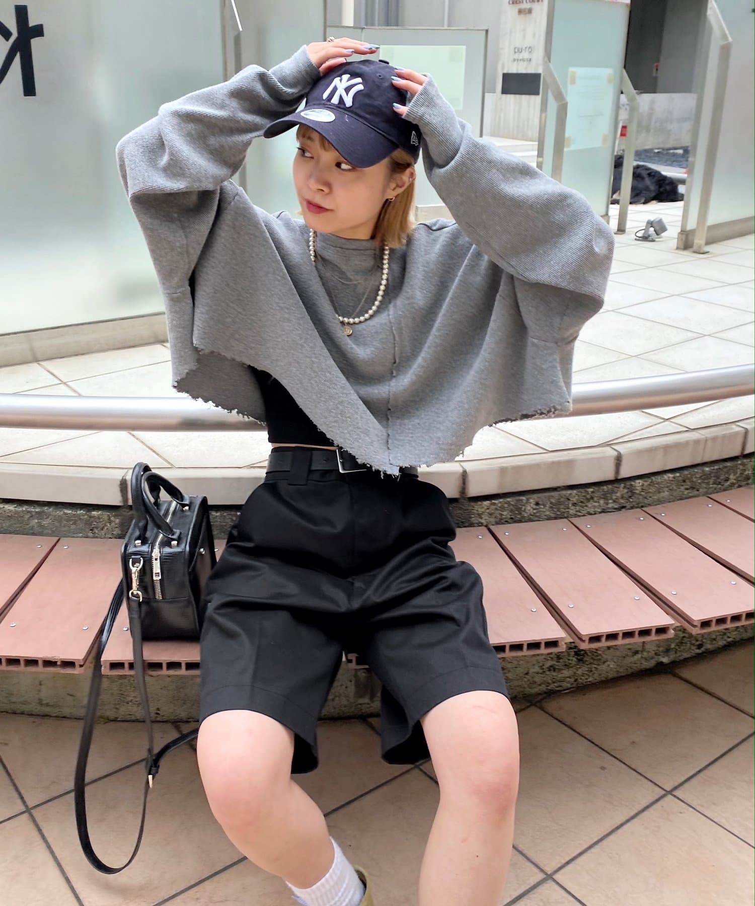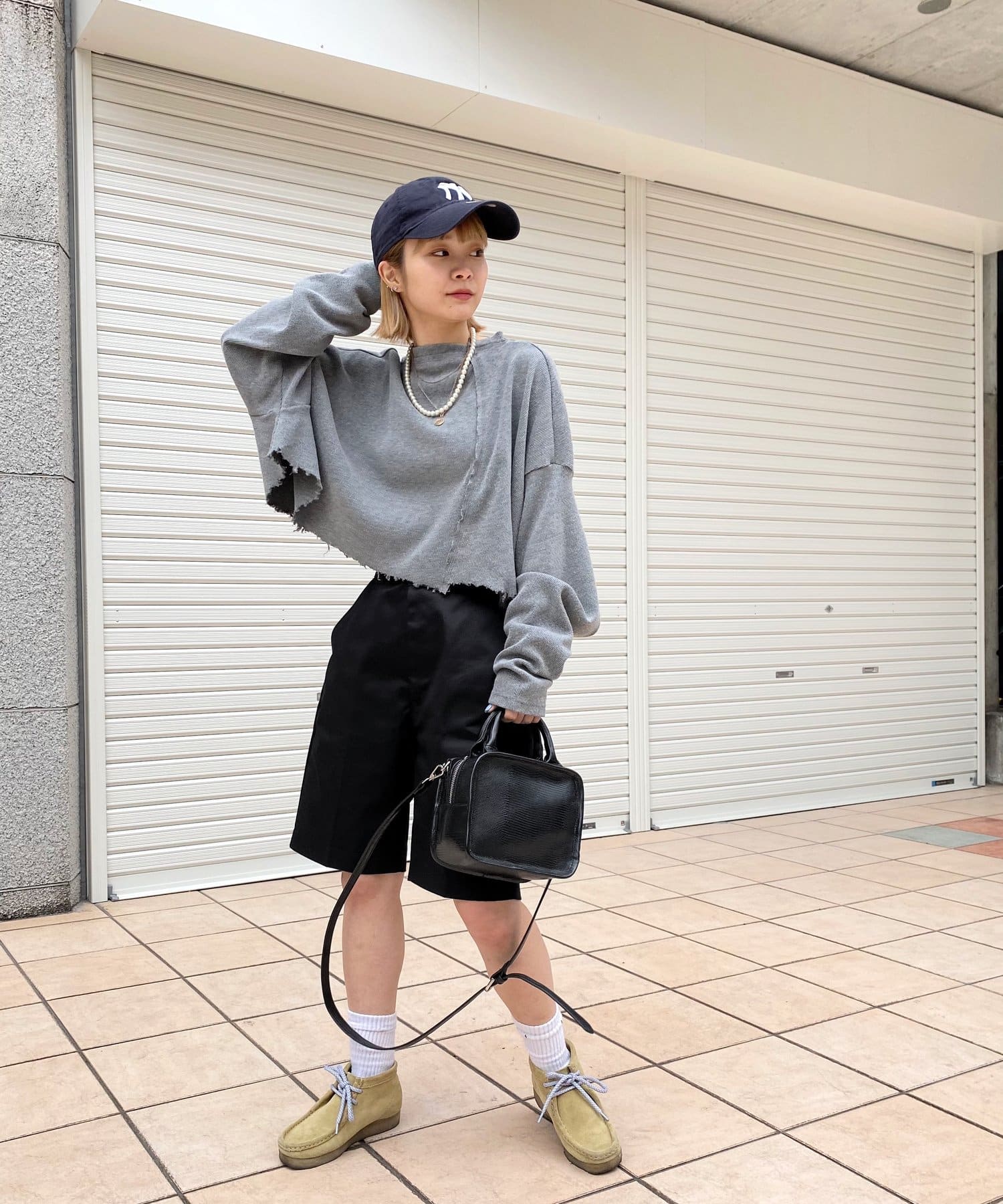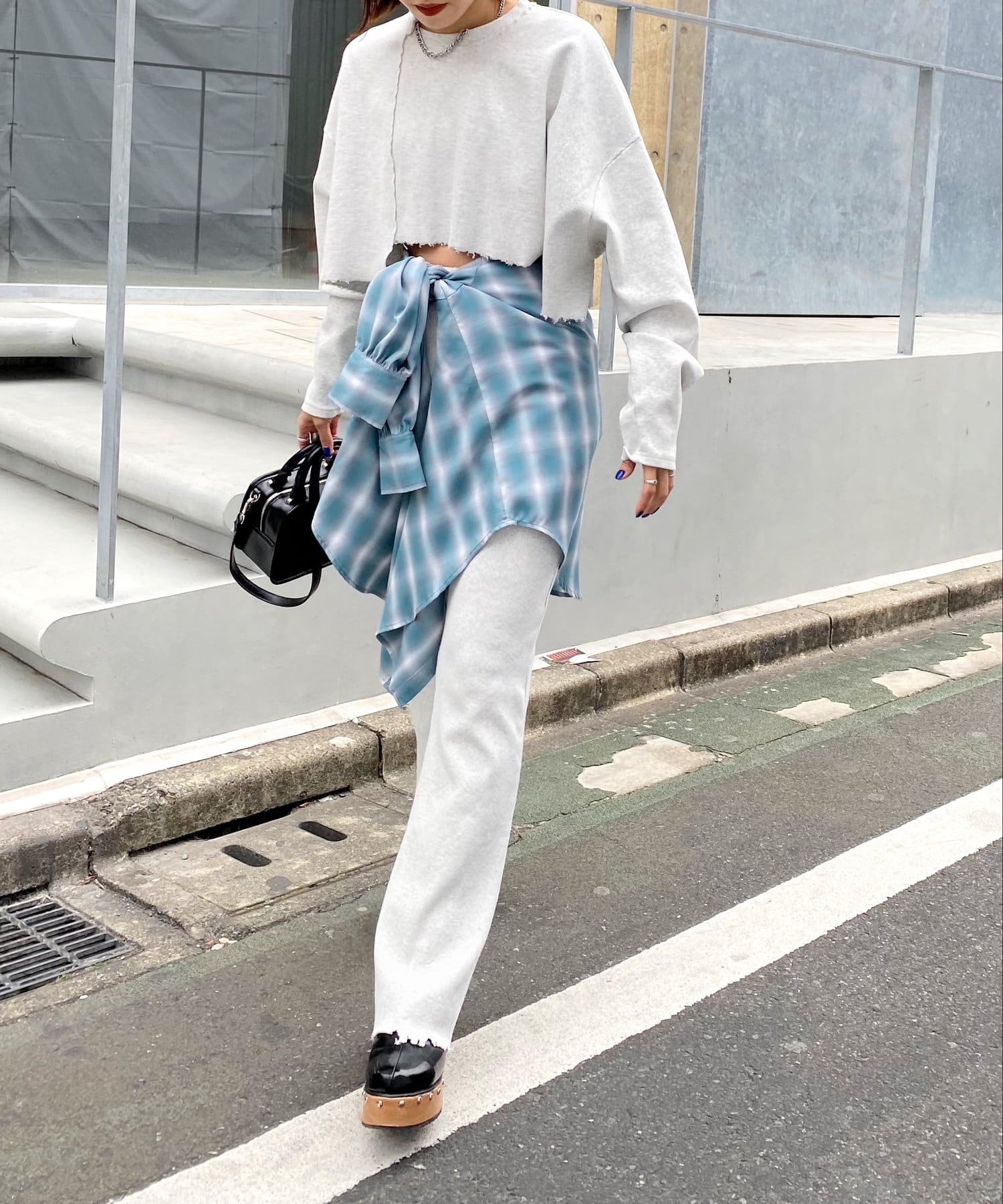 ・短丈なので、レイヤードスタイルにも◎。シャツやロンT、Tシャツなど好きな組み合わせで是非。