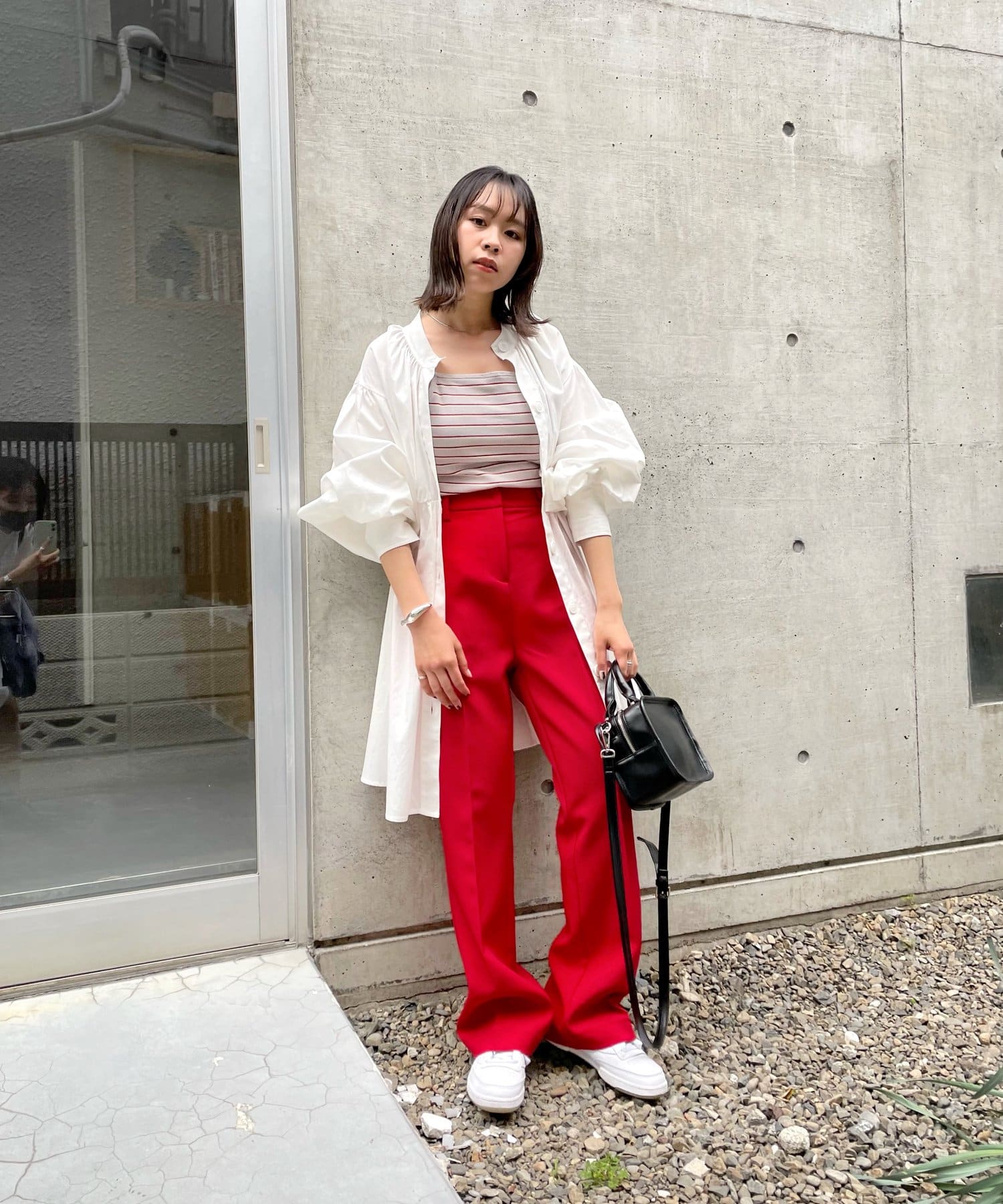 • H157cm/Fサイズ着用 ※こちらはサンプル使用で、実物商品のボーダーは白と赤の位置が逆になります。