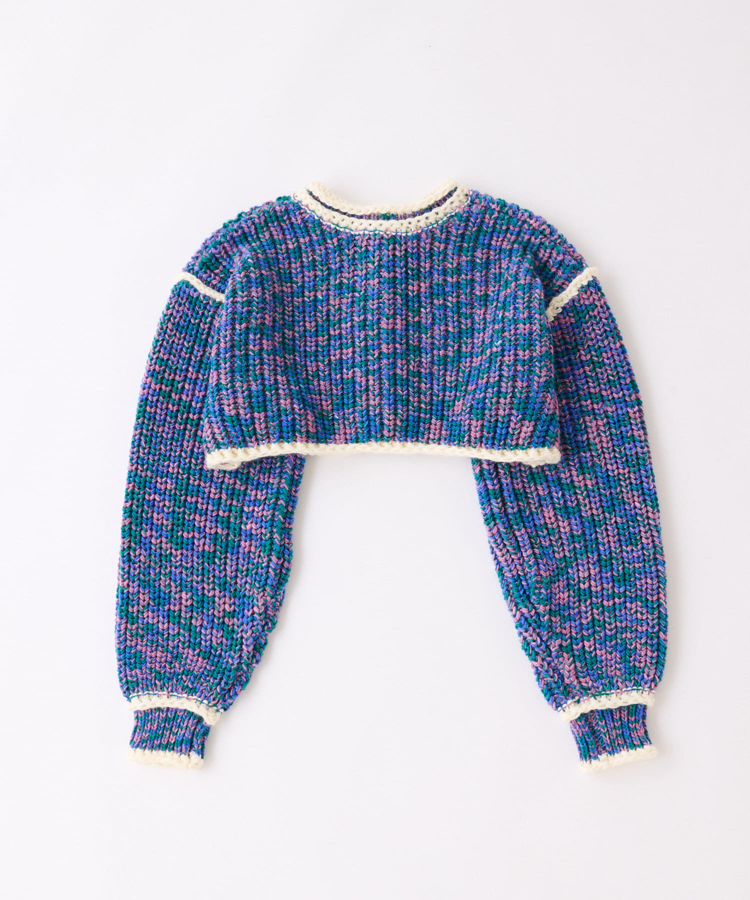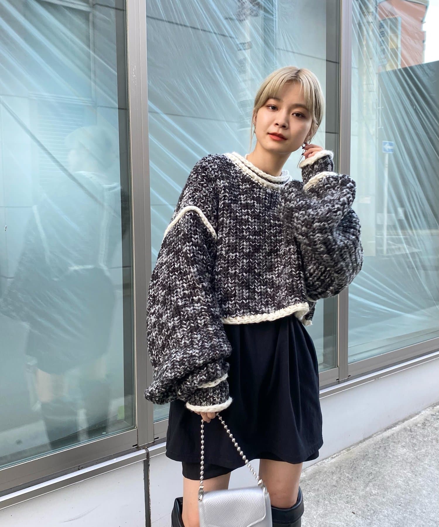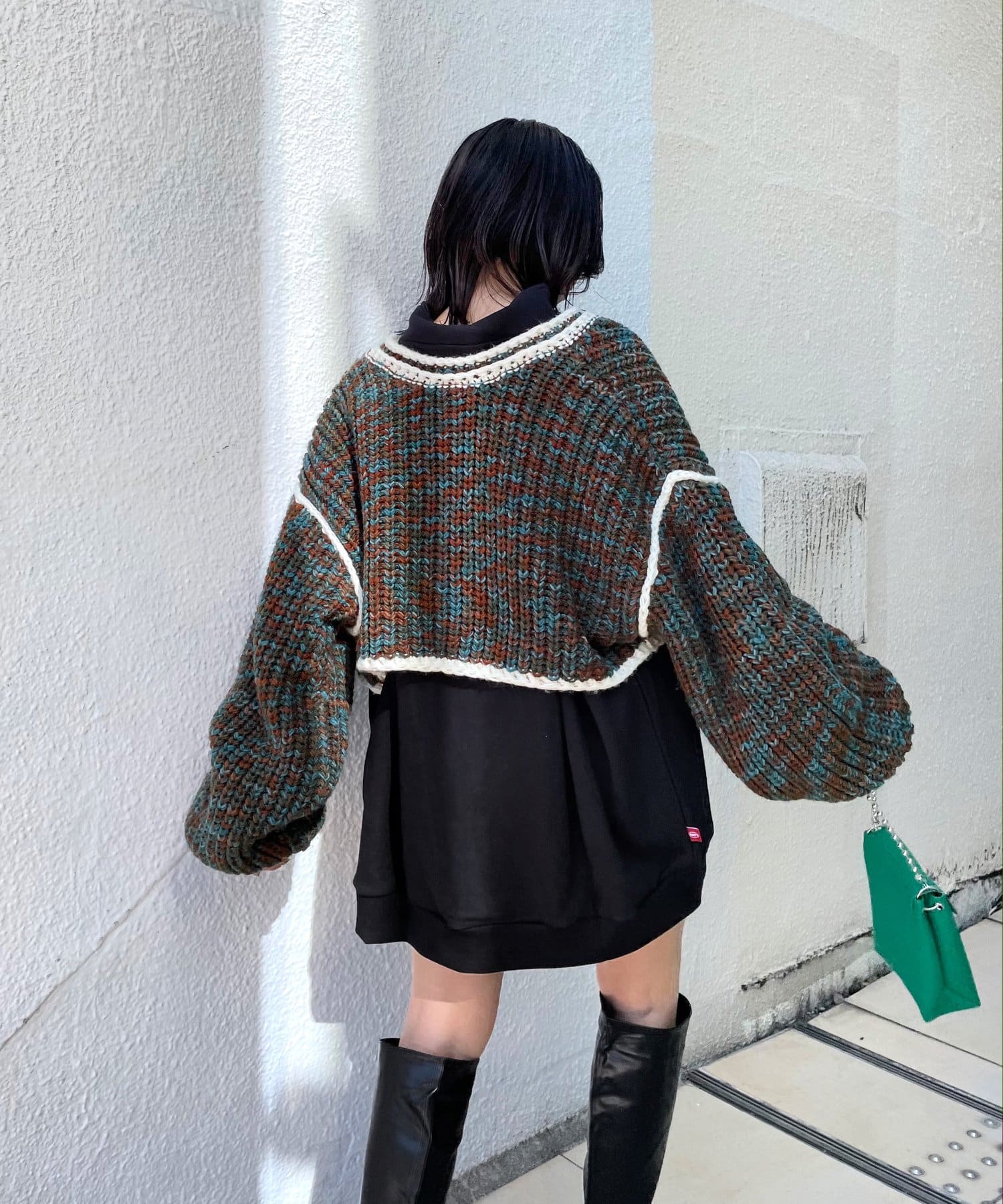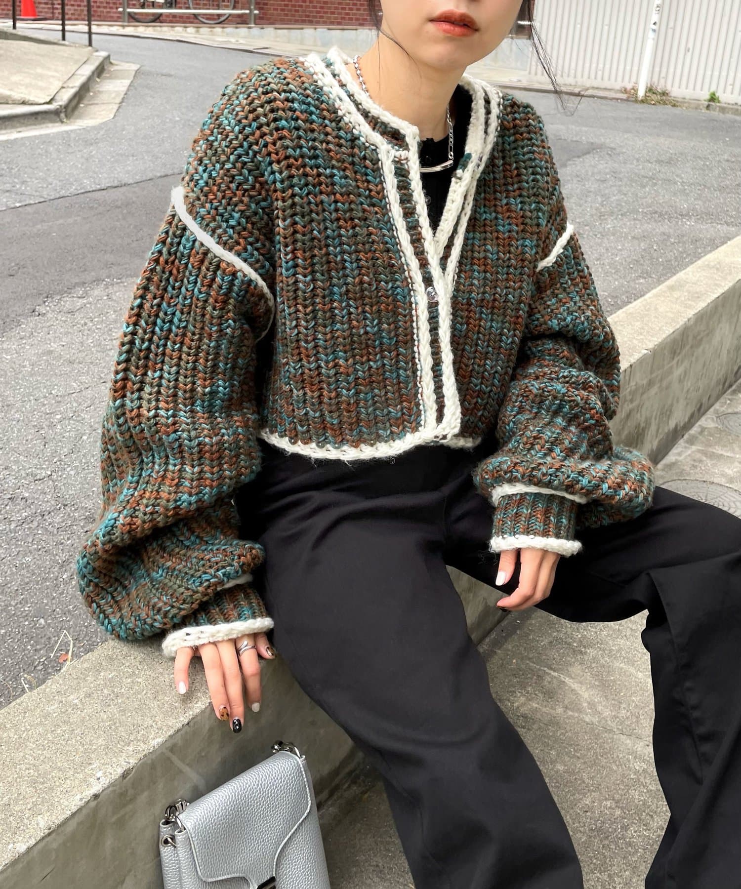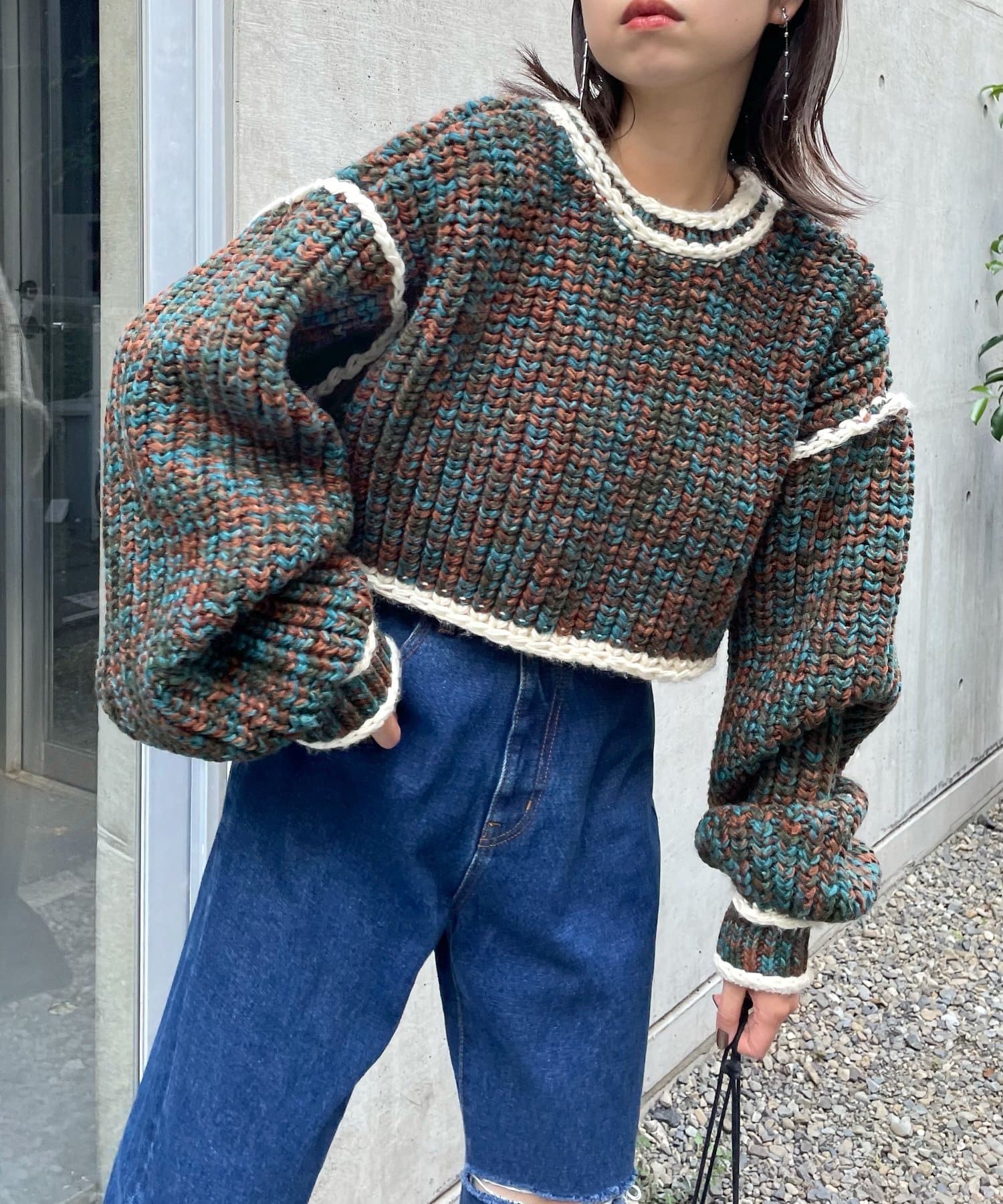 混ざりあう様々なカラー×パイピング×ショート丈がポイント!2通りの着方が出来るニット