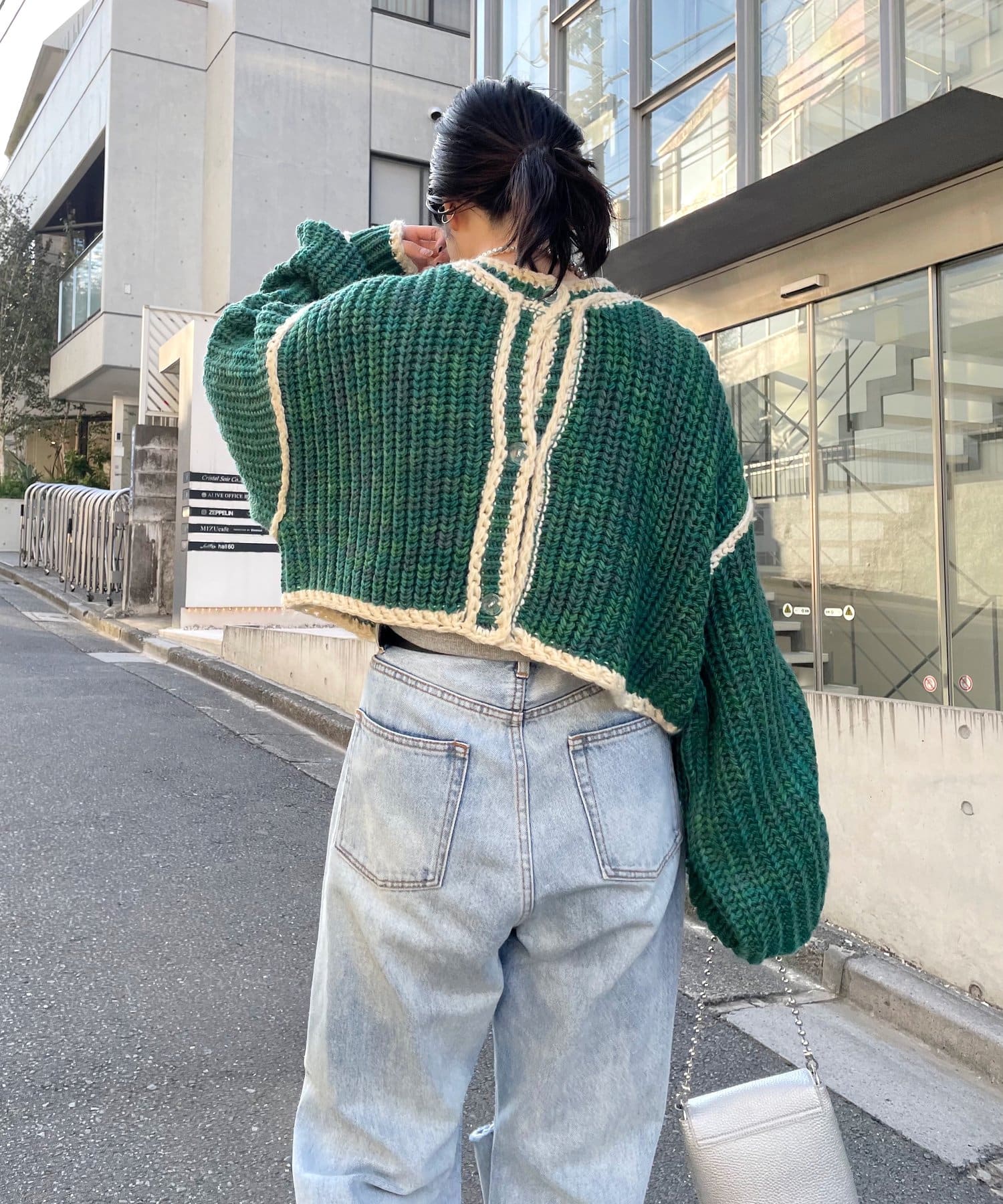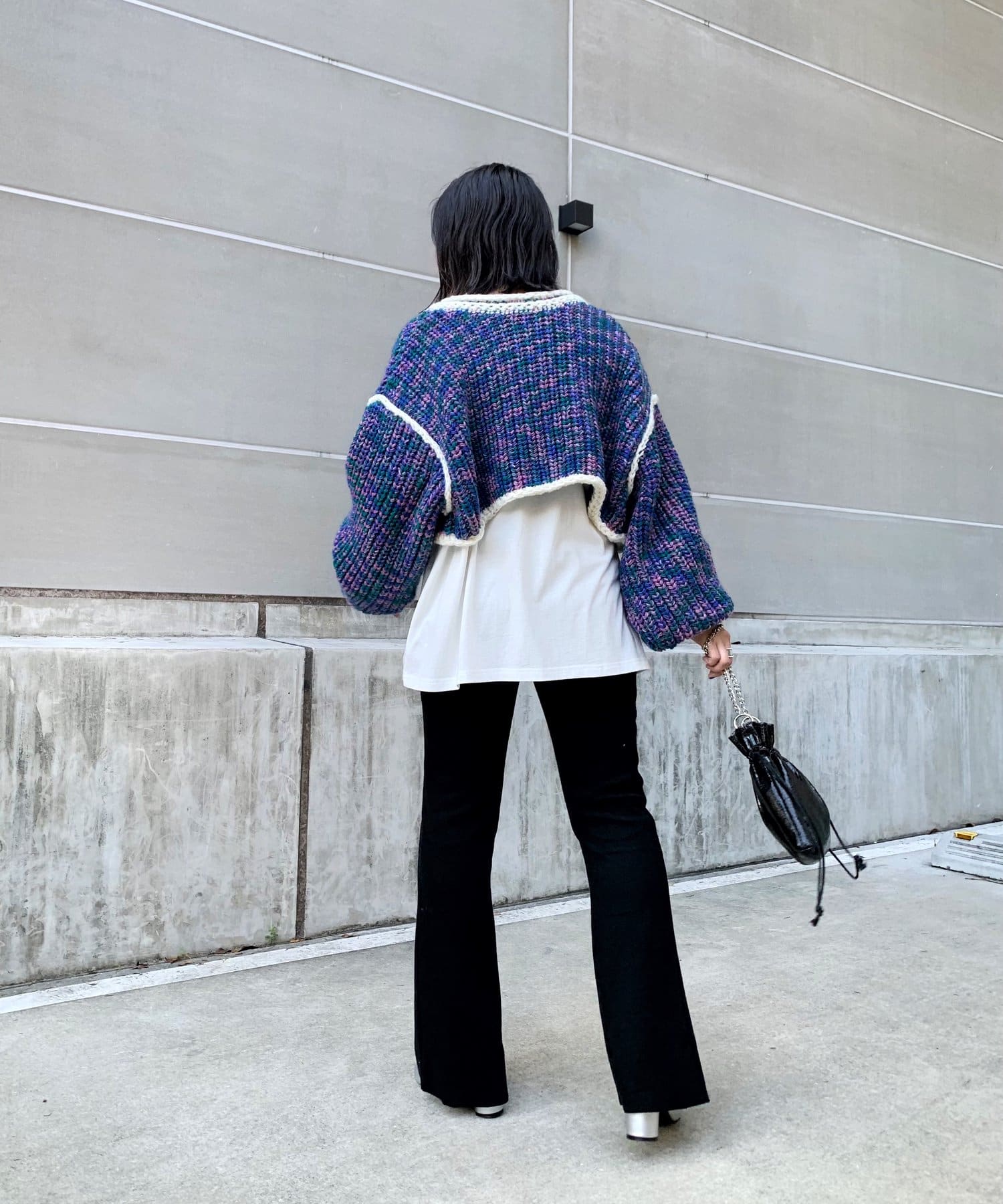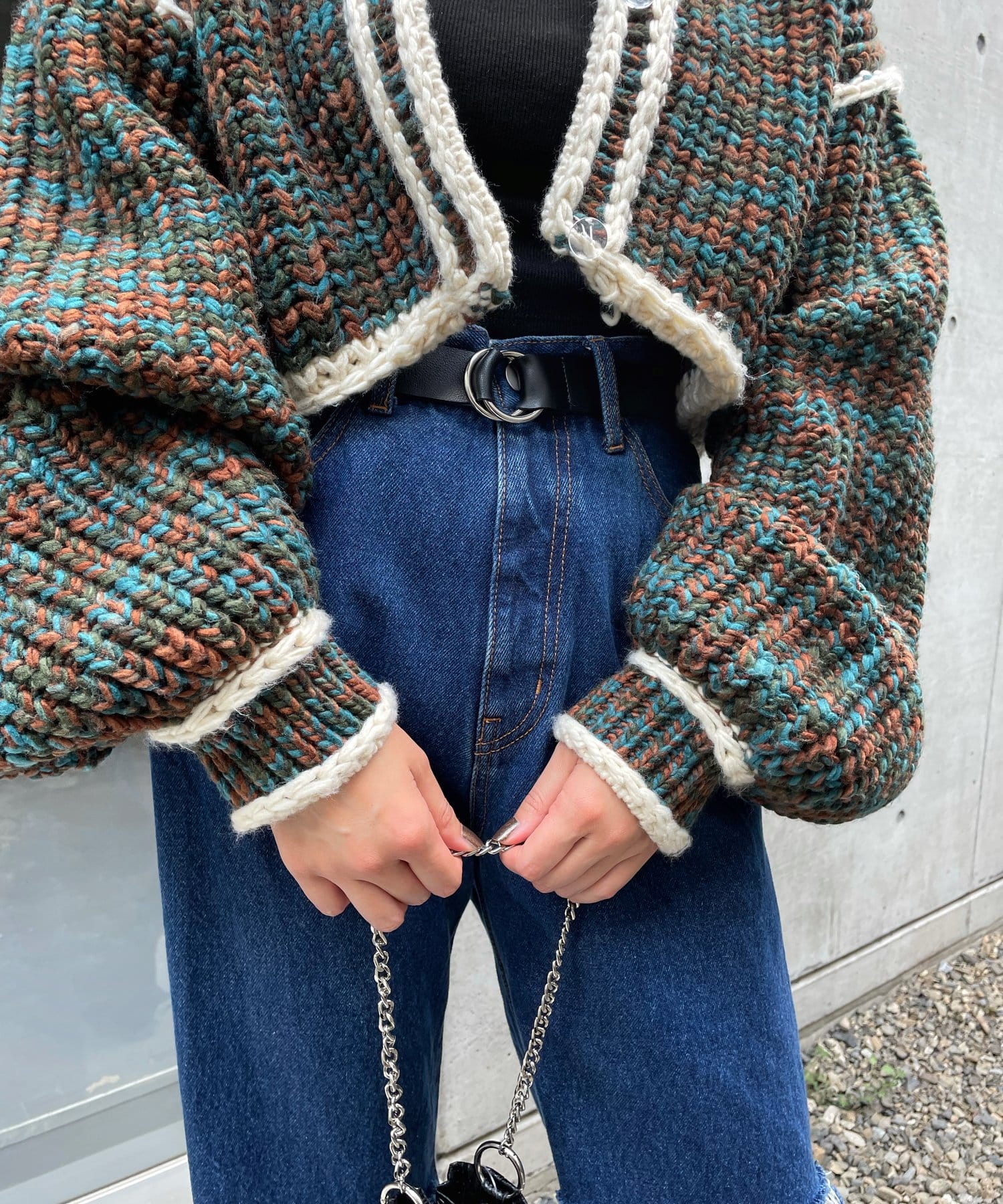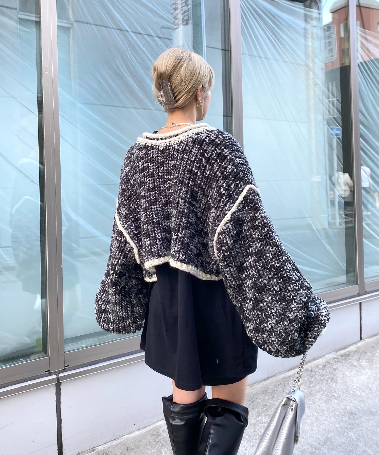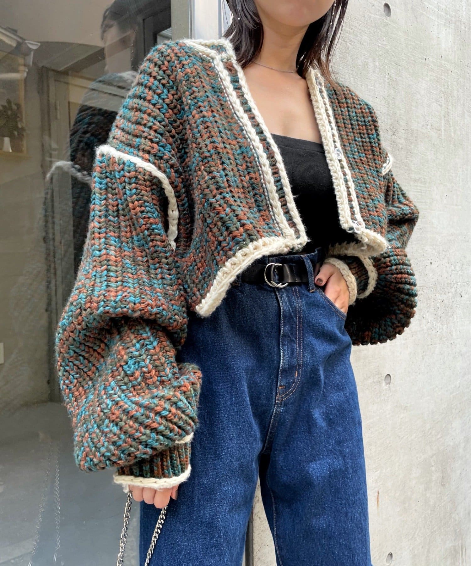混ざりあう様々なカラー×パイピング×ショート丈がポイント!2通りの着方が出来るニット