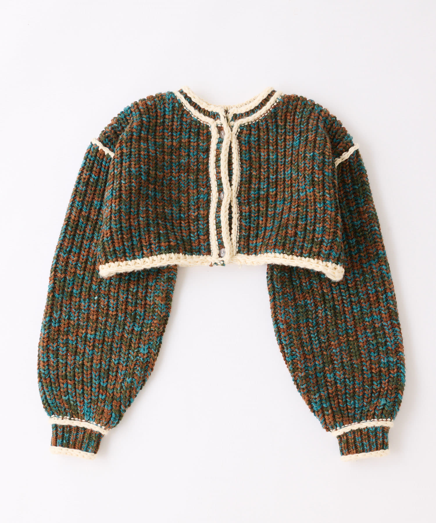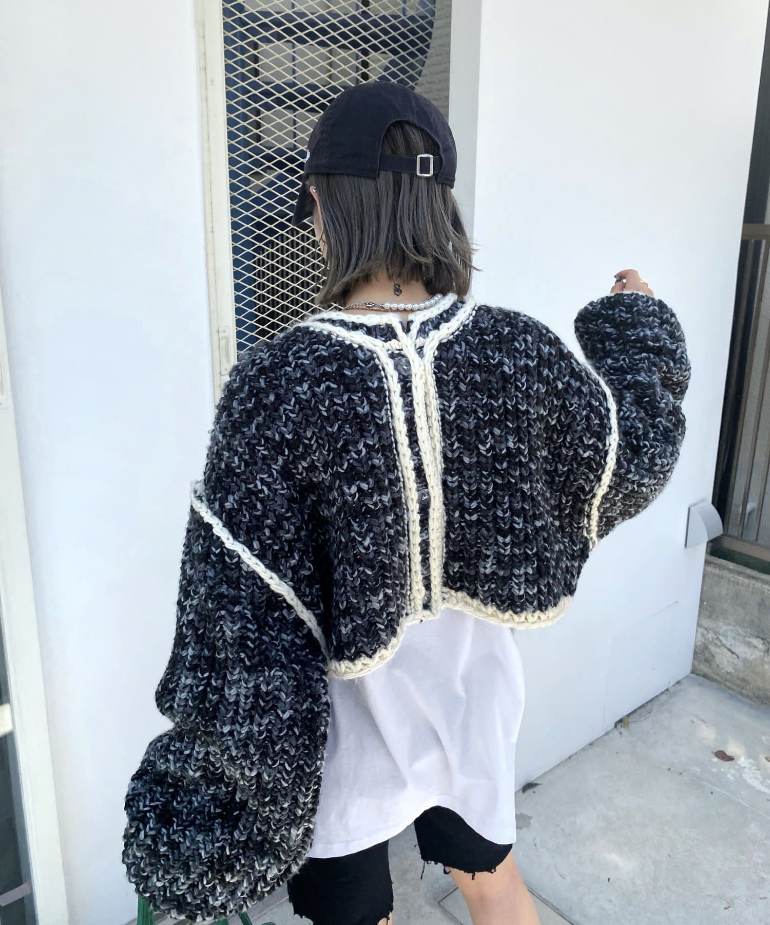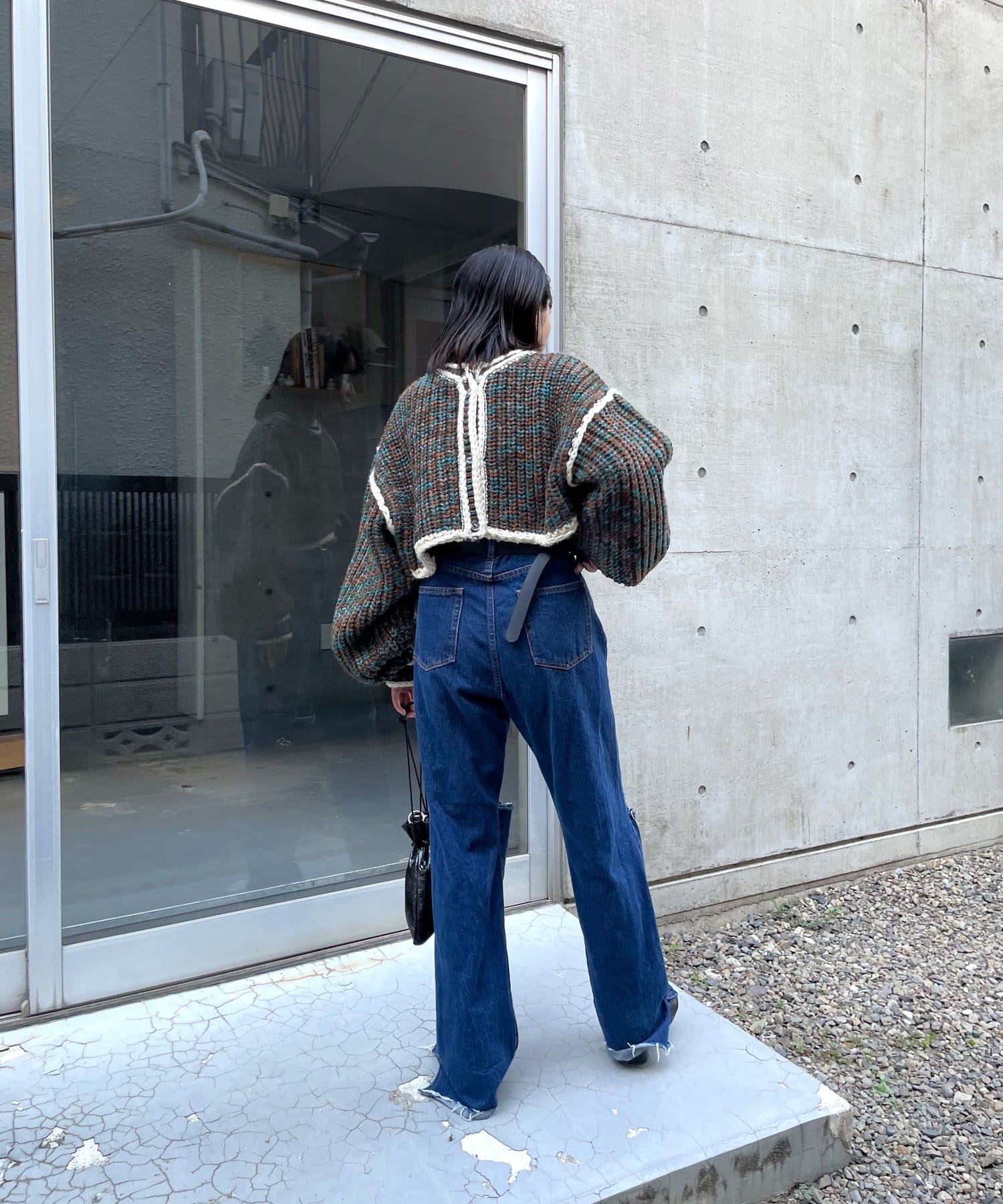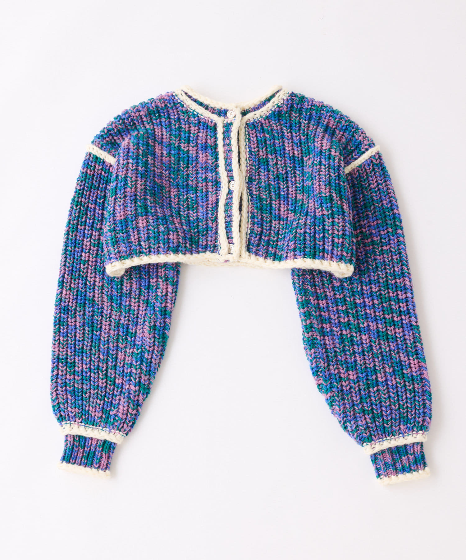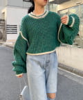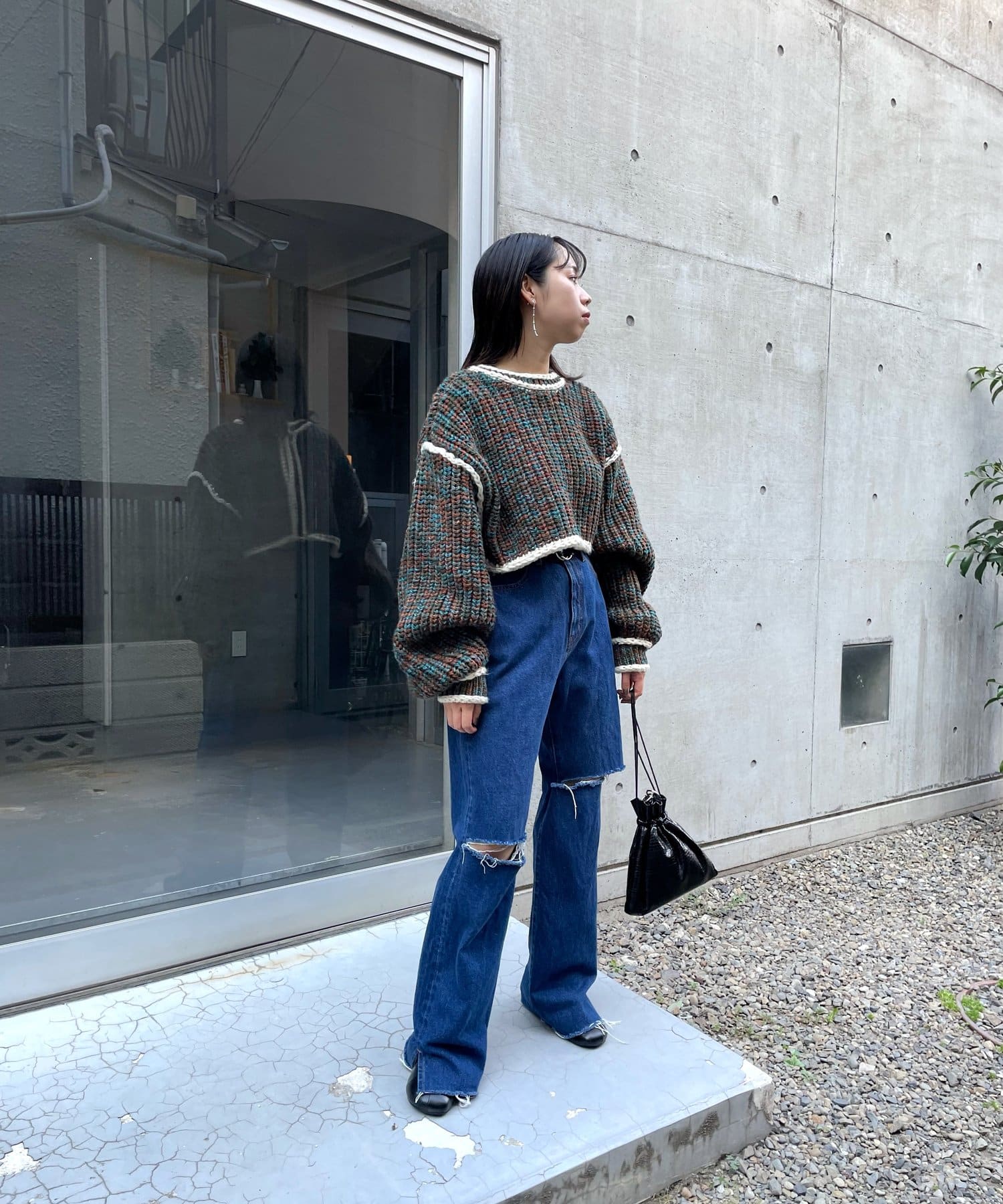 混ざりあう様々なカラー×パイピング×ショート丈がポイント!2通りの着方が出来るニット