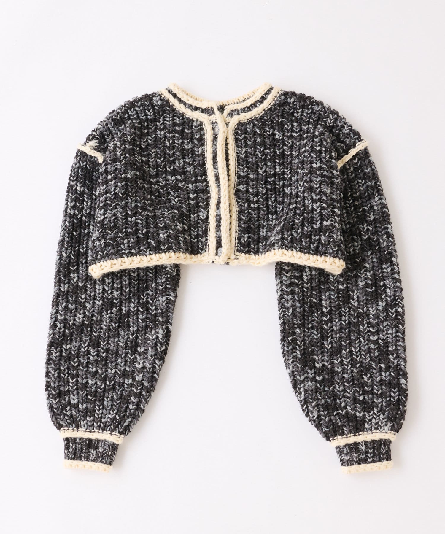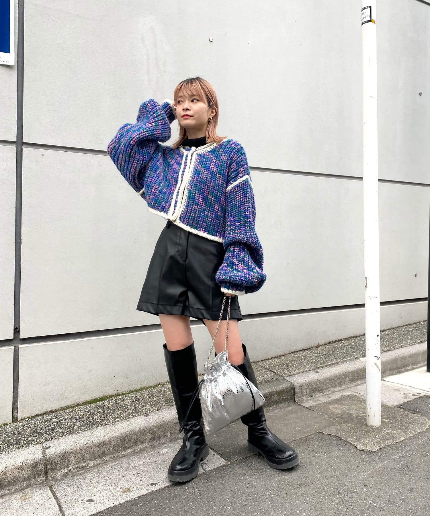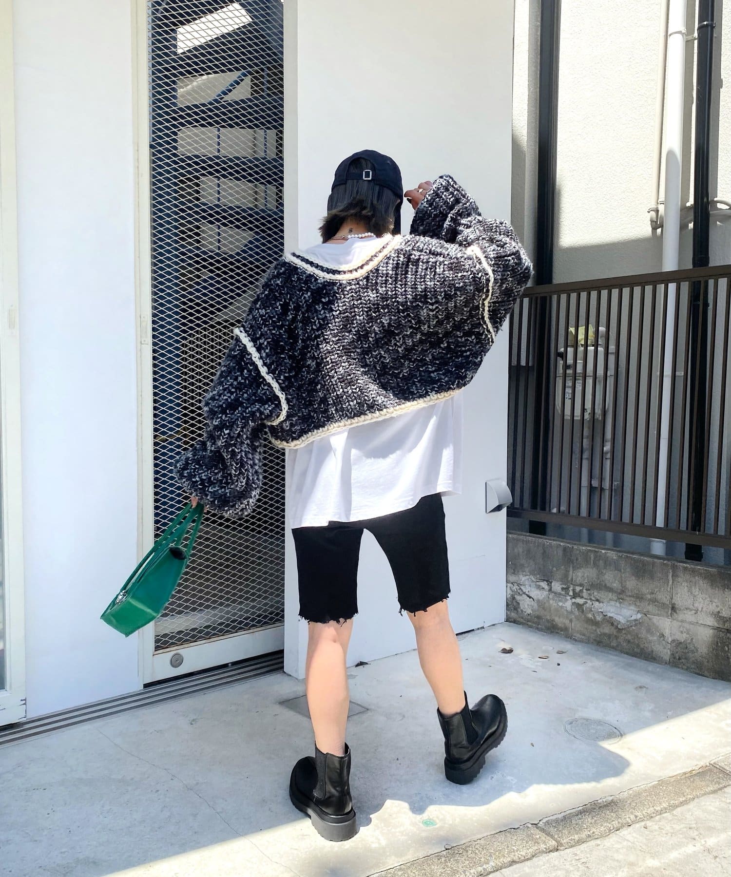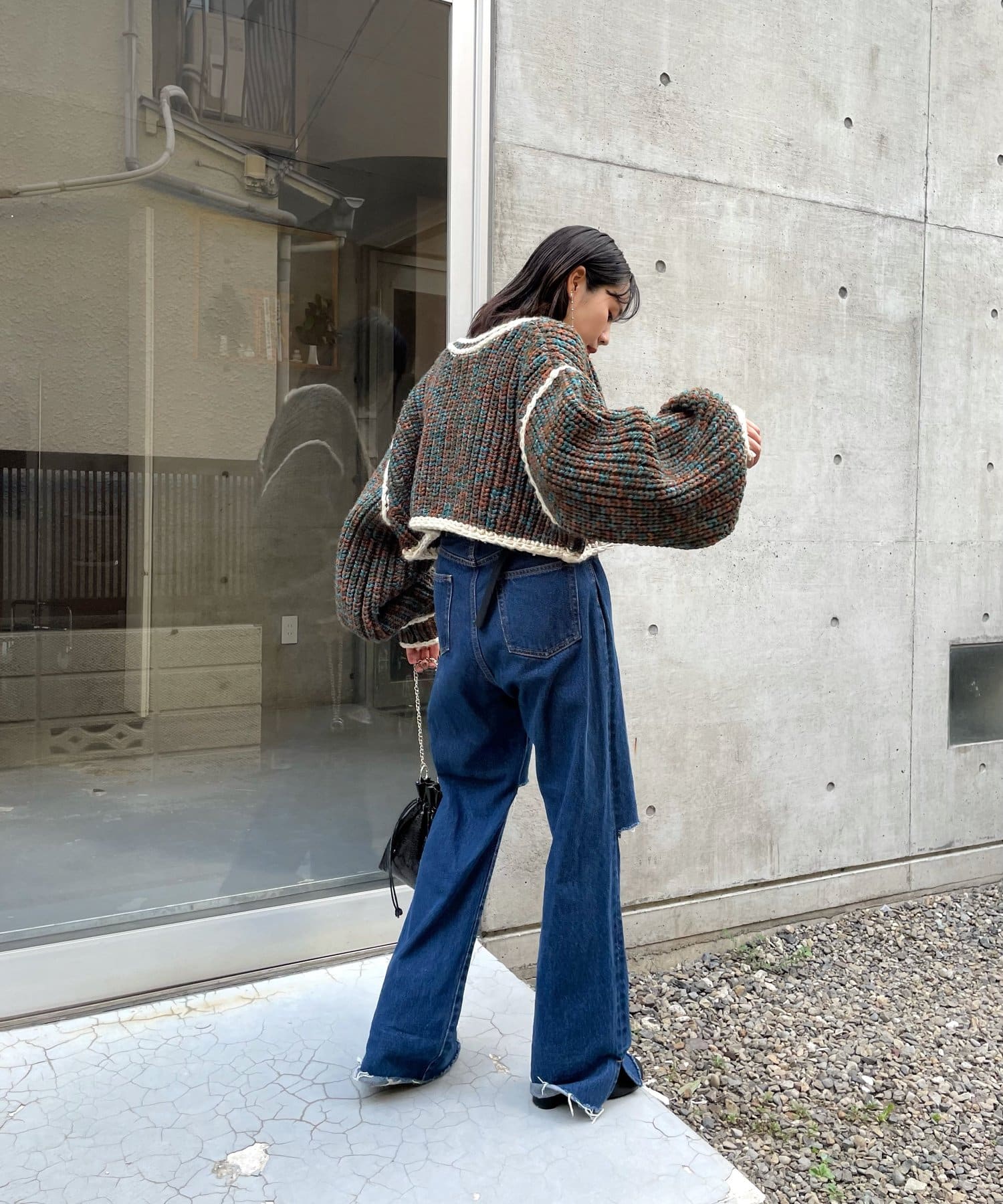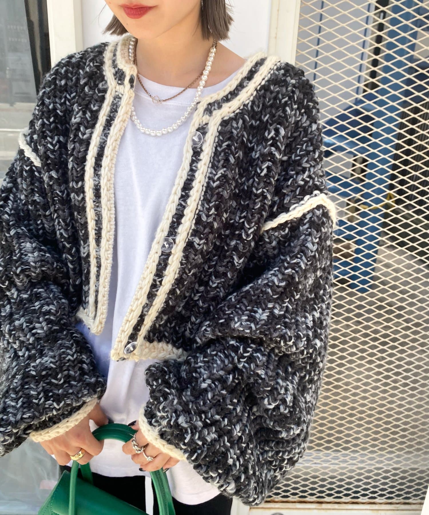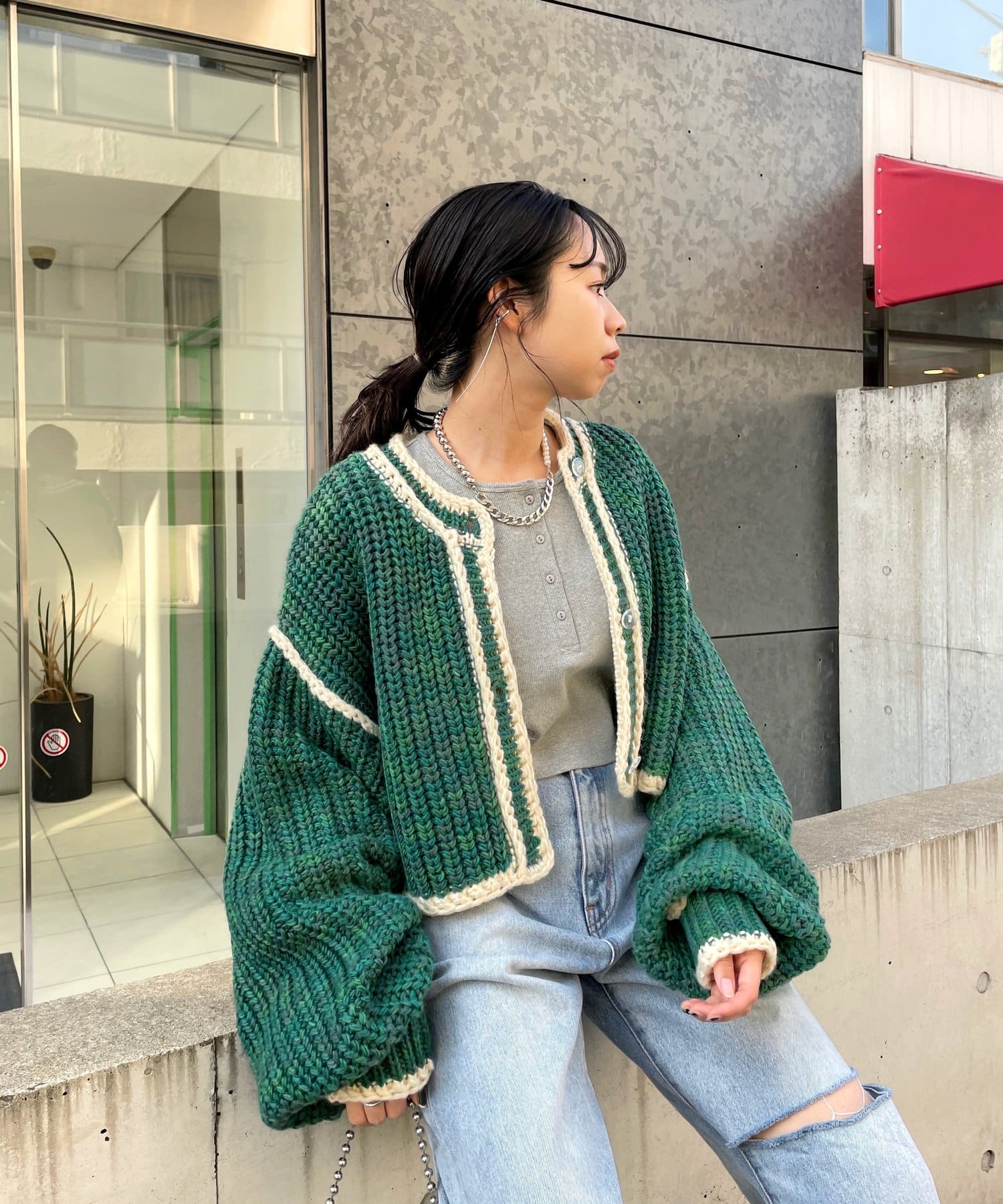 混ざりあう様々なカラー×パイピング×ショート丈がポイント!2通りの着方が出来るニット