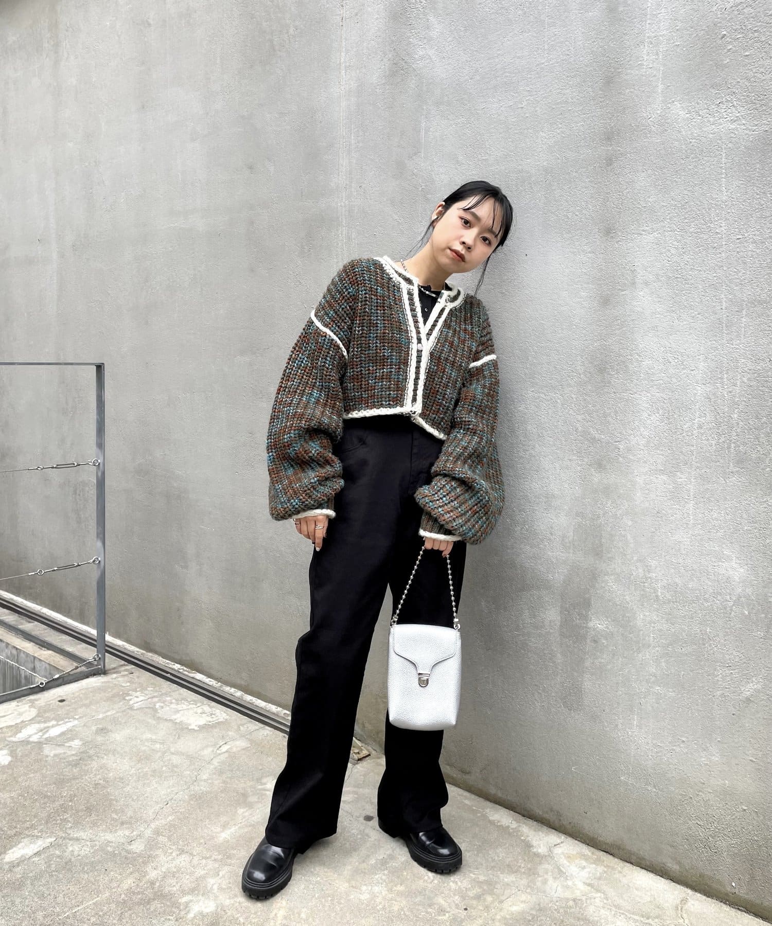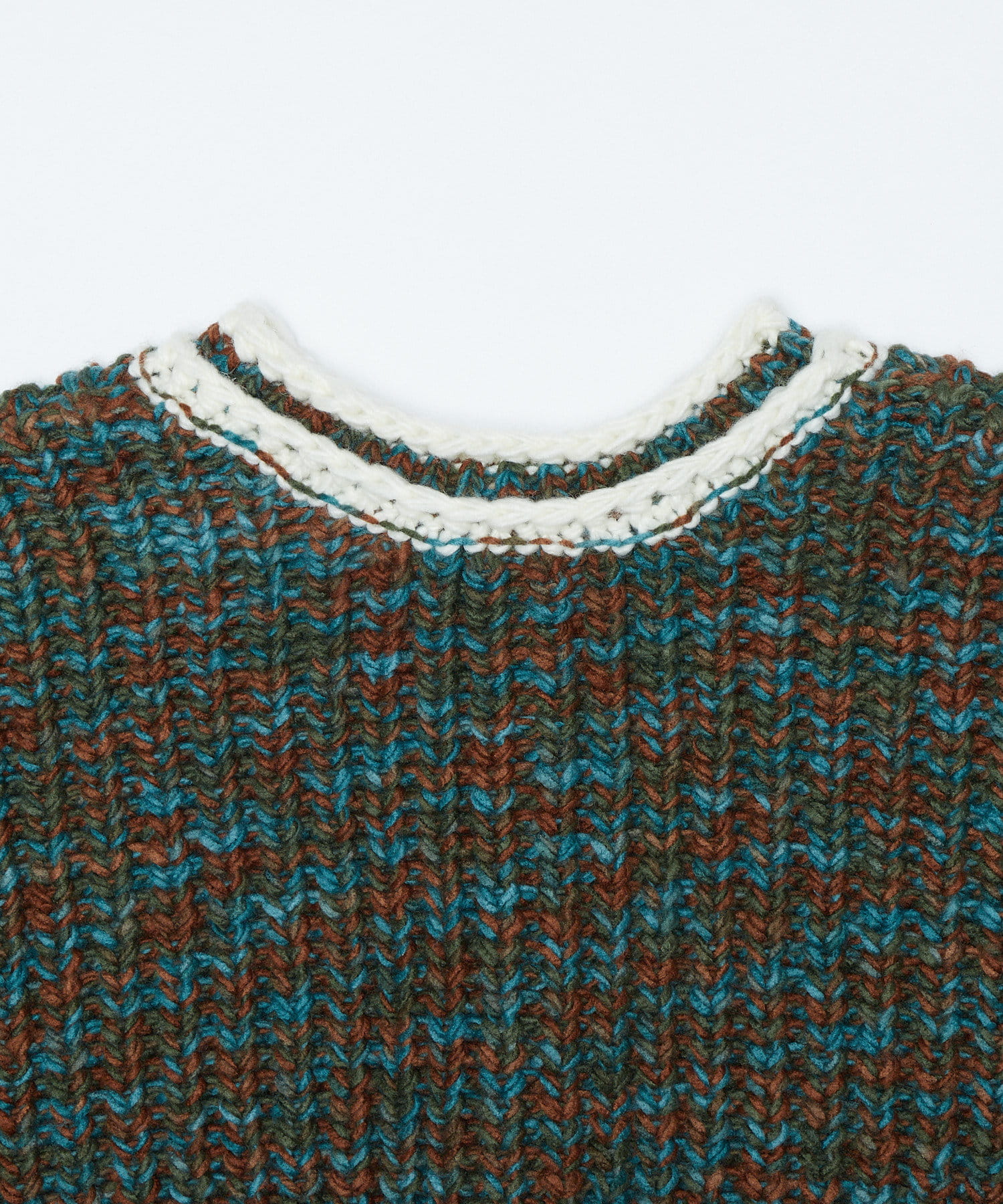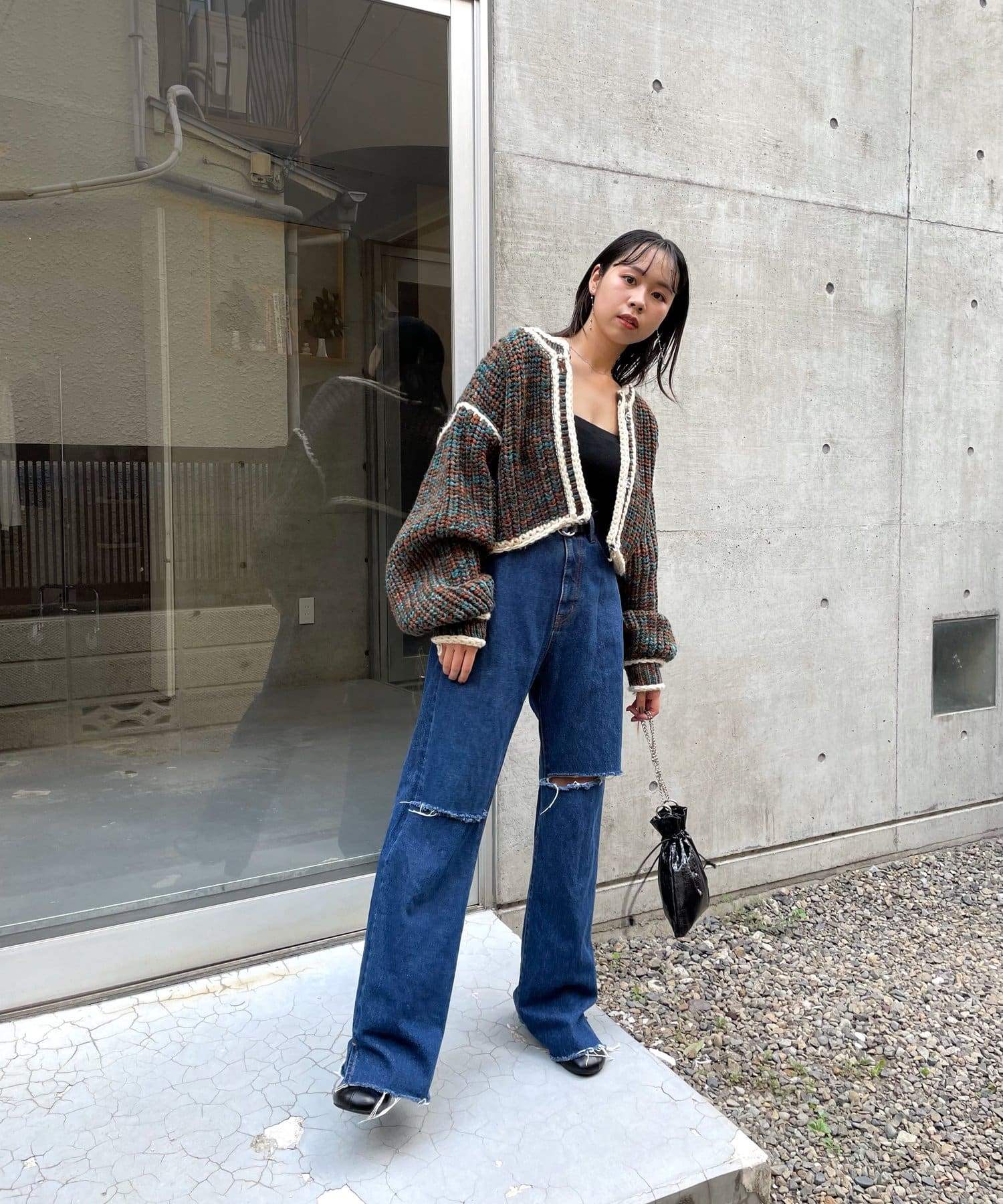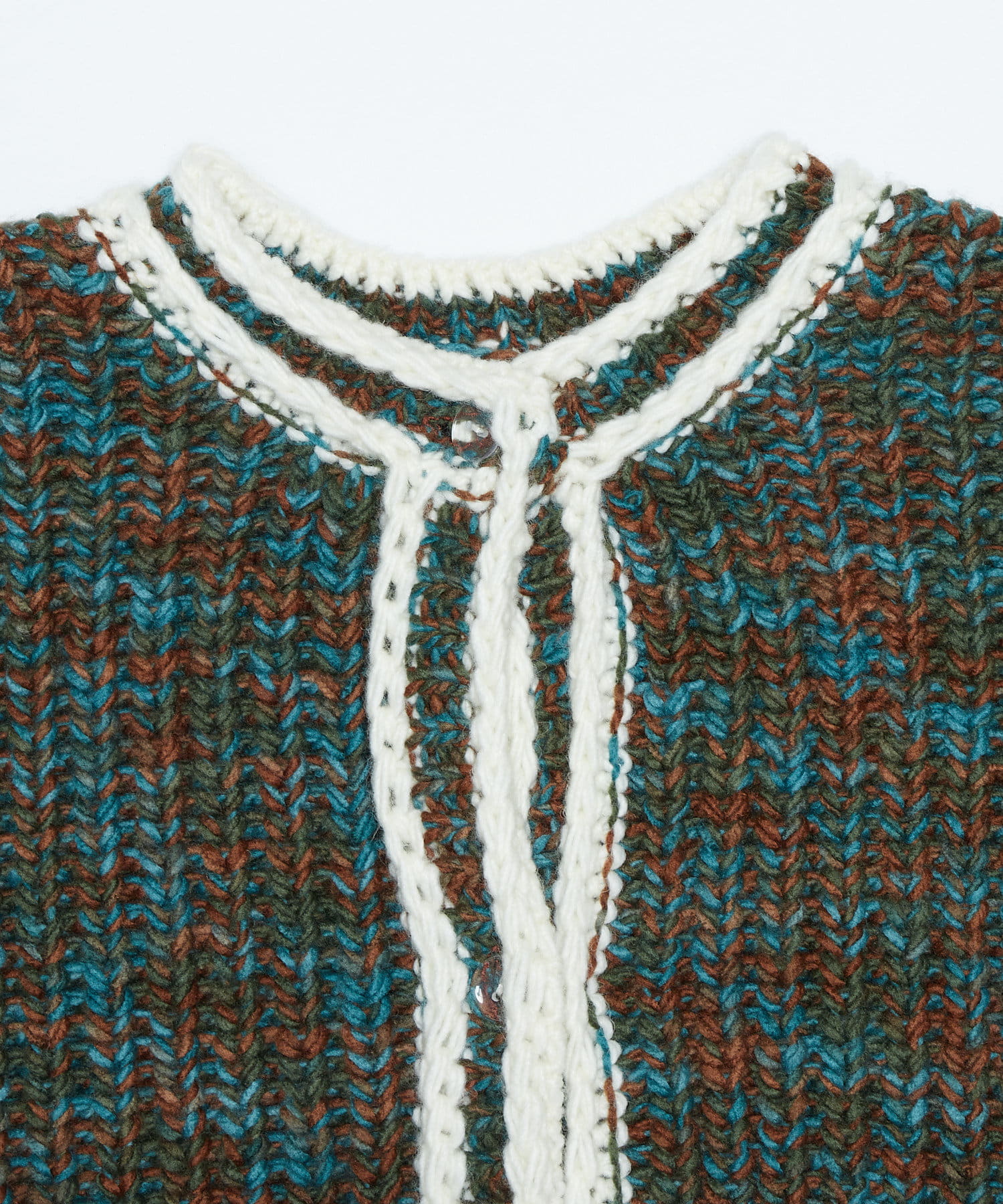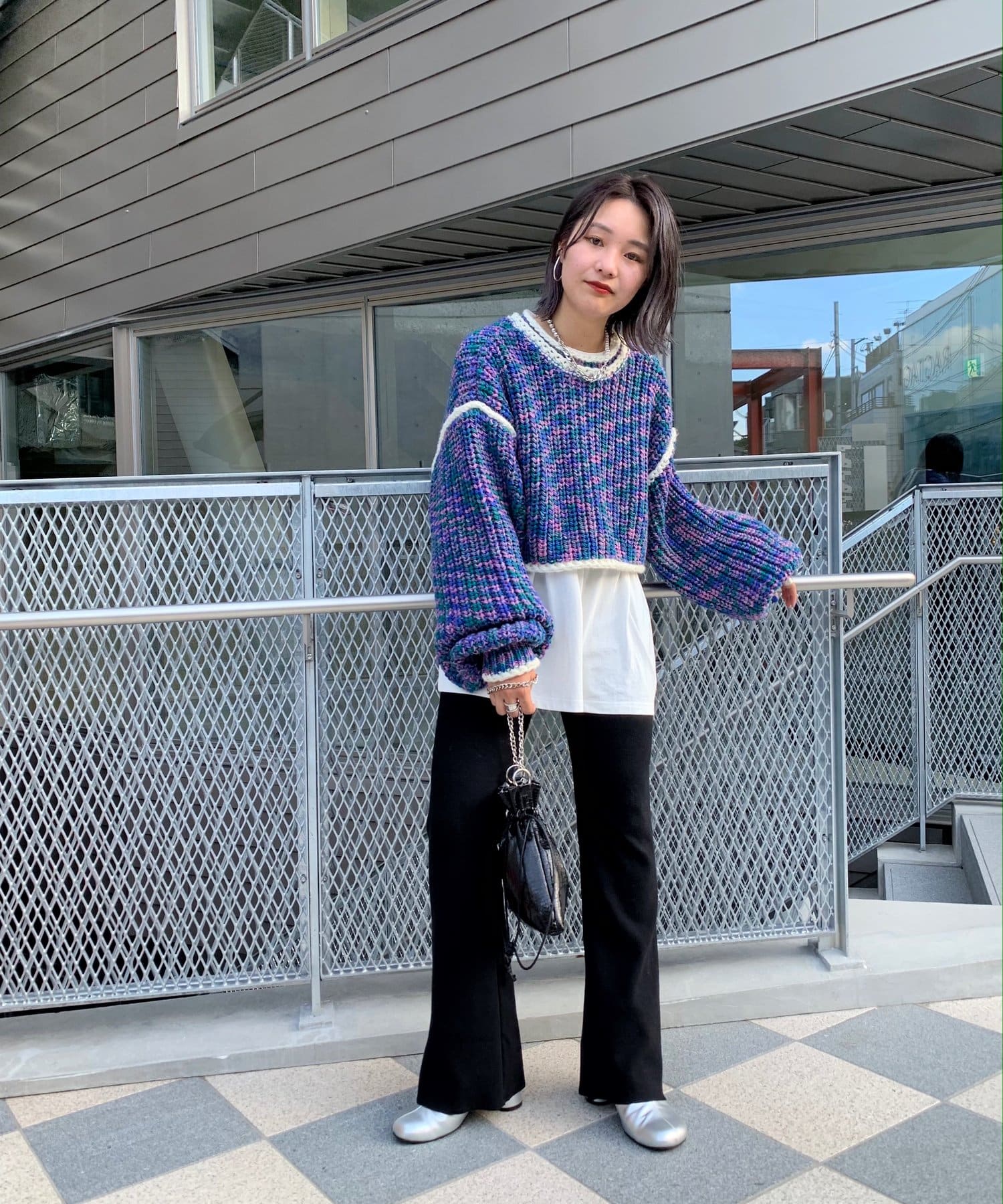 混ざりあう様々なカラー×パイピング×ショート丈がポイント!2通りの着方が出来るニット