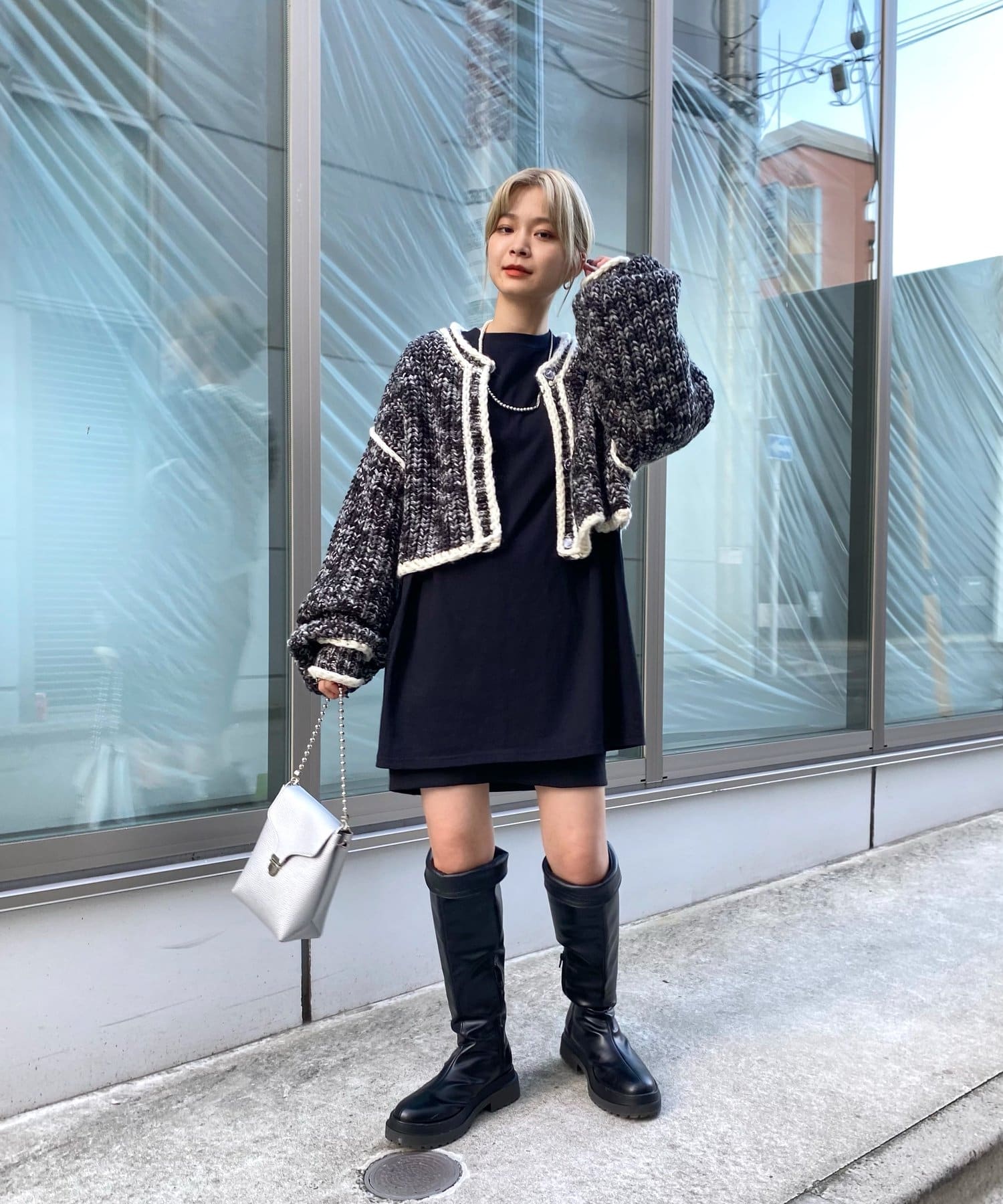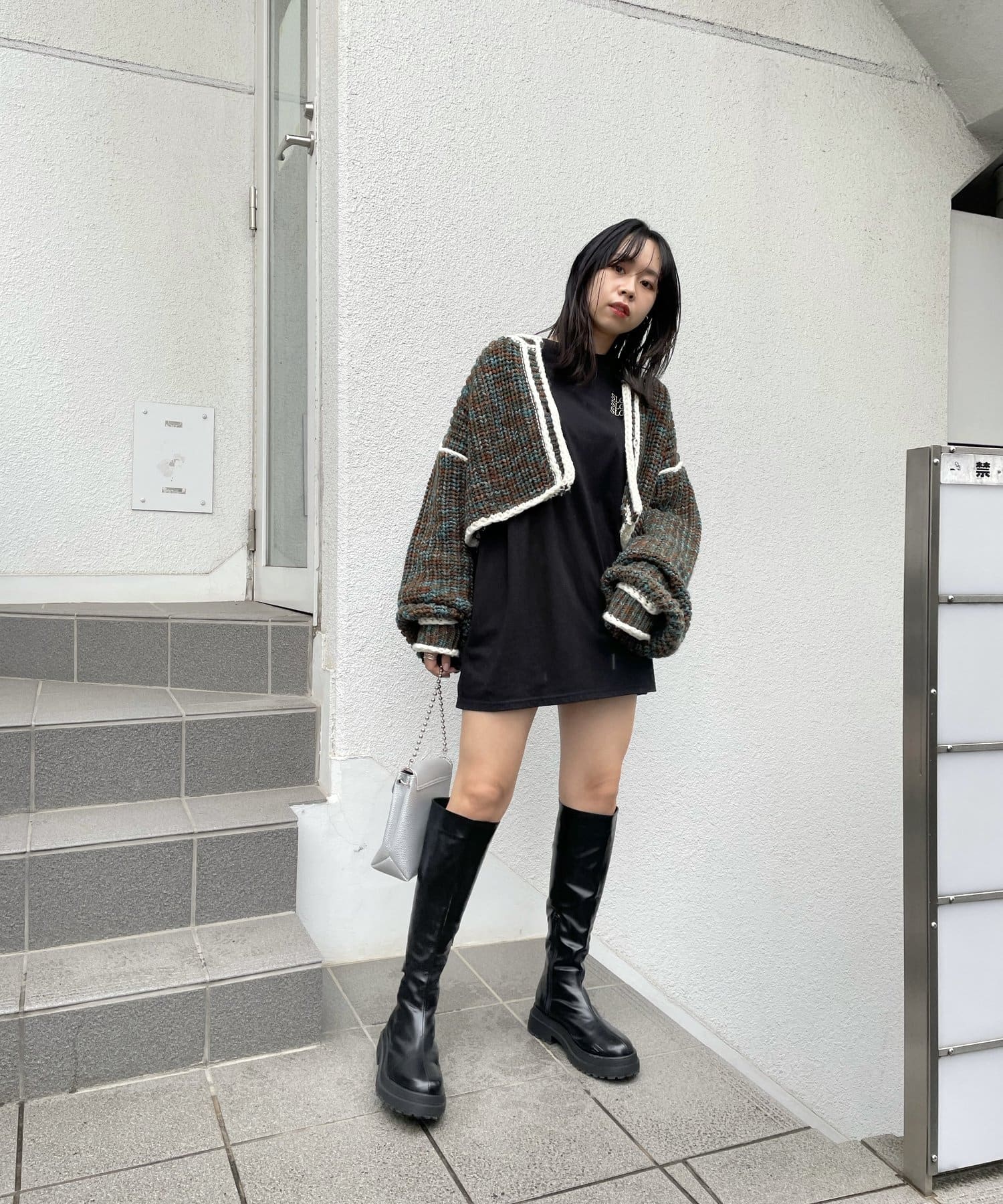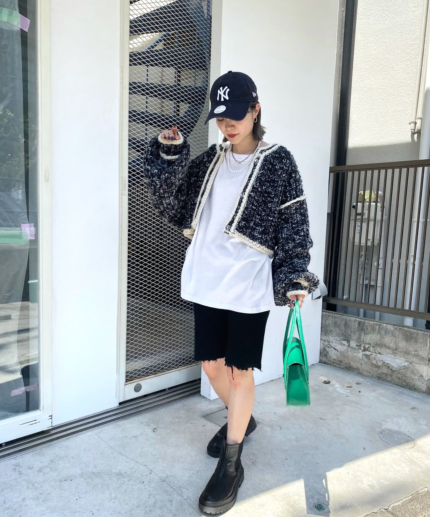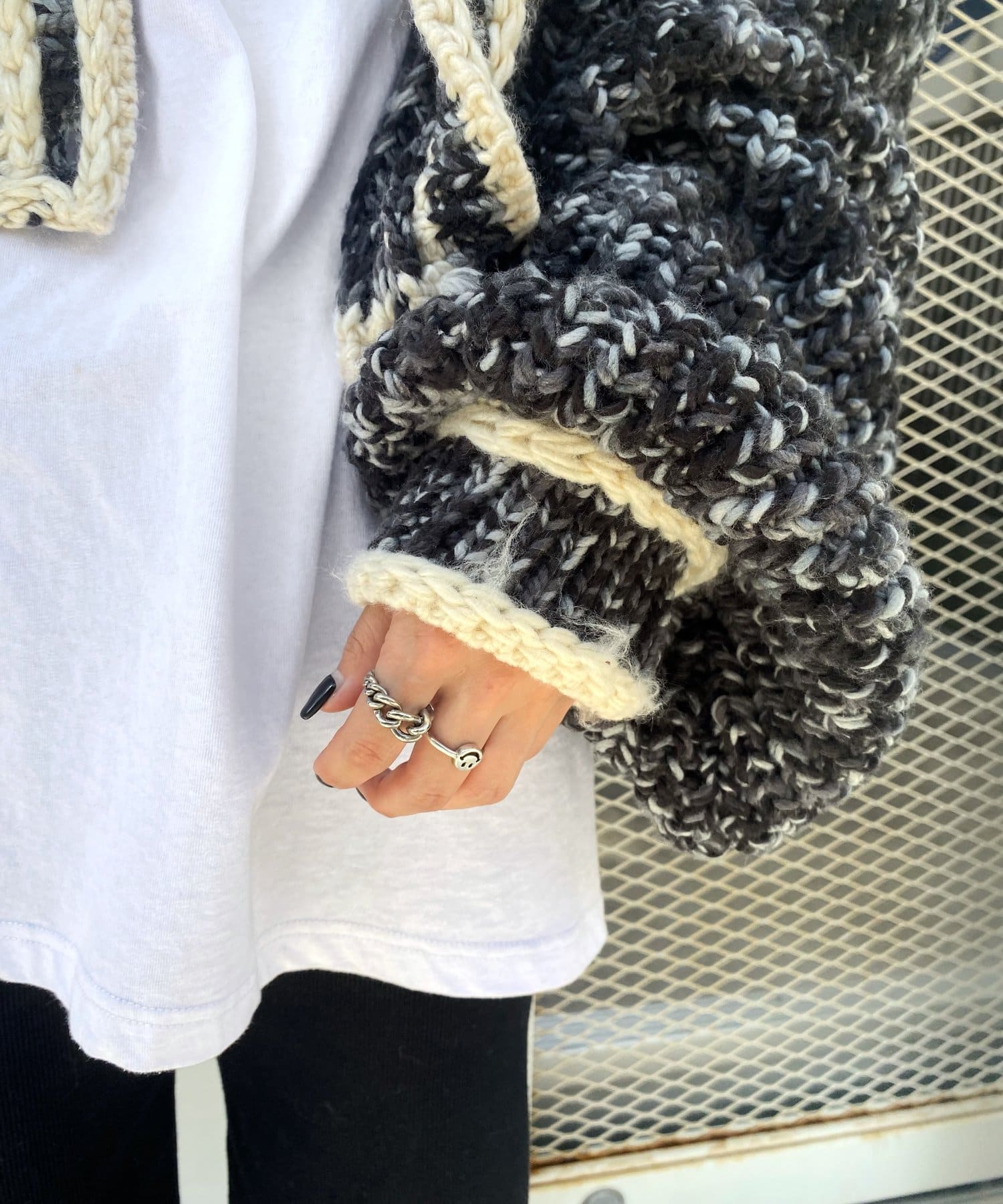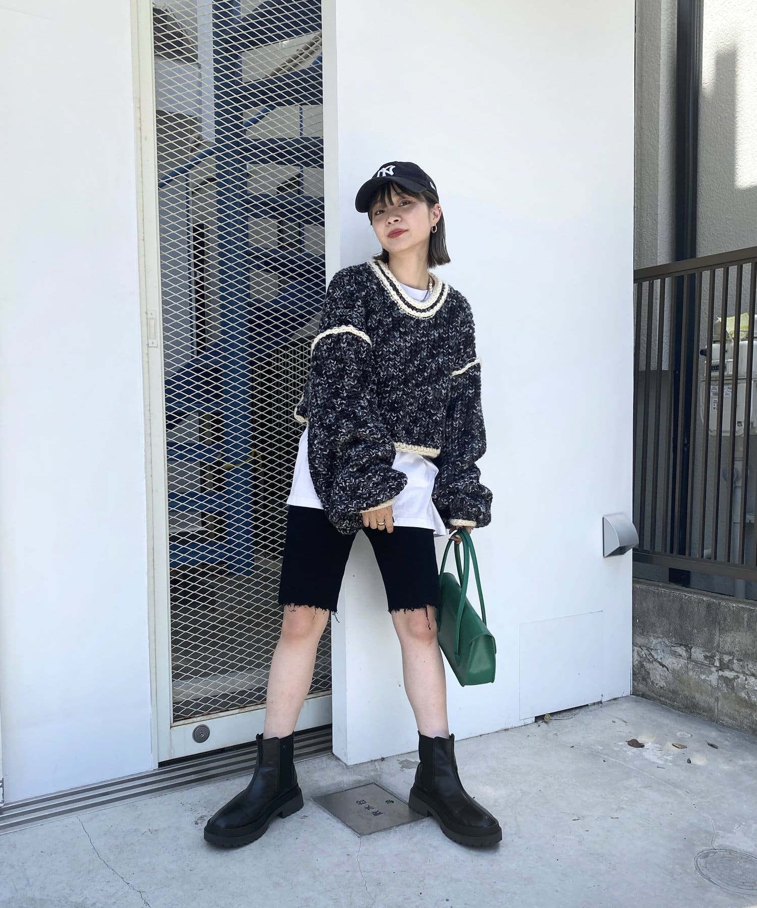 混ざりあう様々なカラー×パイピング×ショート丈がポイント!2通りの着方が出来るニット