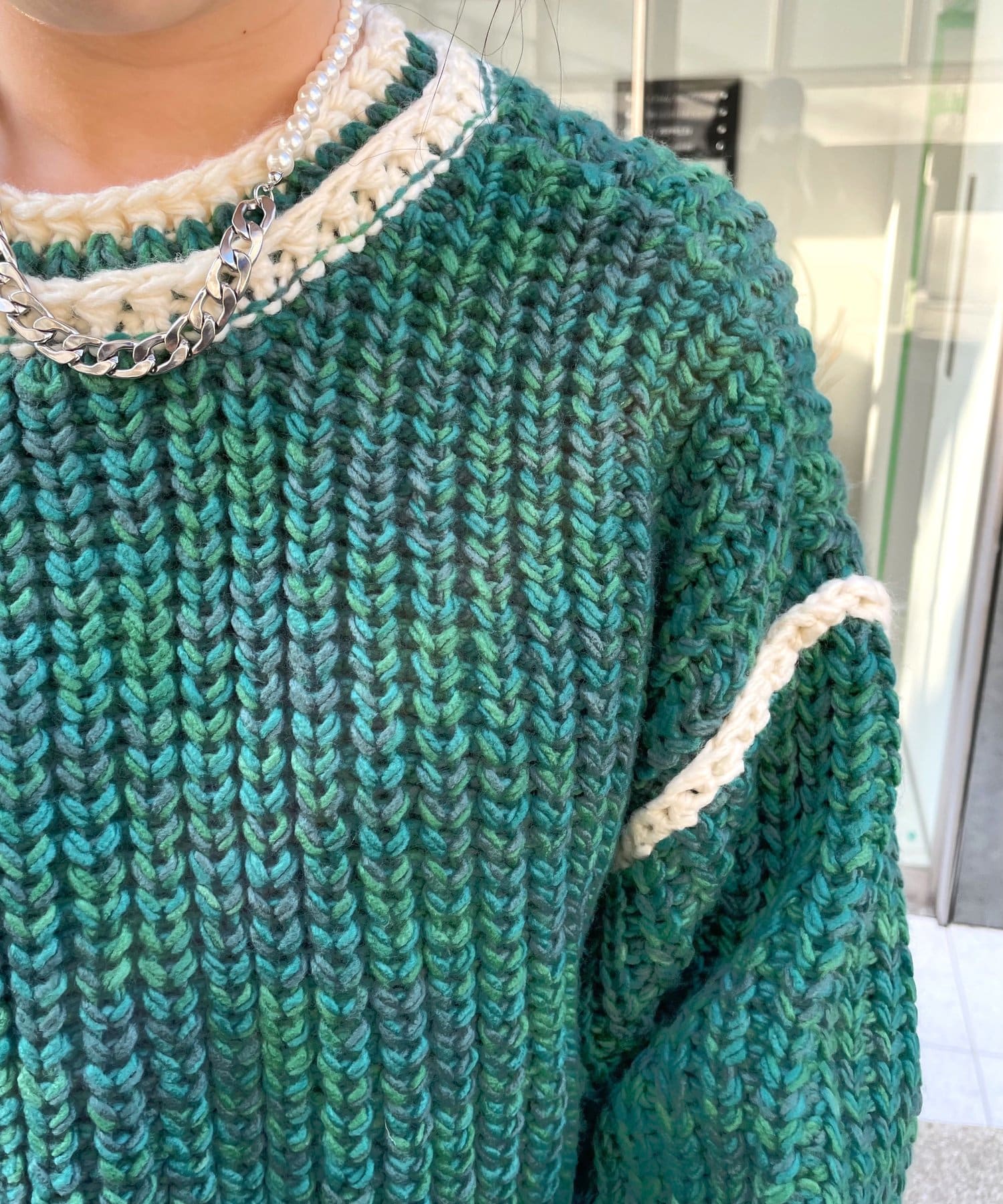 ・ランダムな色の模様が気分を飽きさせない、段染めのニット。