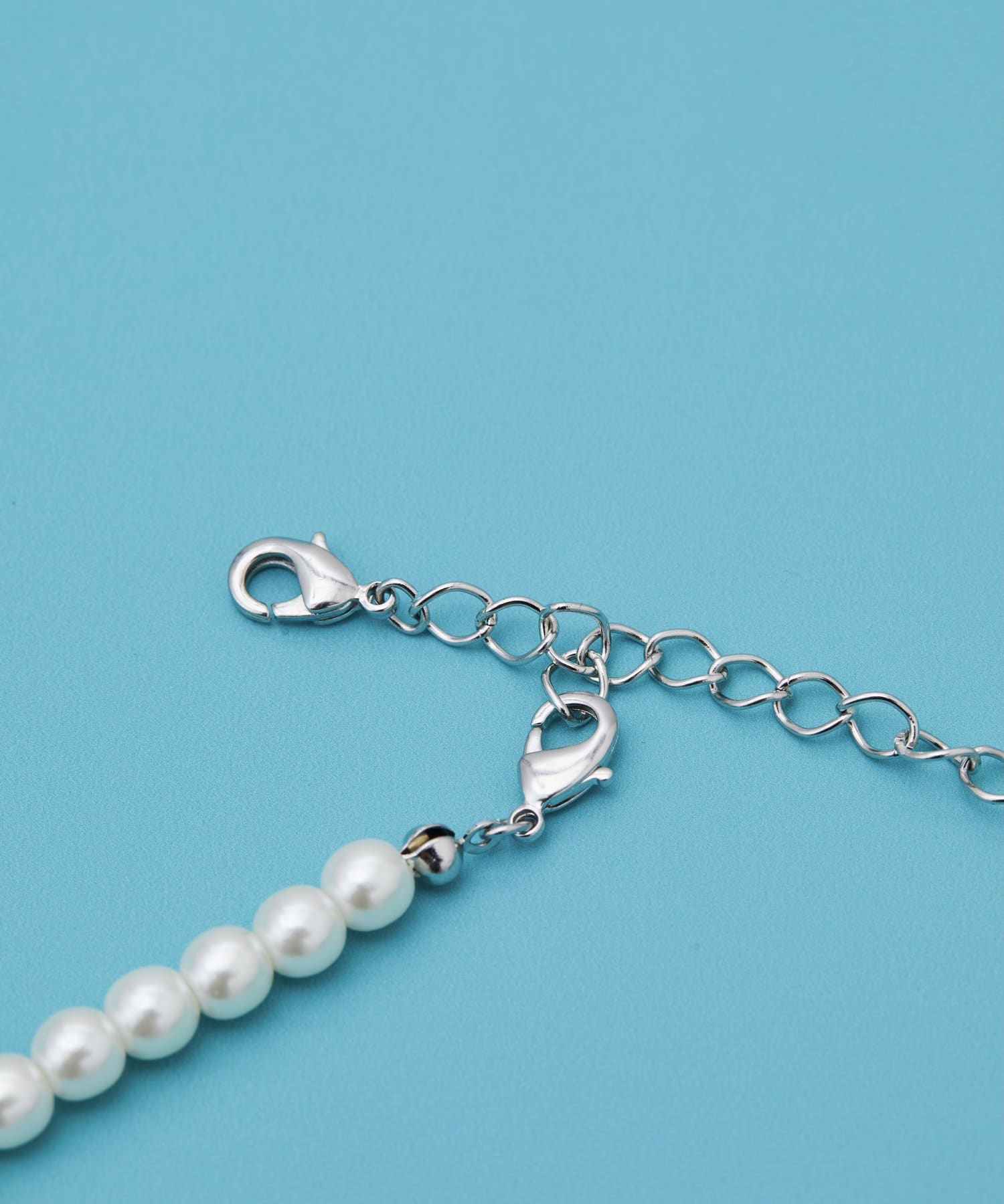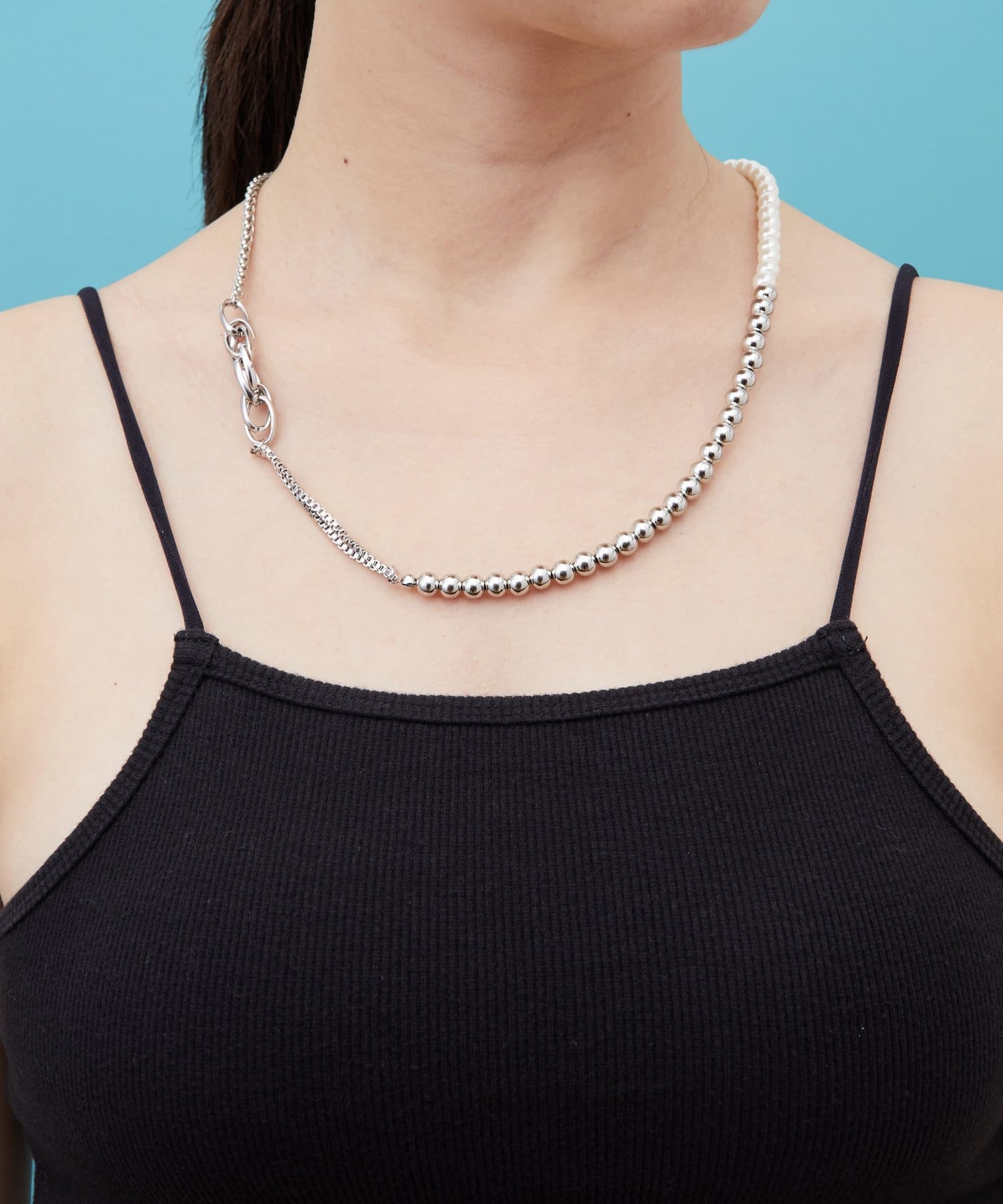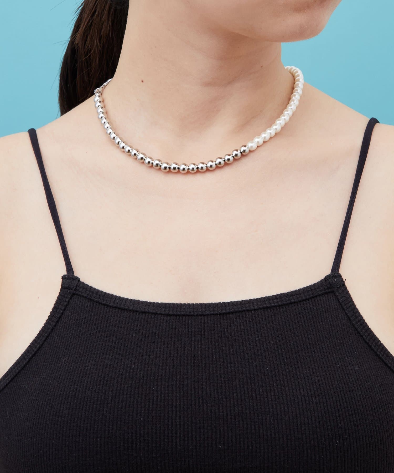 ・華奢なチェーンやパールがコーデの雰囲気を損なわず、ポイントになります。