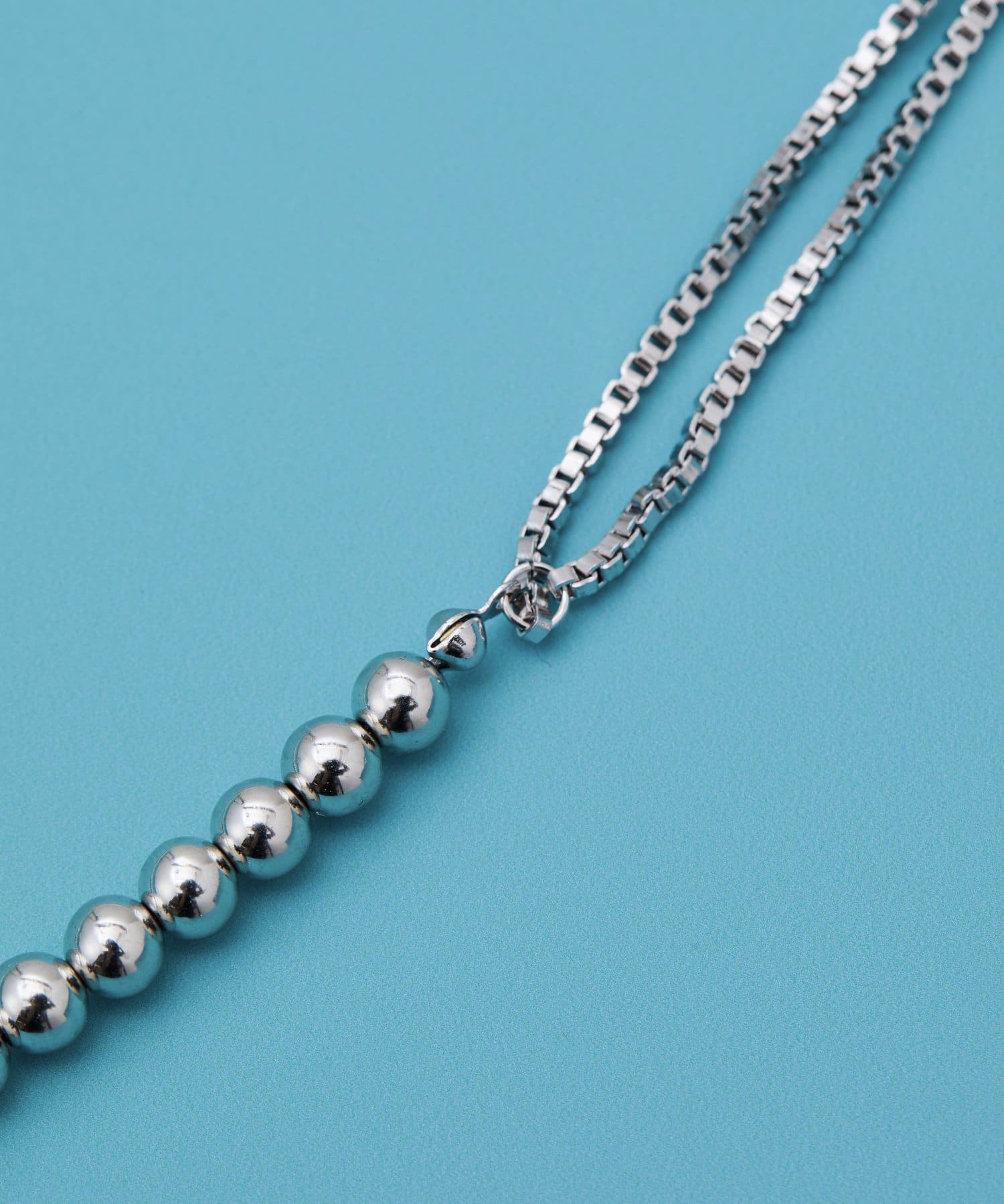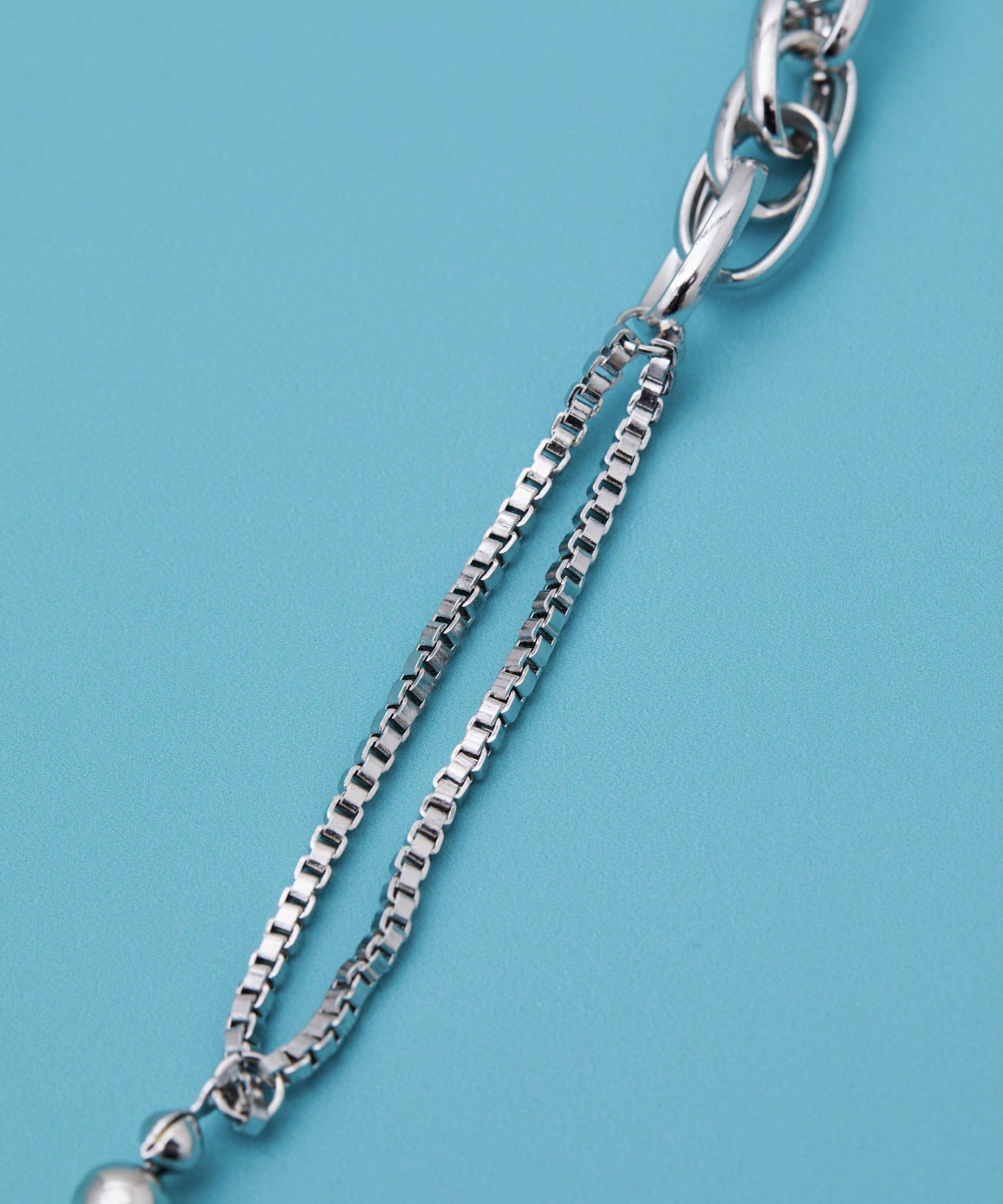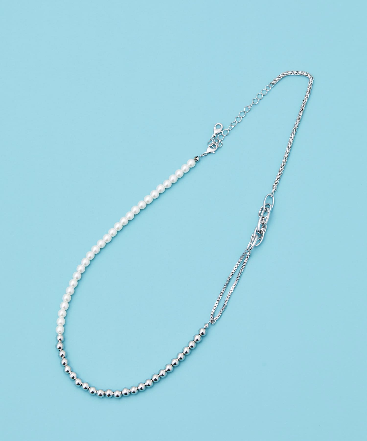 ・華奢なチェーンやパールがコーデの雰囲気を損なわず、ポイントになります。