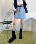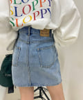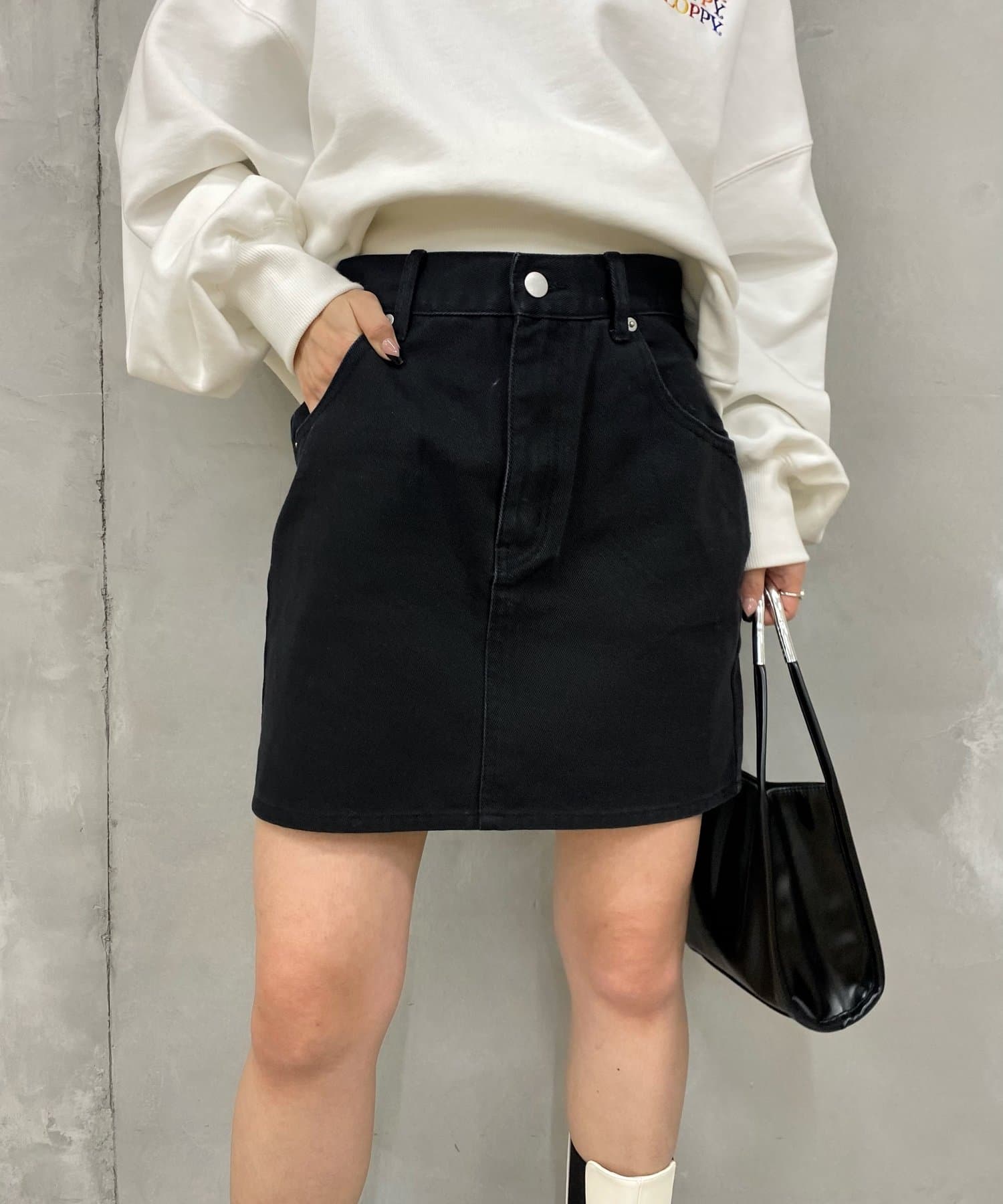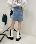 使い込むほど雰囲気が出る紙パッチがポイントになるデニムミニスカート