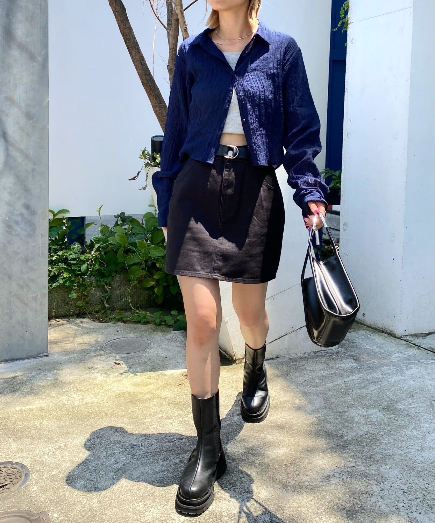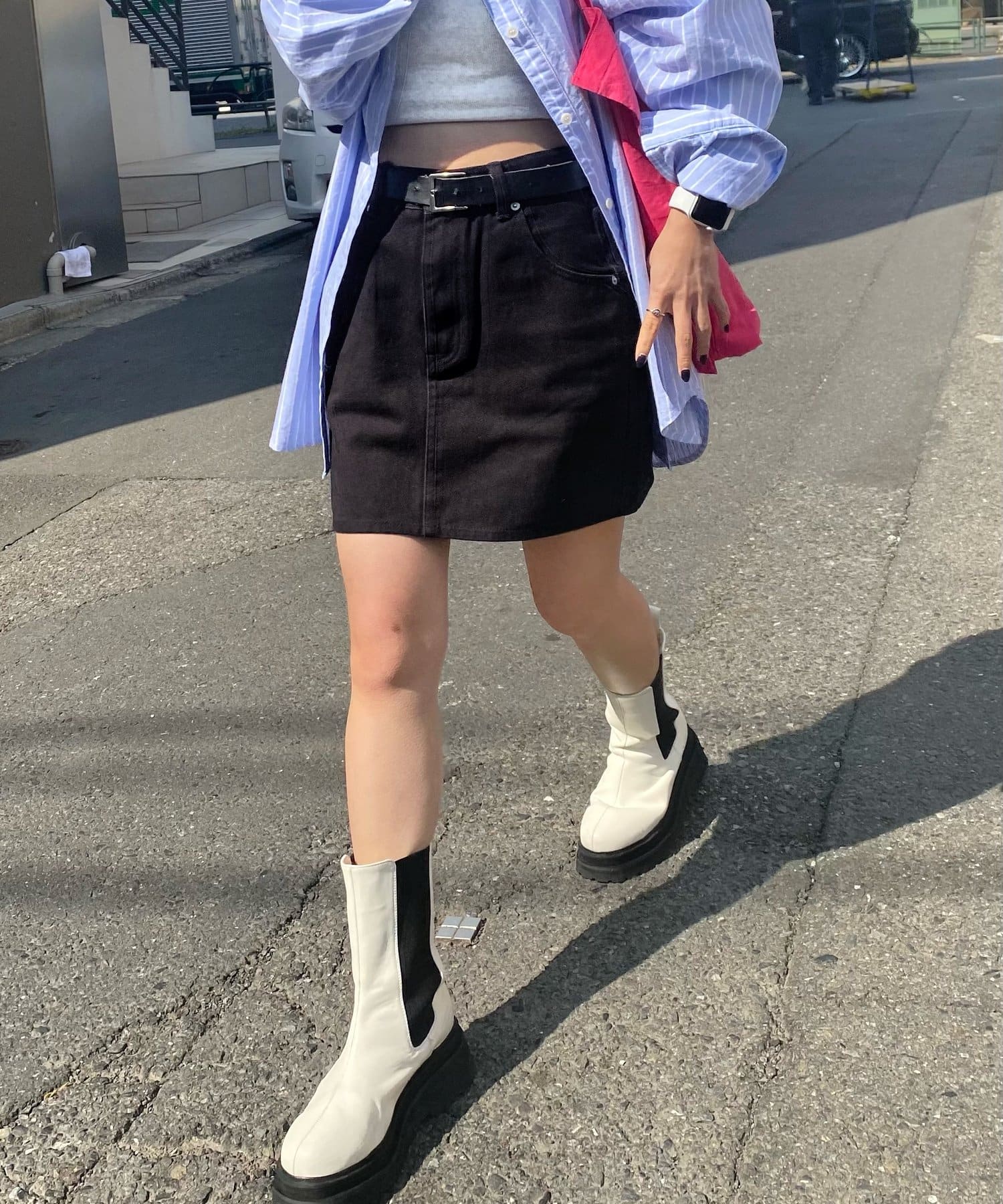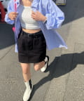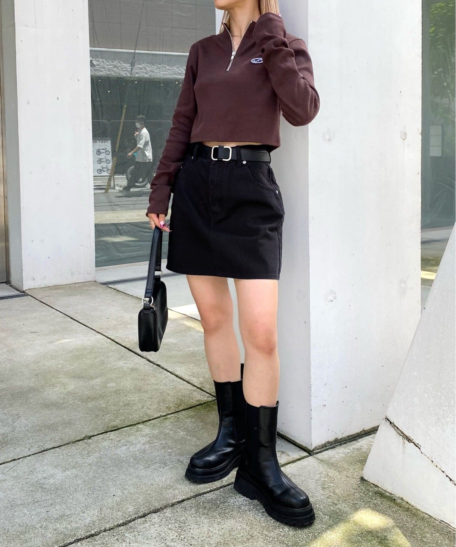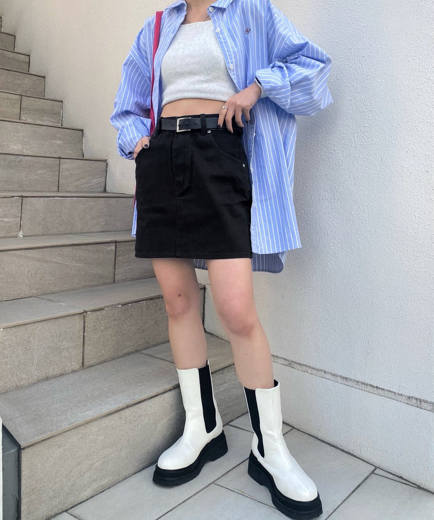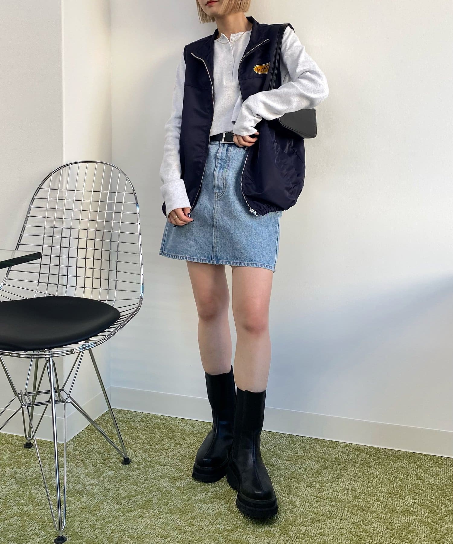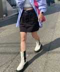 ・カジュアルコーデとの相性◎な丈感。脚を魅せる範囲が広い為、スッキリした印象に。