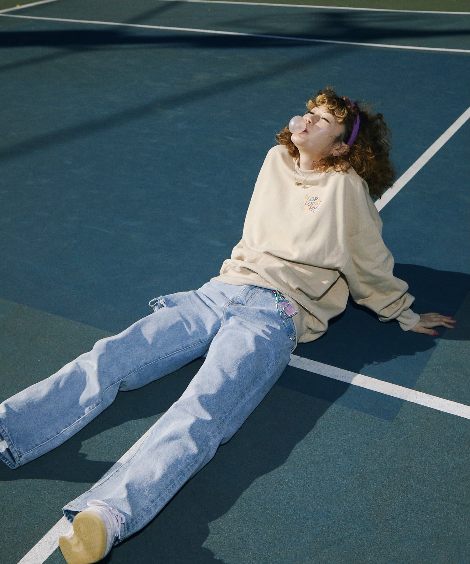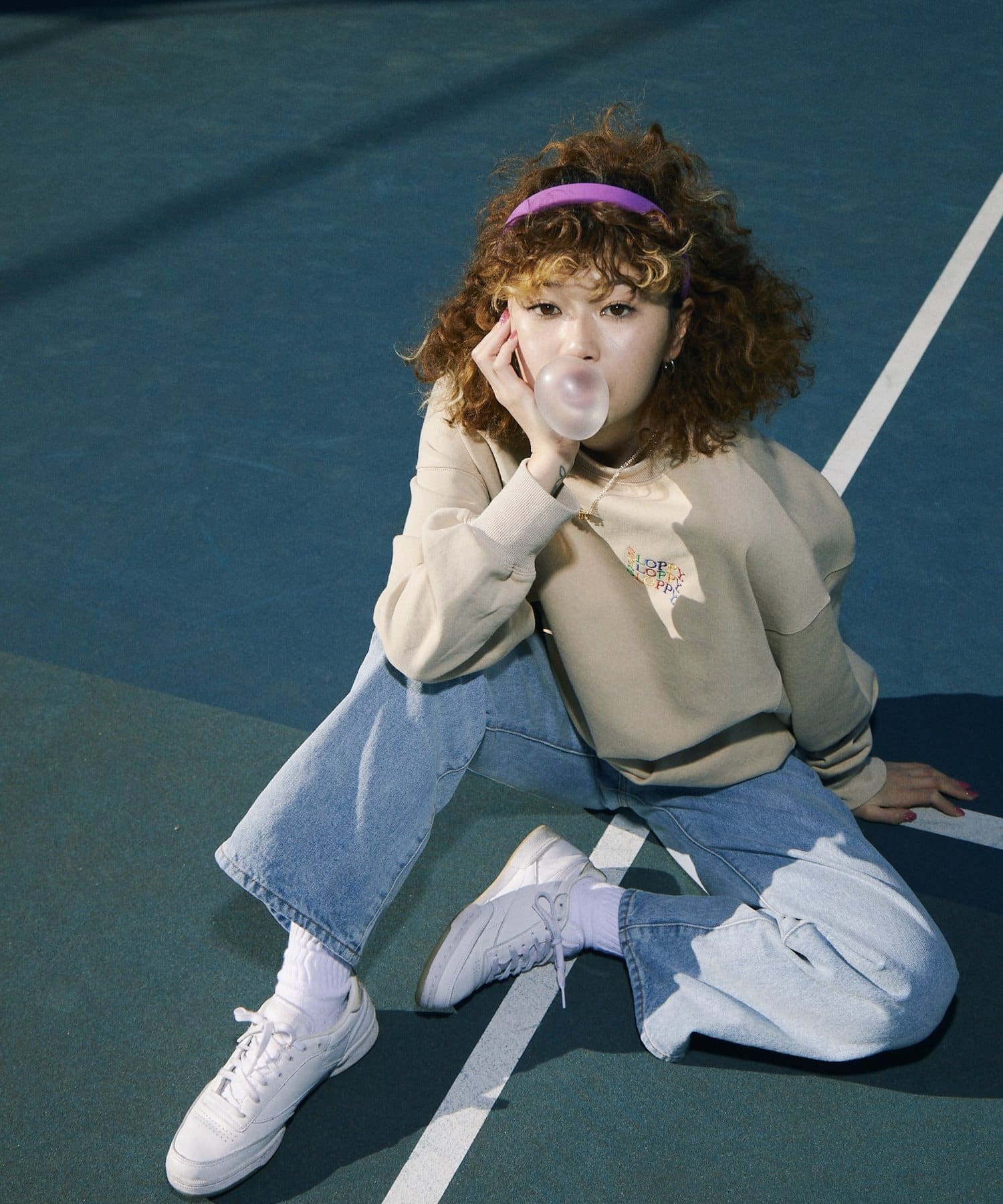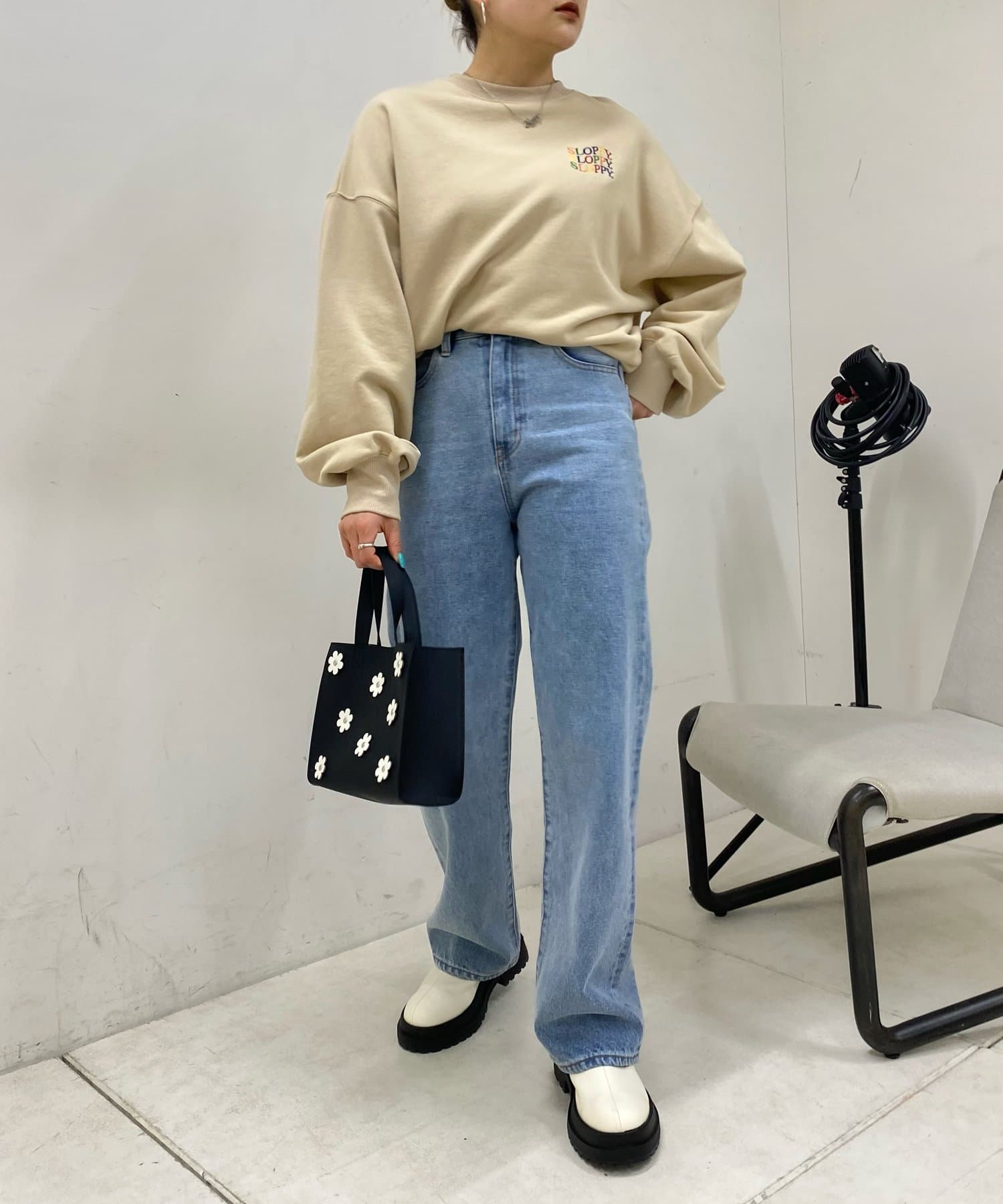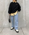 ・ちょいゆるデニムを合わせて、どこか懐かしくも今っぽいニュートロ(NEW+レトロ)コーデ。(参考カラー:ブラック/サンドべージュ)