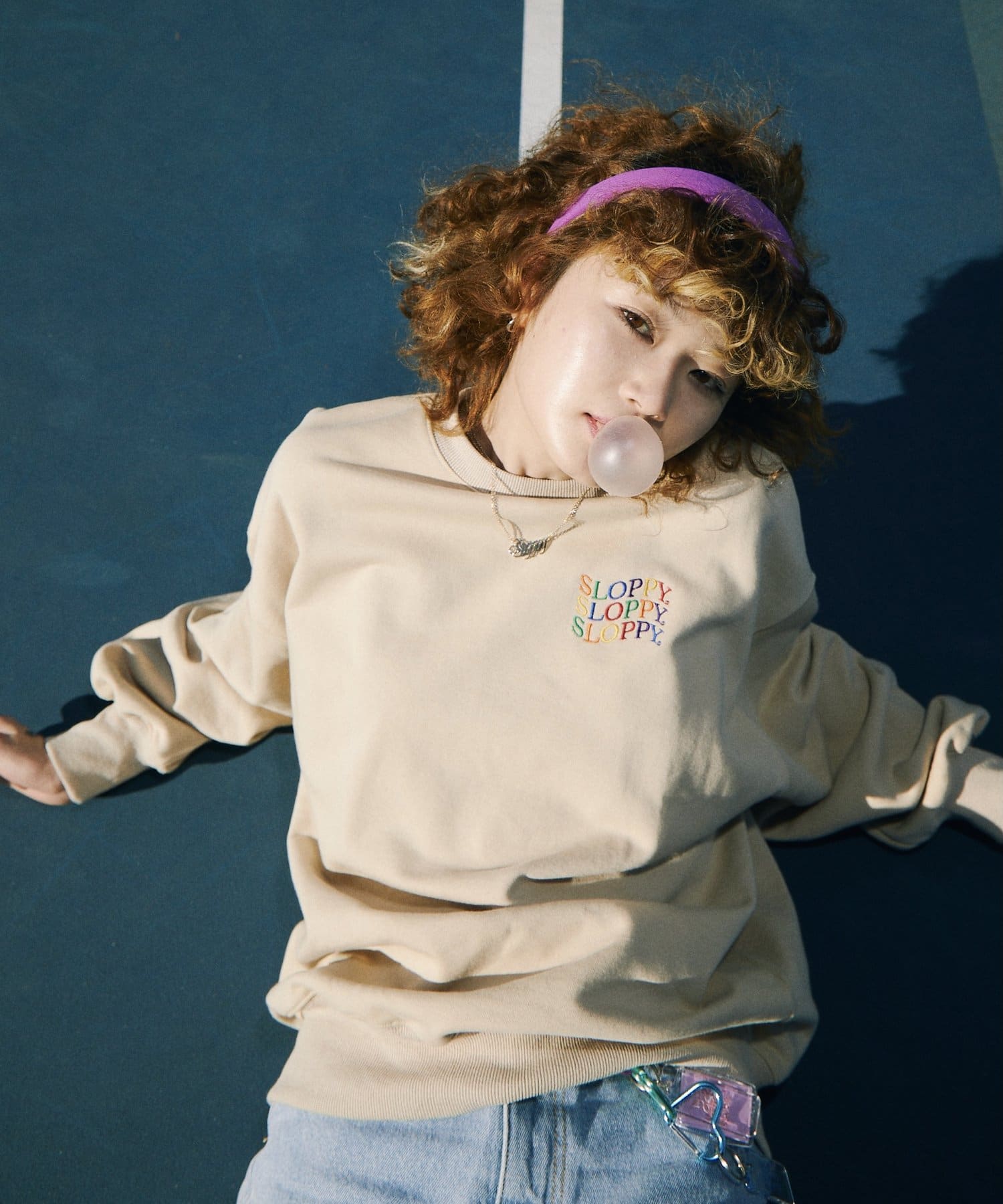 ・定番のウェーブロゴは、どこかレトロ感ある原色のレインボーカラーで。
