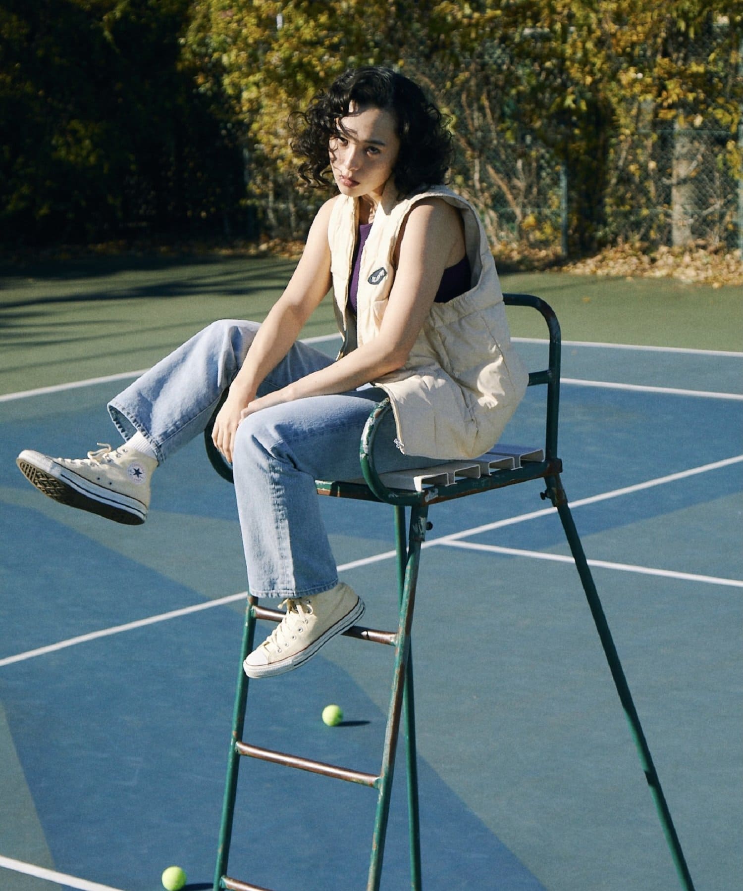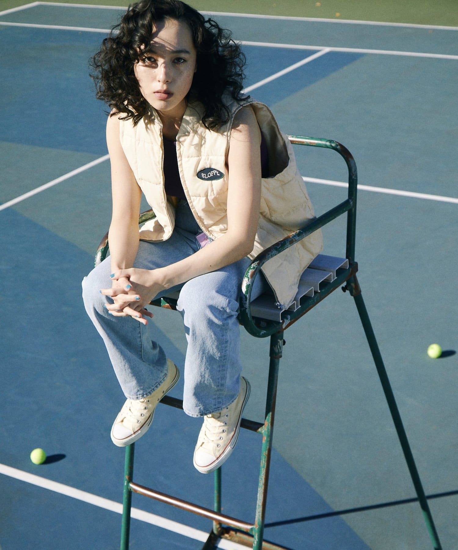 ・袖が無い分、インナーの合わせ方次第で、異なる雰囲気を楽しめます。