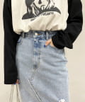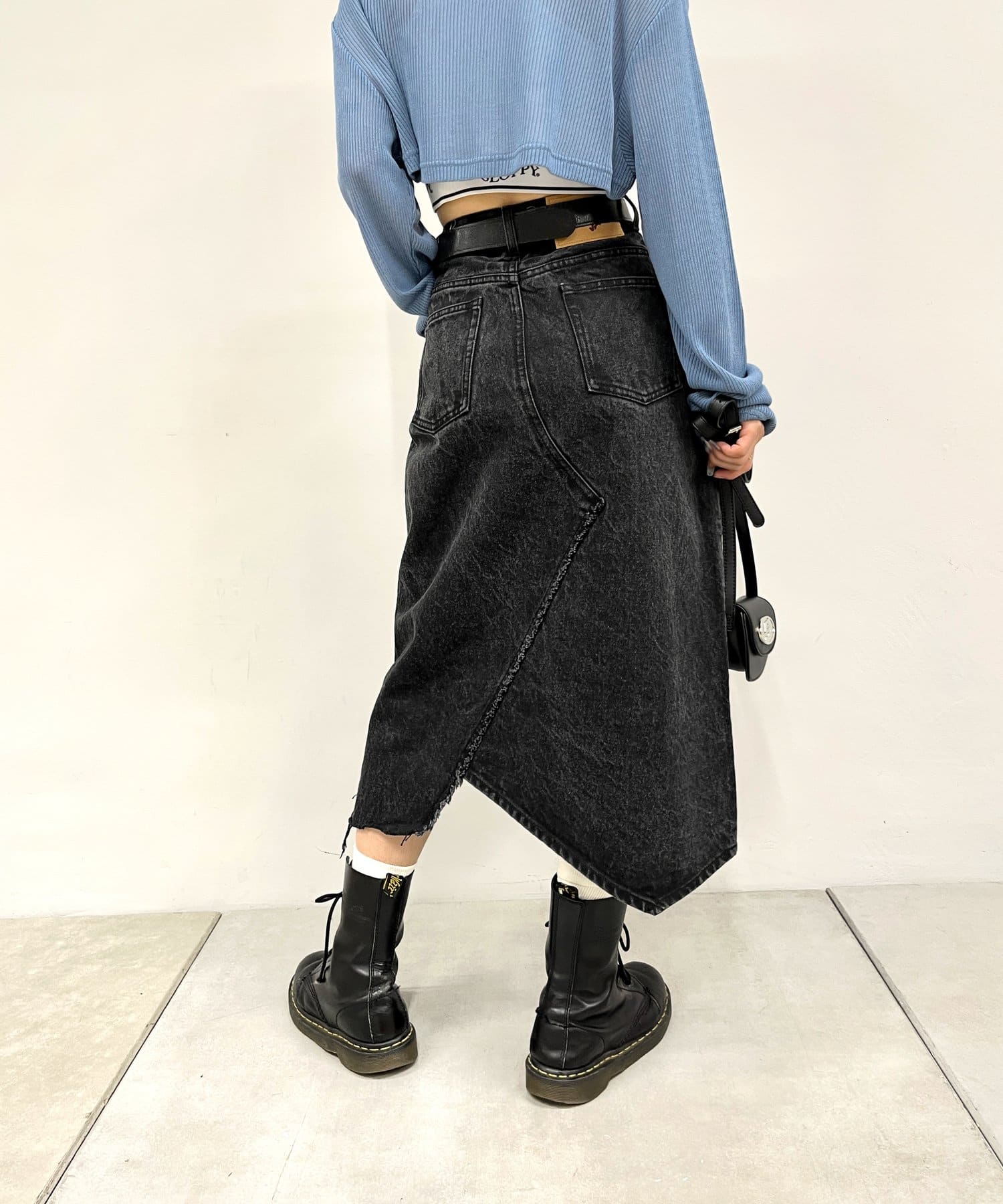 ミドル丈が新鮮。加工やデザインの効いた90sテイストなリメイク風スカート。