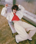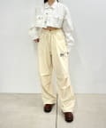 ・ショート丈×ルーズパンツでのスタイルがおすすめ。