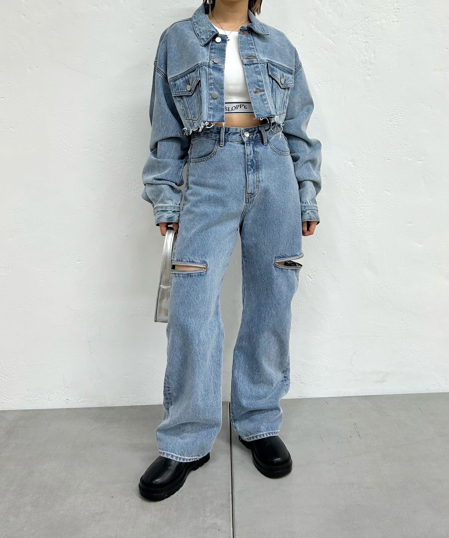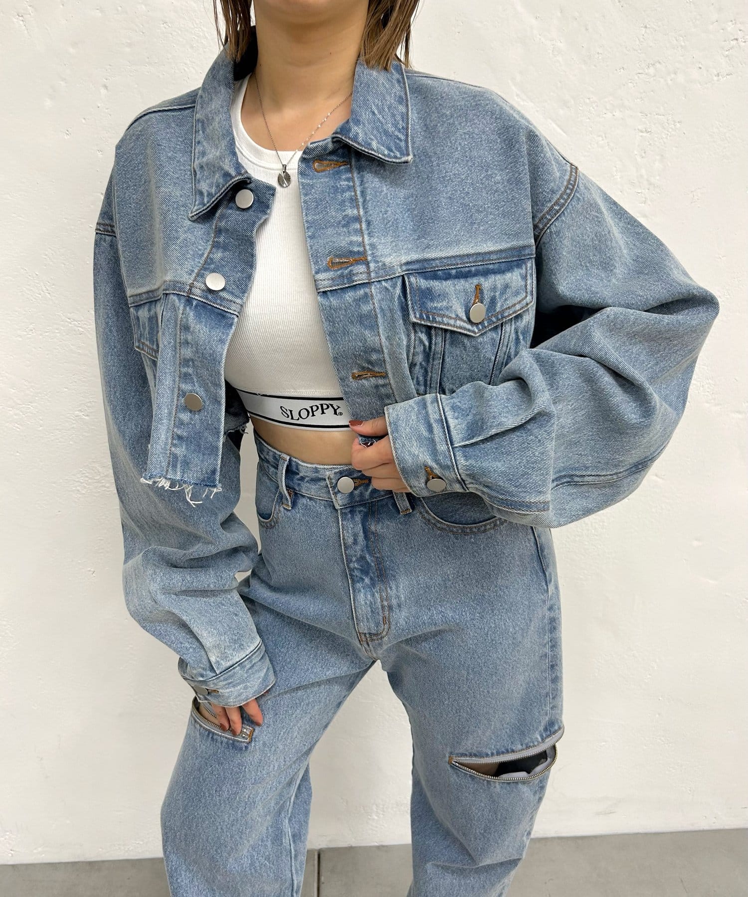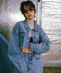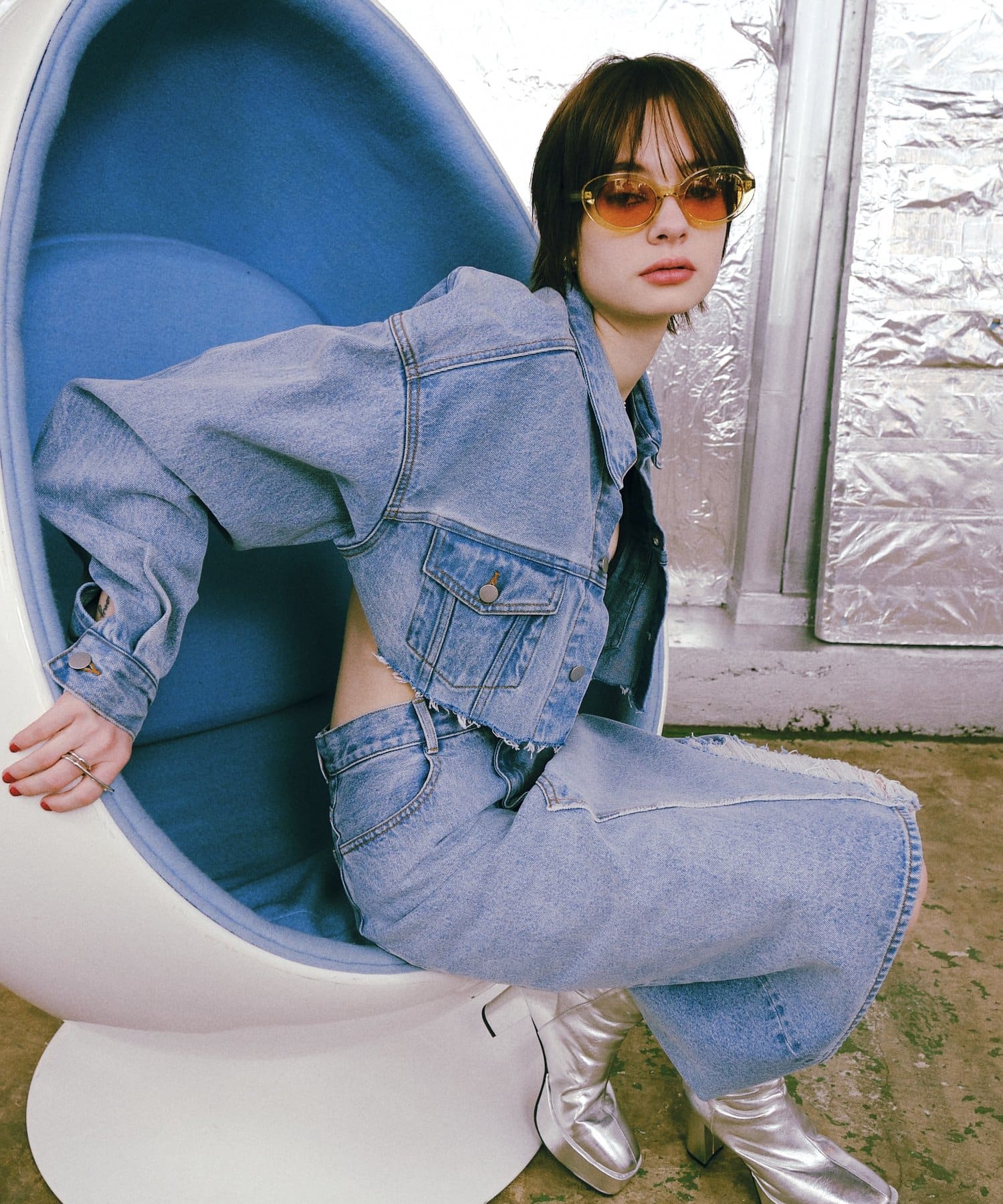 ・同色デニムと合わせたセットアップスタイルも楽しめます。