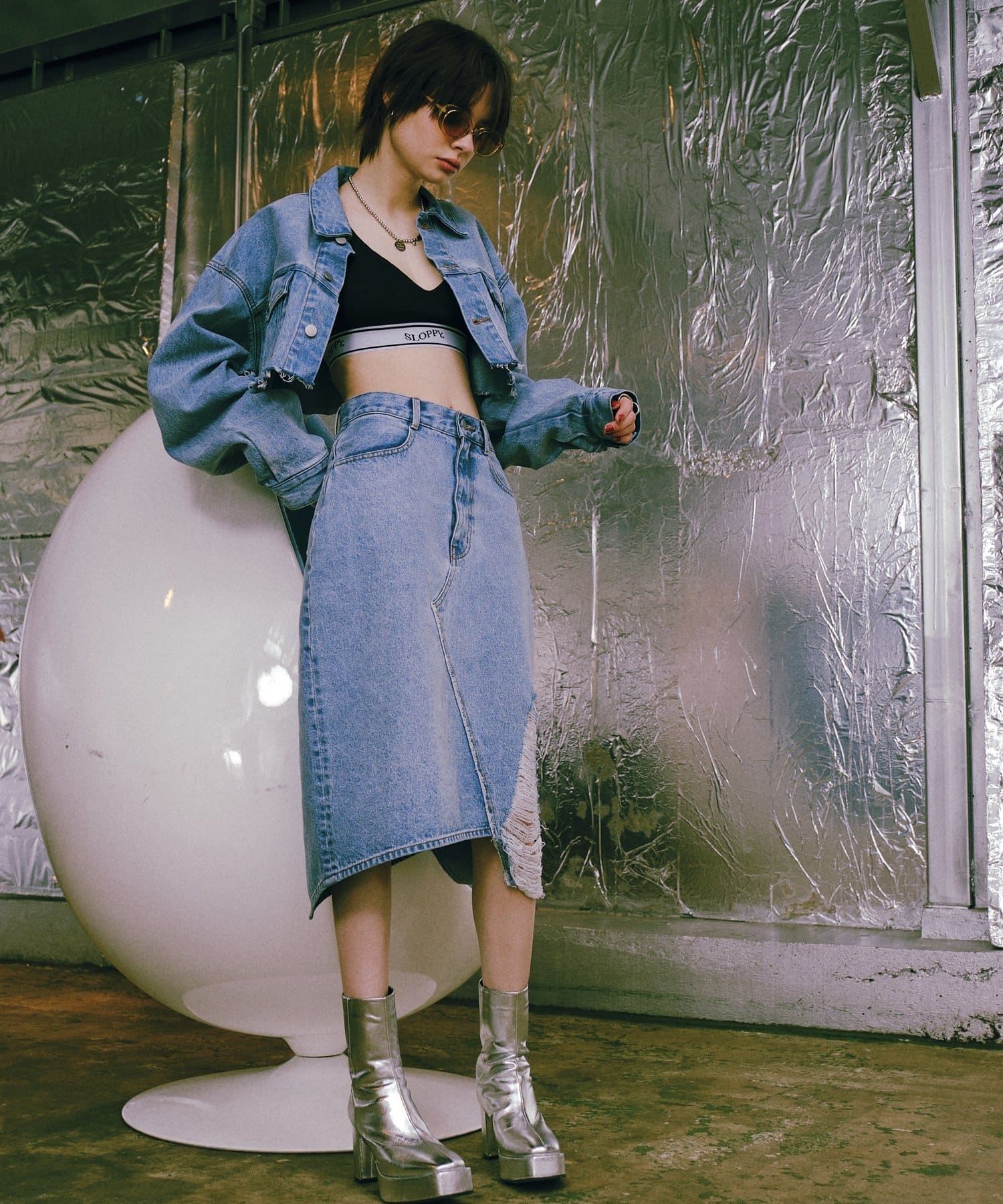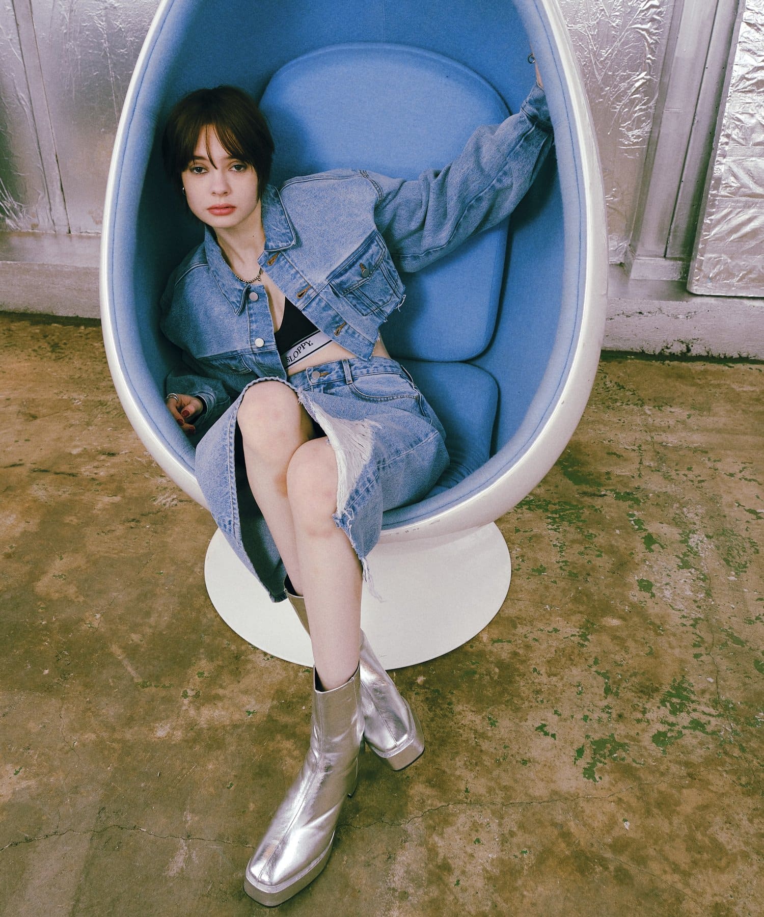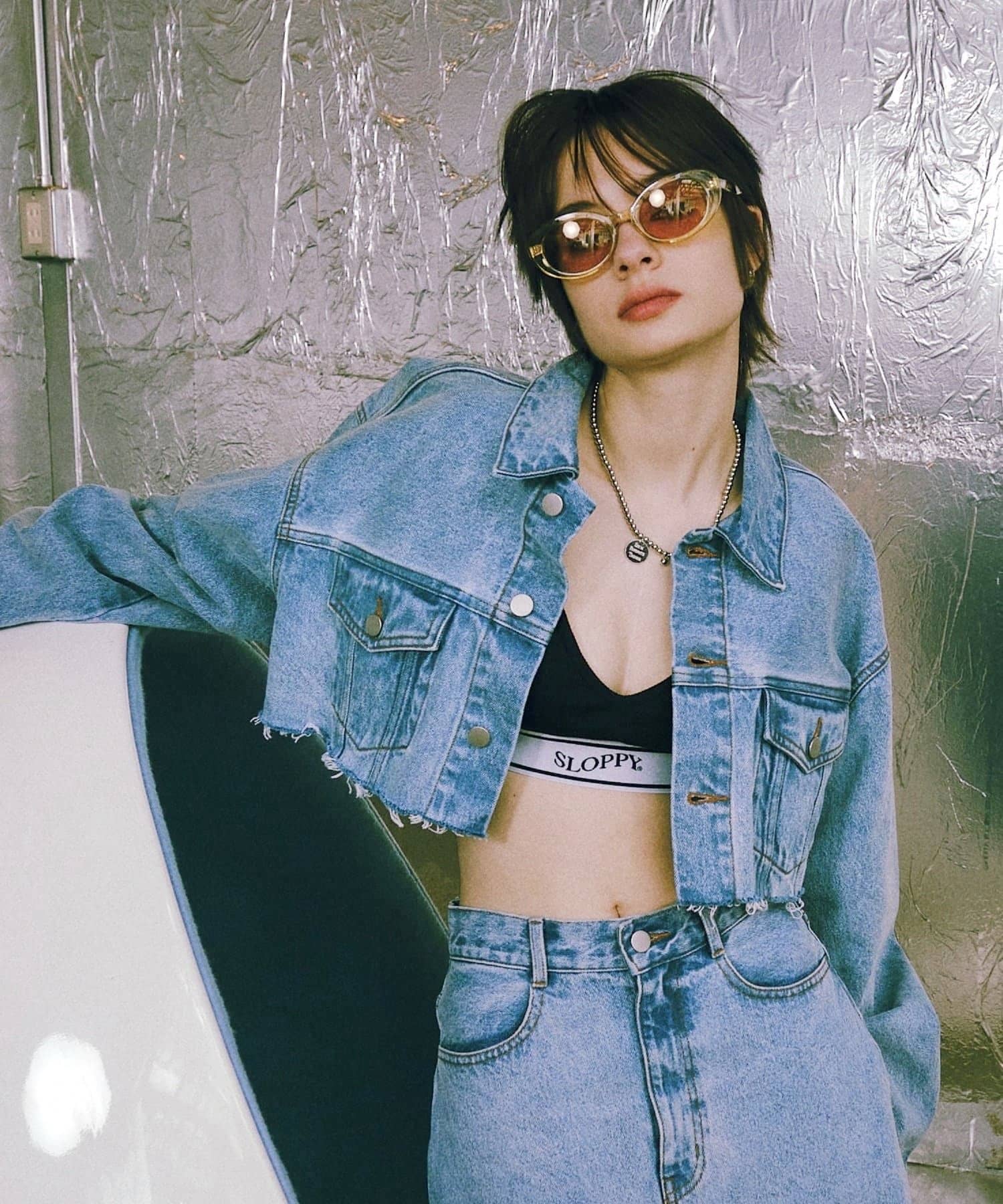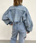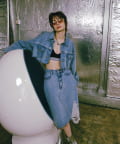 ・同色デニムと合わせたセットアップスタイルも楽しめます。