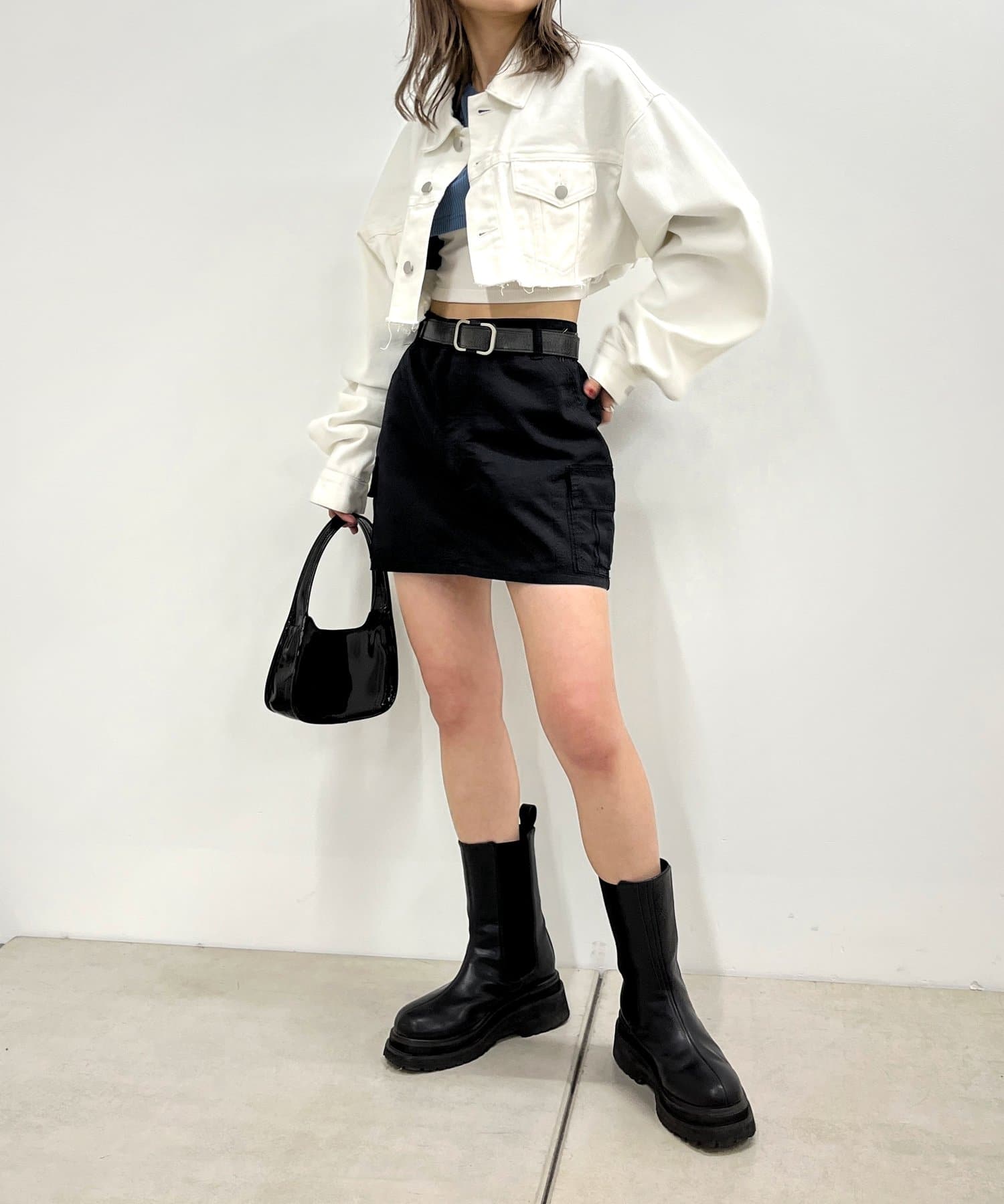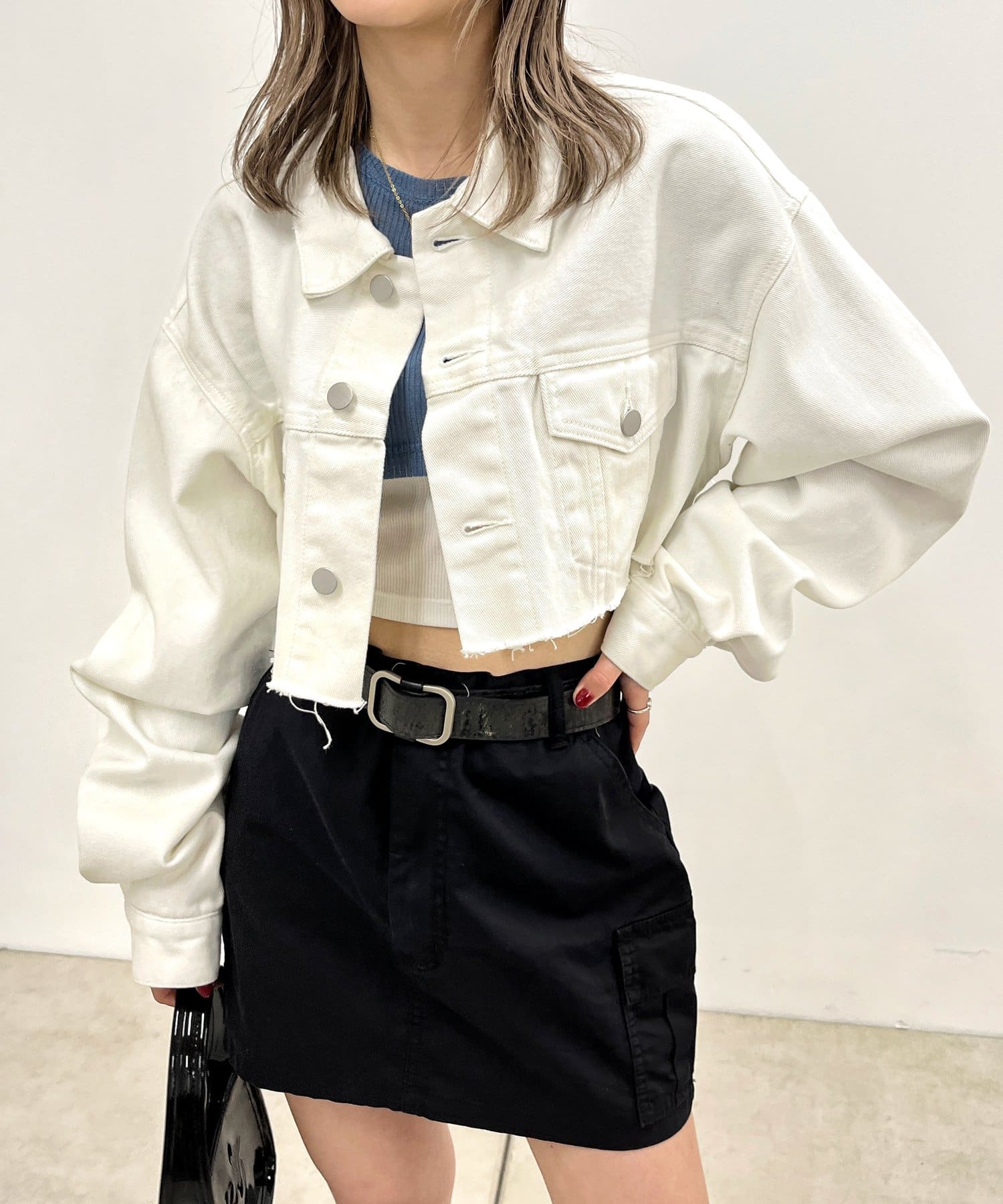 ・潔いショート丈。バランスが取りやすく、今季トレンドの短丈スタイルを楽しめます。