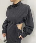 ・ハイネックやウエストサイドのホール、裾のバックスリットなど様々なデザイン要素が詰まった1枚。