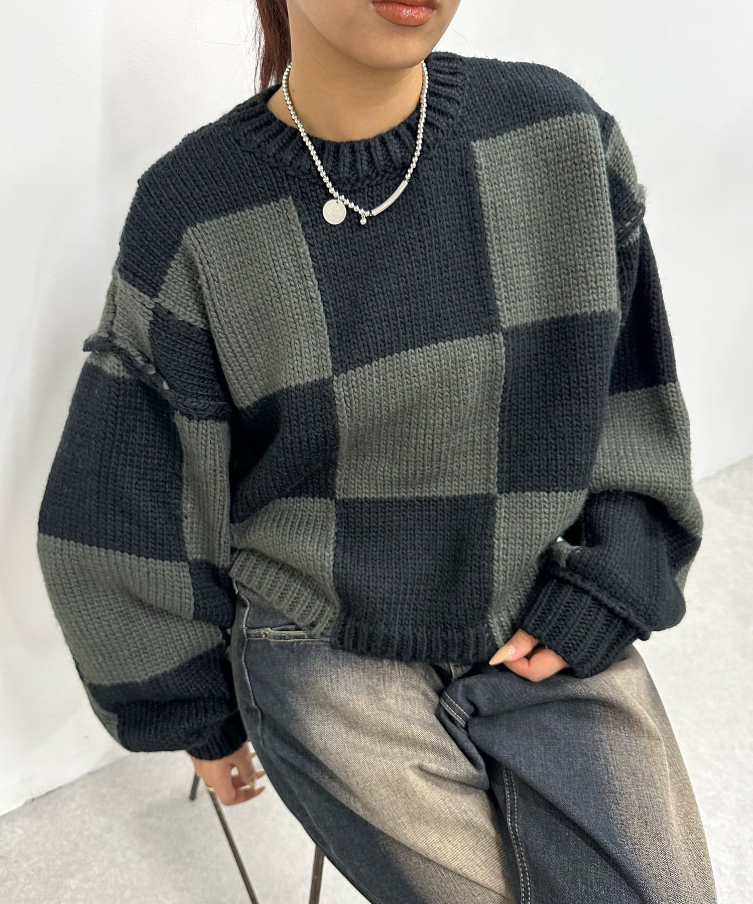 ・ざっくりと編まれたニットで、ボリューム感があり、