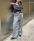 ・コンパクトなトップスには緩めのボトムスが相性抜群。