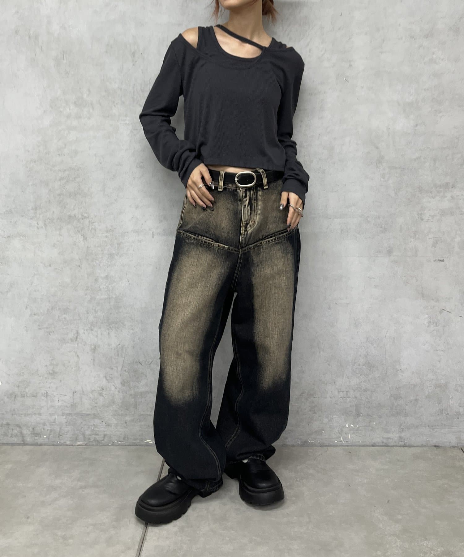 ・スラッシュポケットブラストワイドデニム(WWZ1031403A0002)