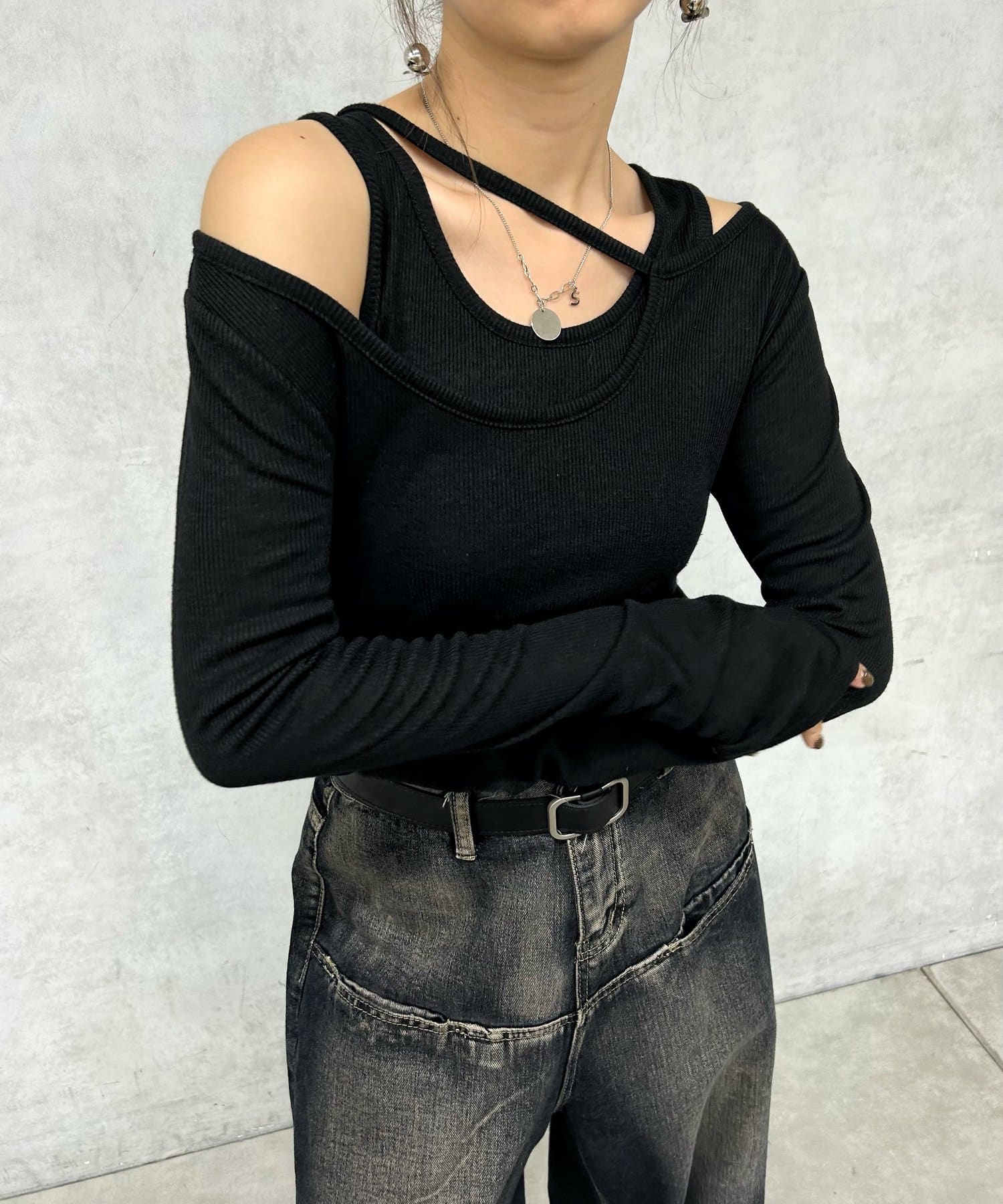 ・タンクトップと長袖カットソーがセットになったアンサンブルトップス。