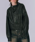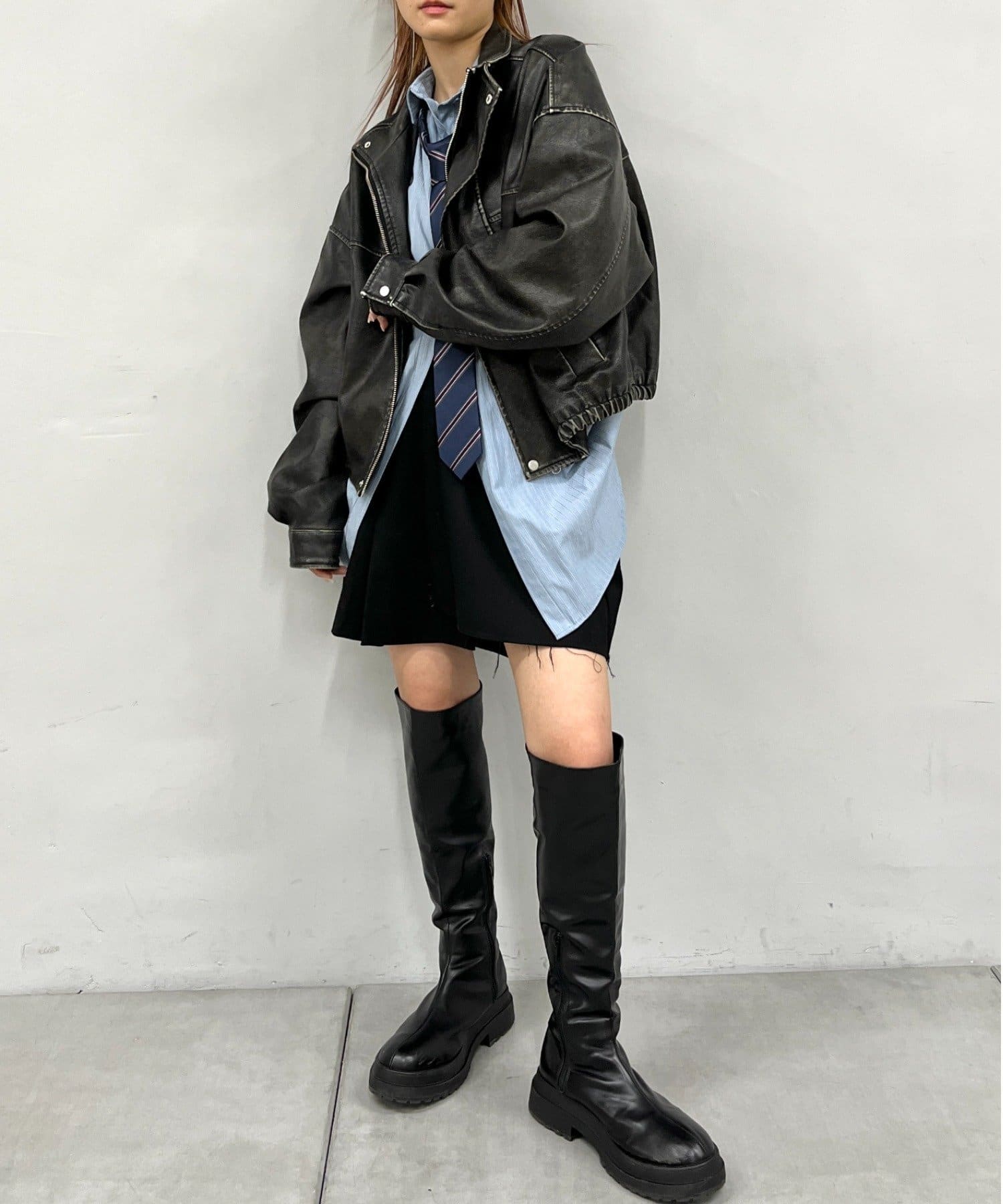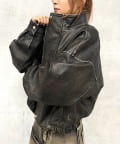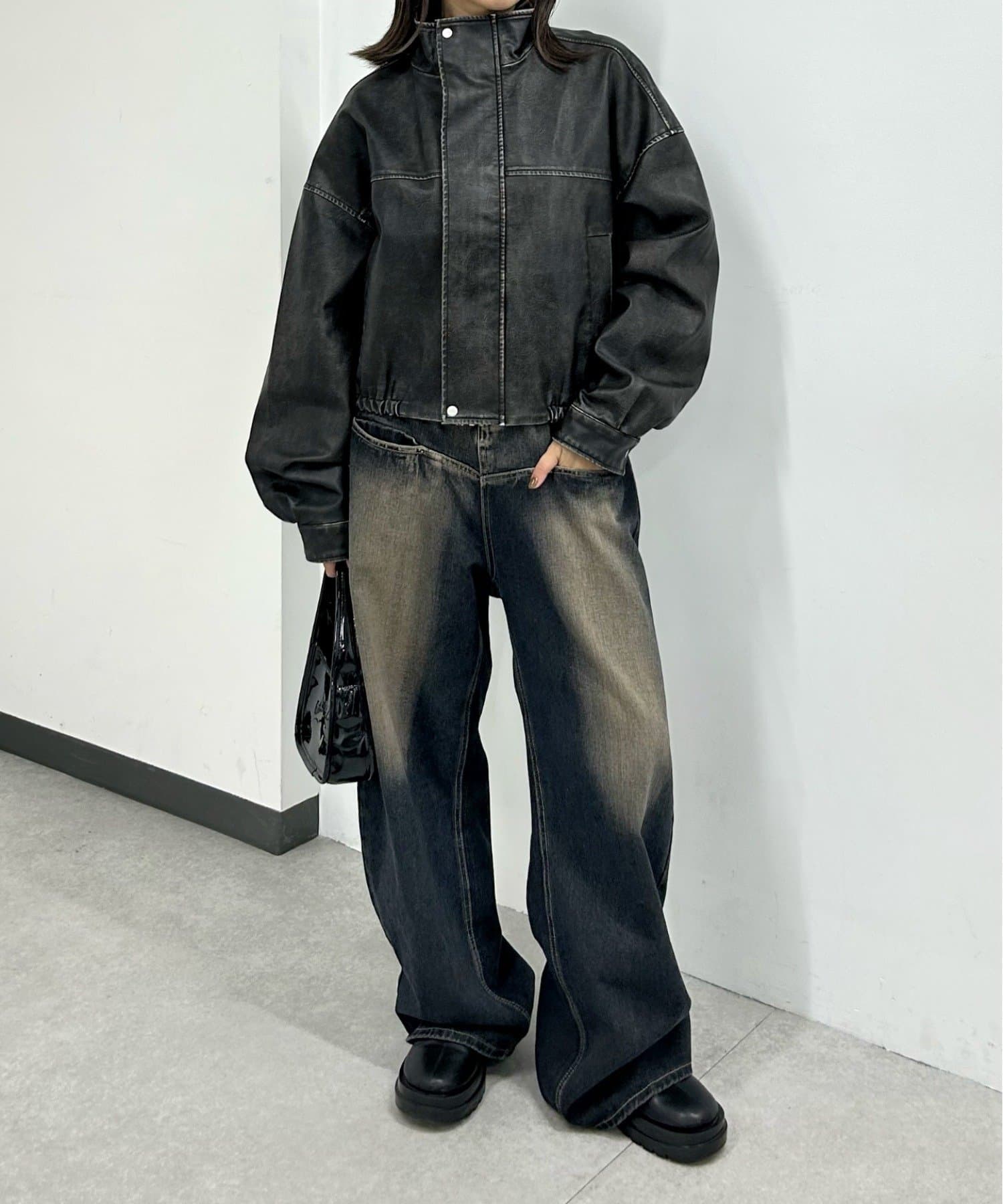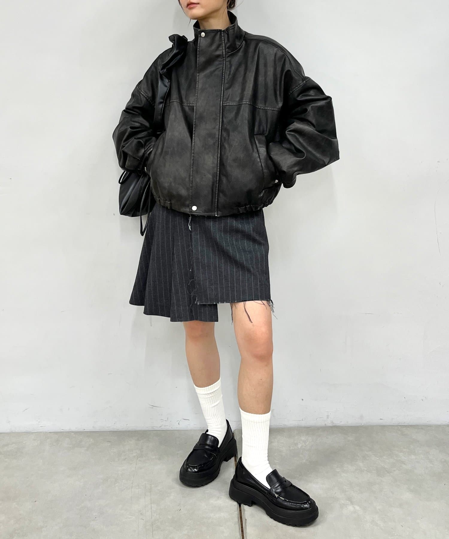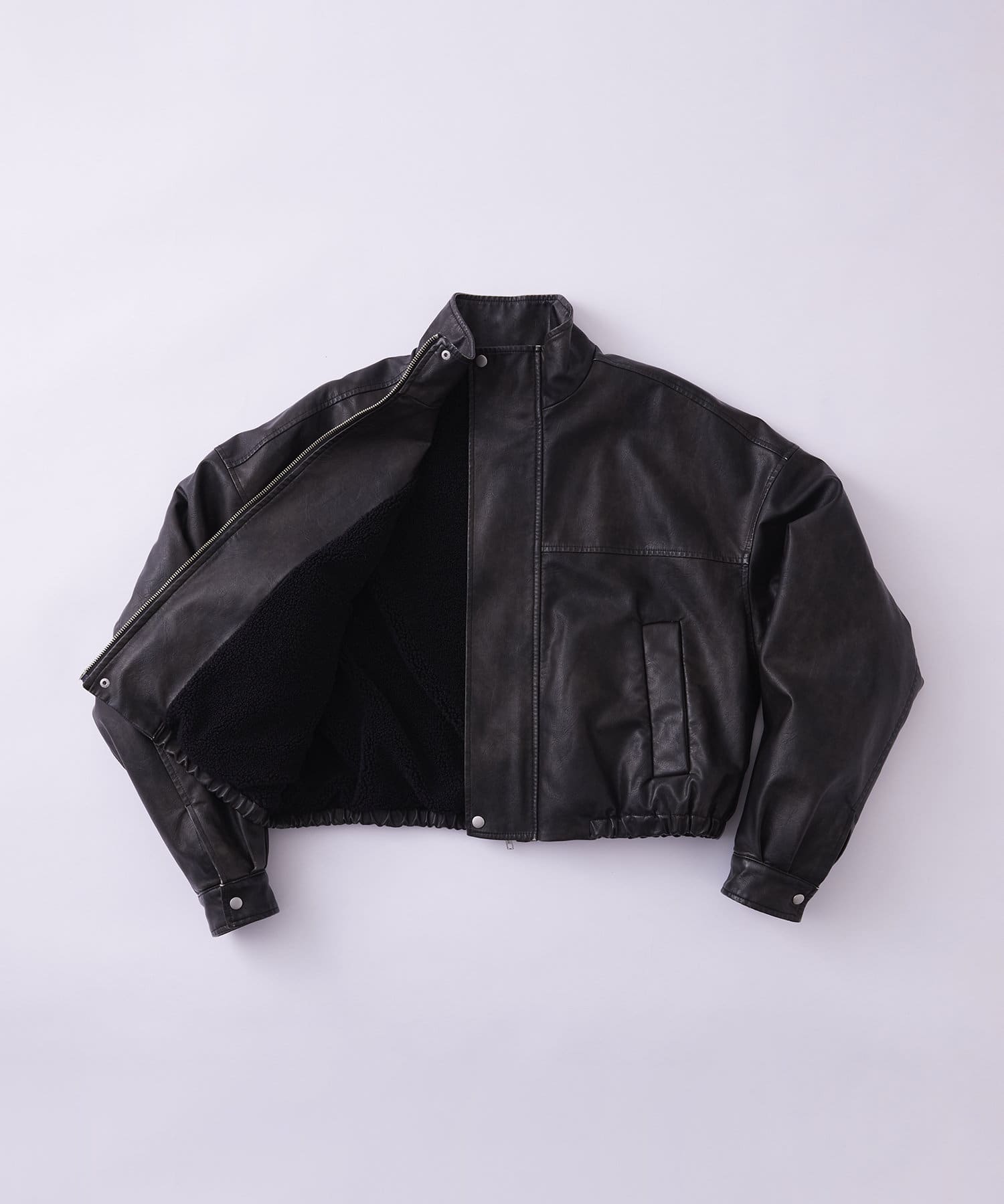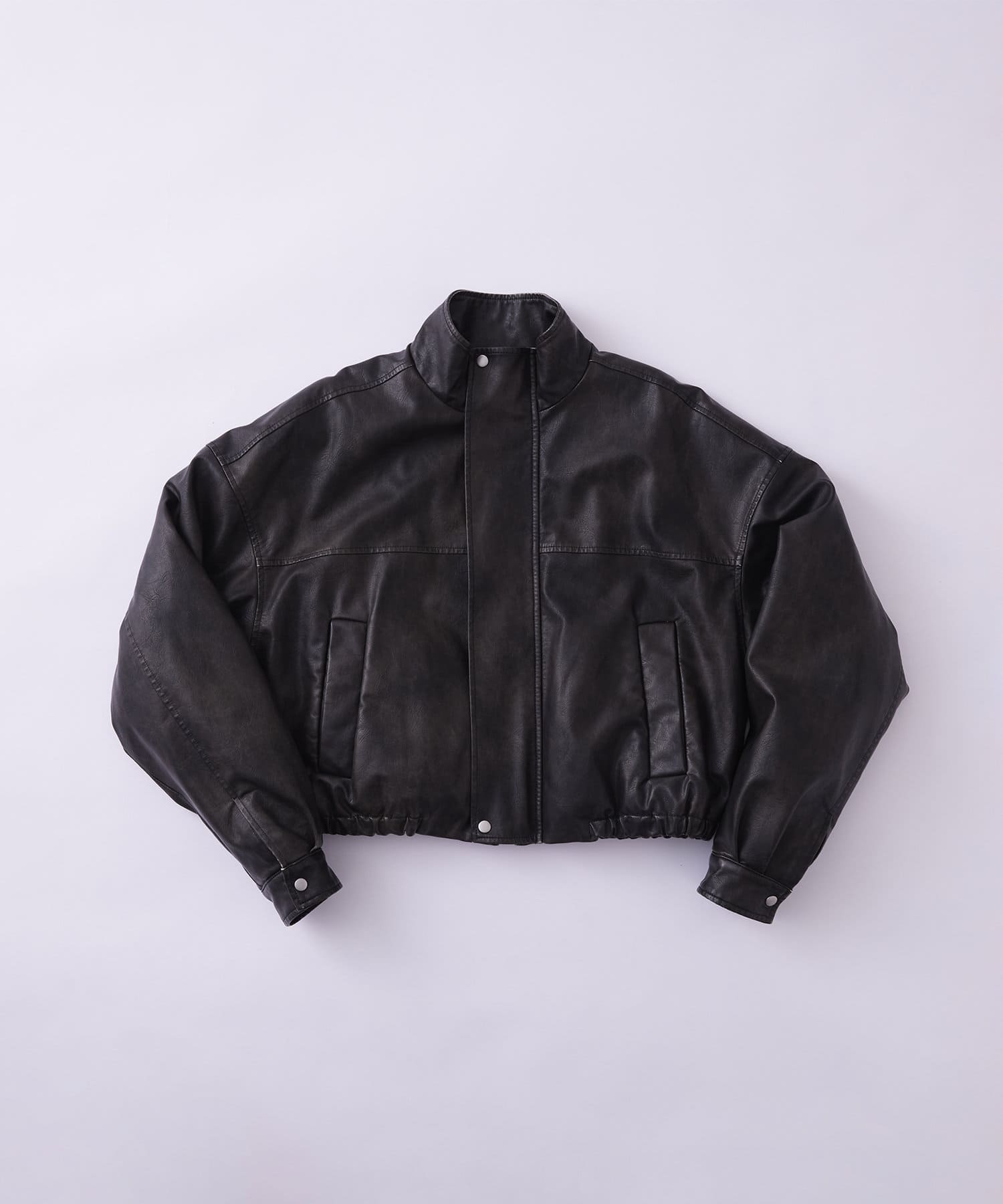 今季のトレンドのエイジング(経年変化)加工のフェイクレザーブルゾン