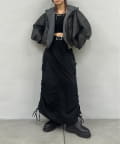 裾に絞りのデザインがあるためよりメンズライクなボックスシルエットになります。