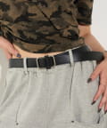 どんなコーディネートにも合わせやすいスクエア形バックルベルト