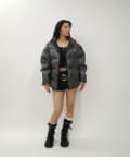 Lサイズ→ビッグシルエットでゆったりと着れて、ミニ丈のボトムスと合わせる冬の定番スタイルがオススメ。