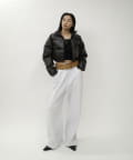 Sサイズ→トレンドのショート丈、コンパクトなサイズ感なのでトレンドのワイドデニムでスタイルアップ。