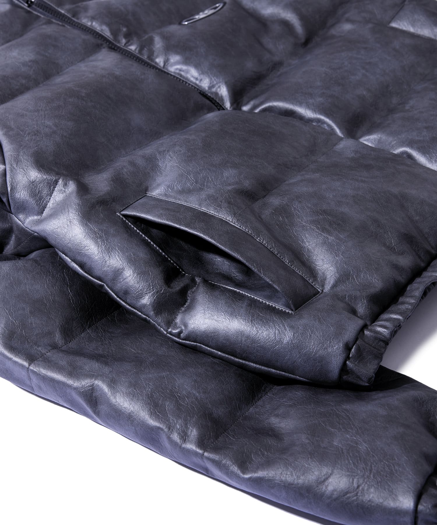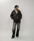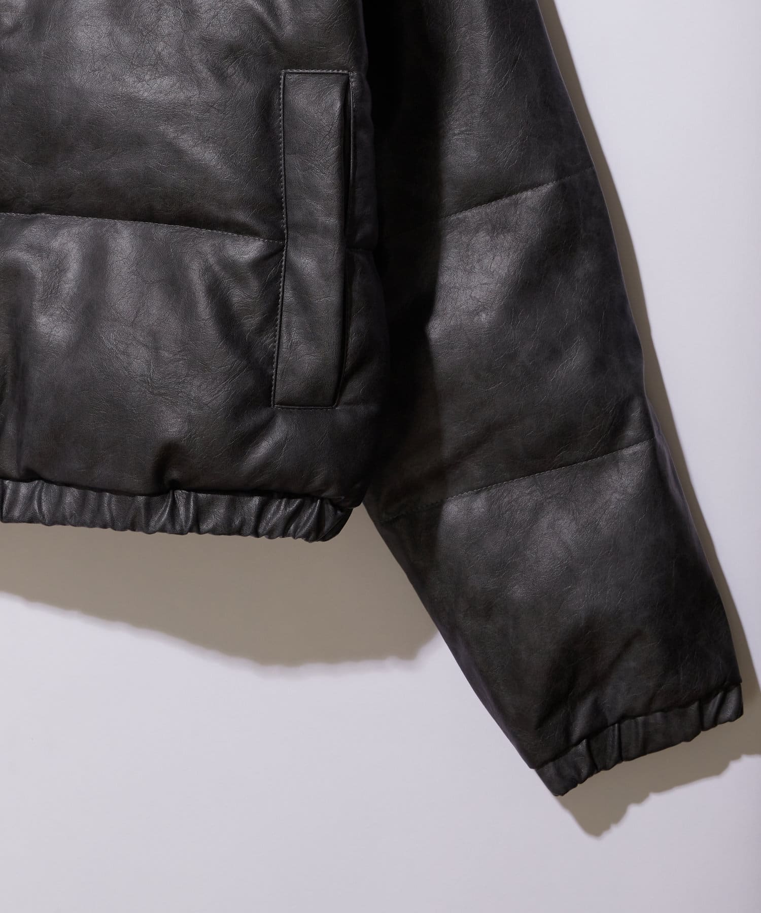 ・ヴィンテージ感のある中綿レザーブルゾン。