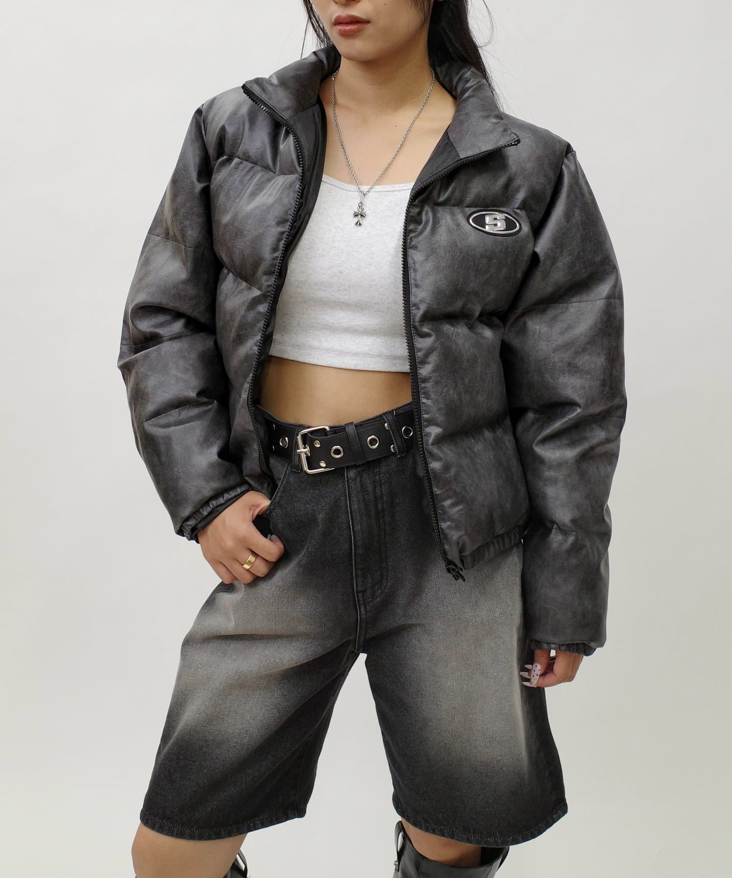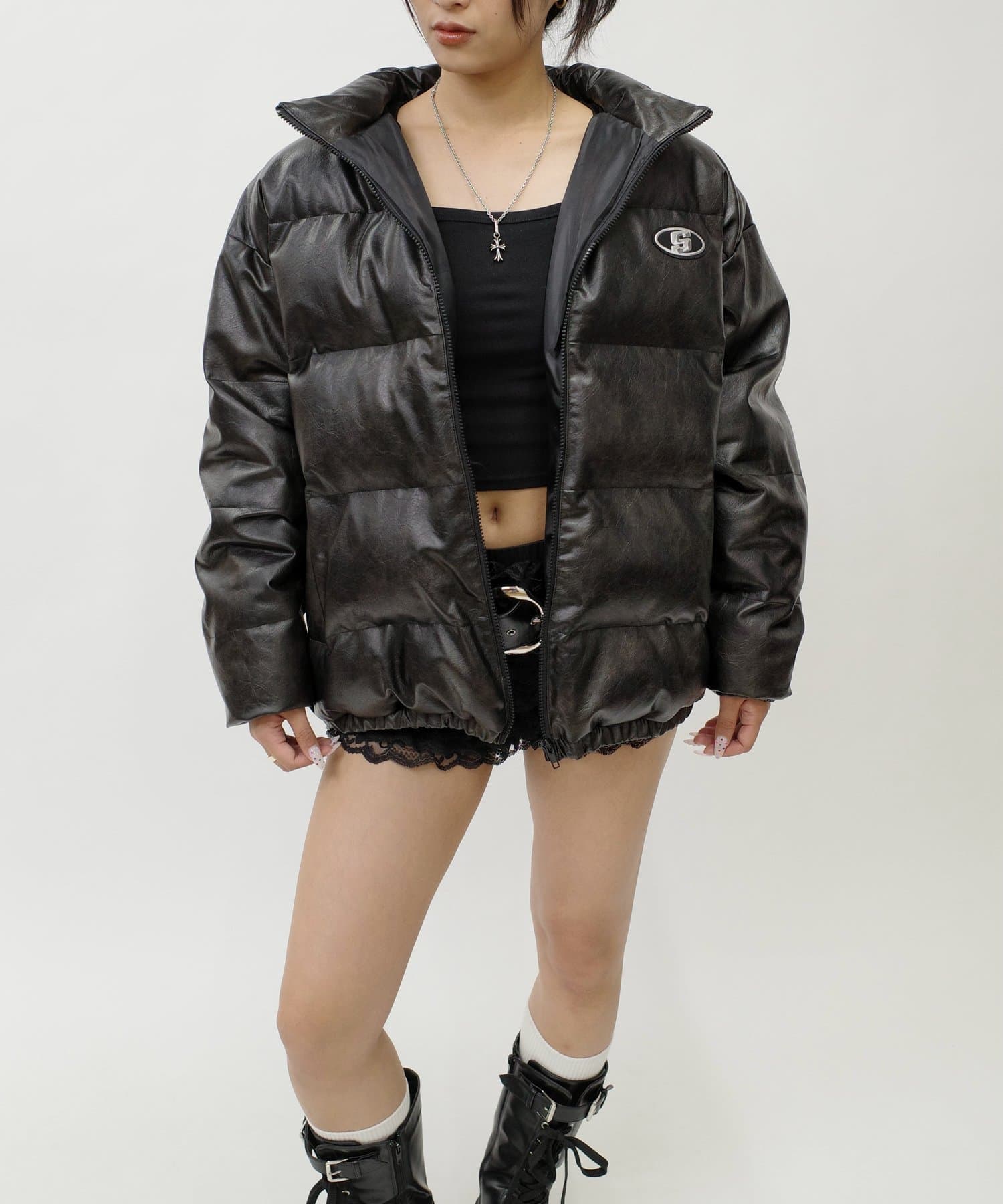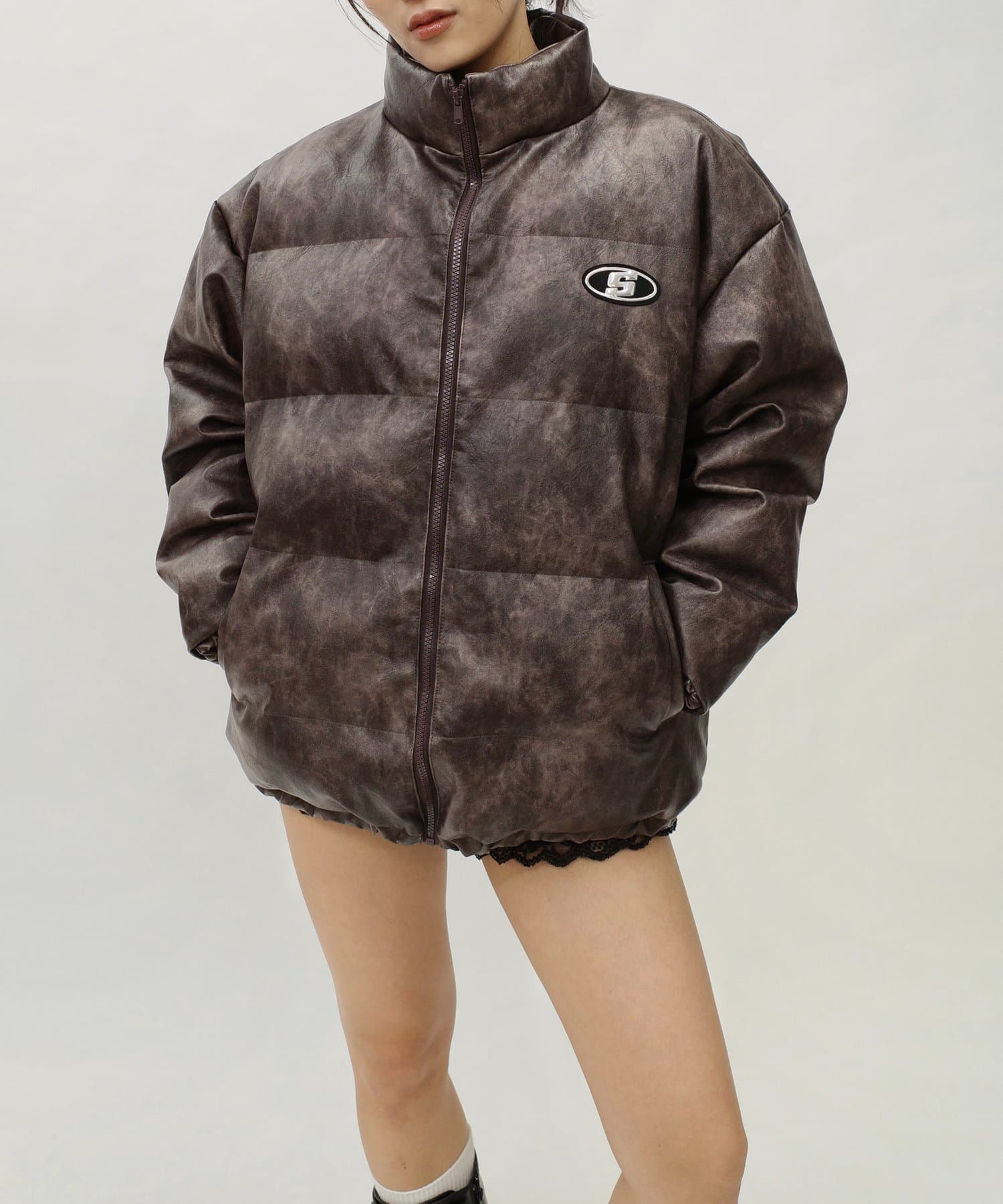 《3サイズ展開》Sロゴヴィンテージライク中綿レザーブルゾン