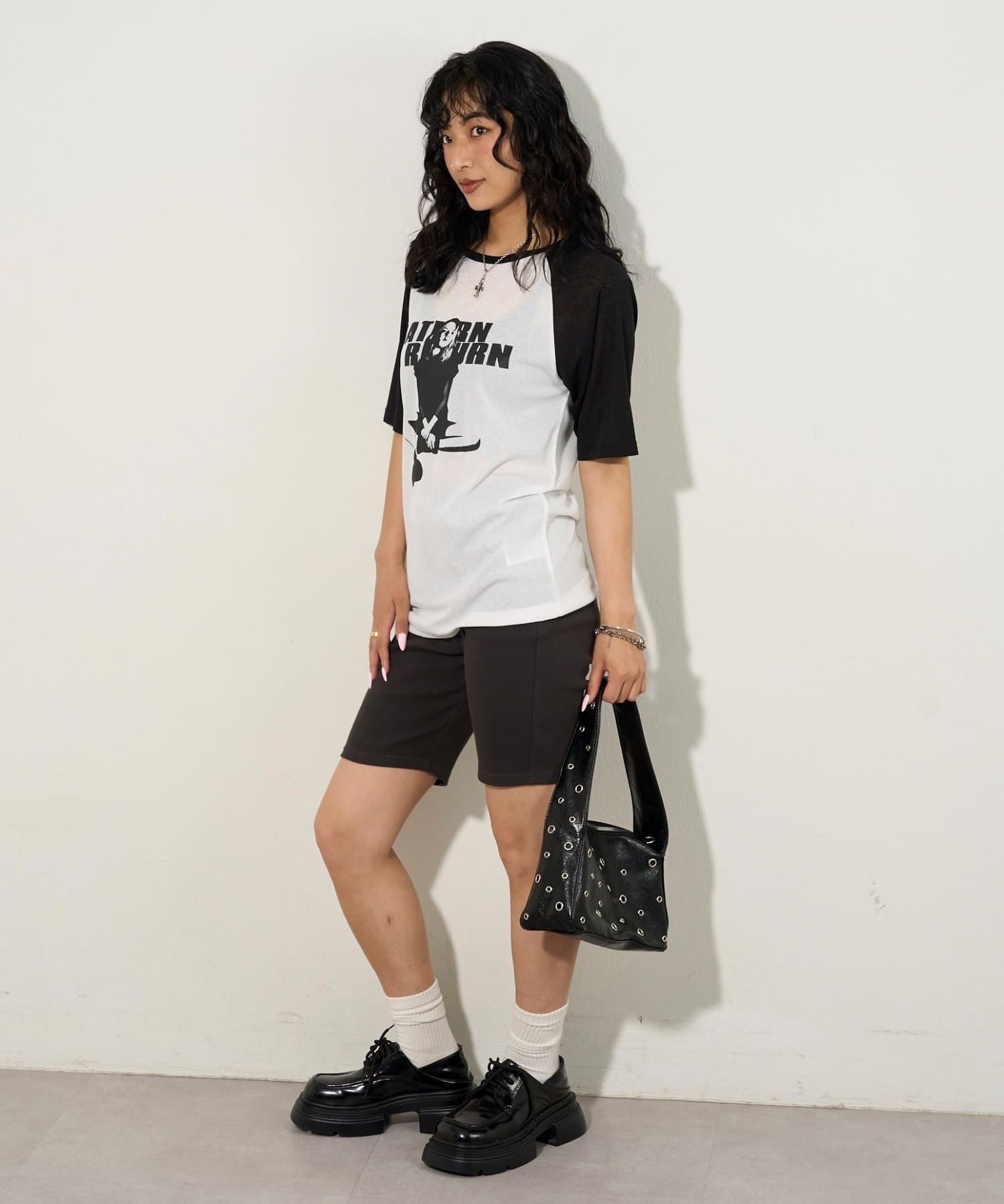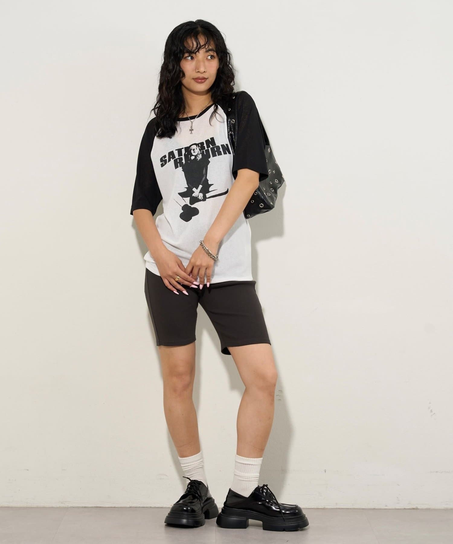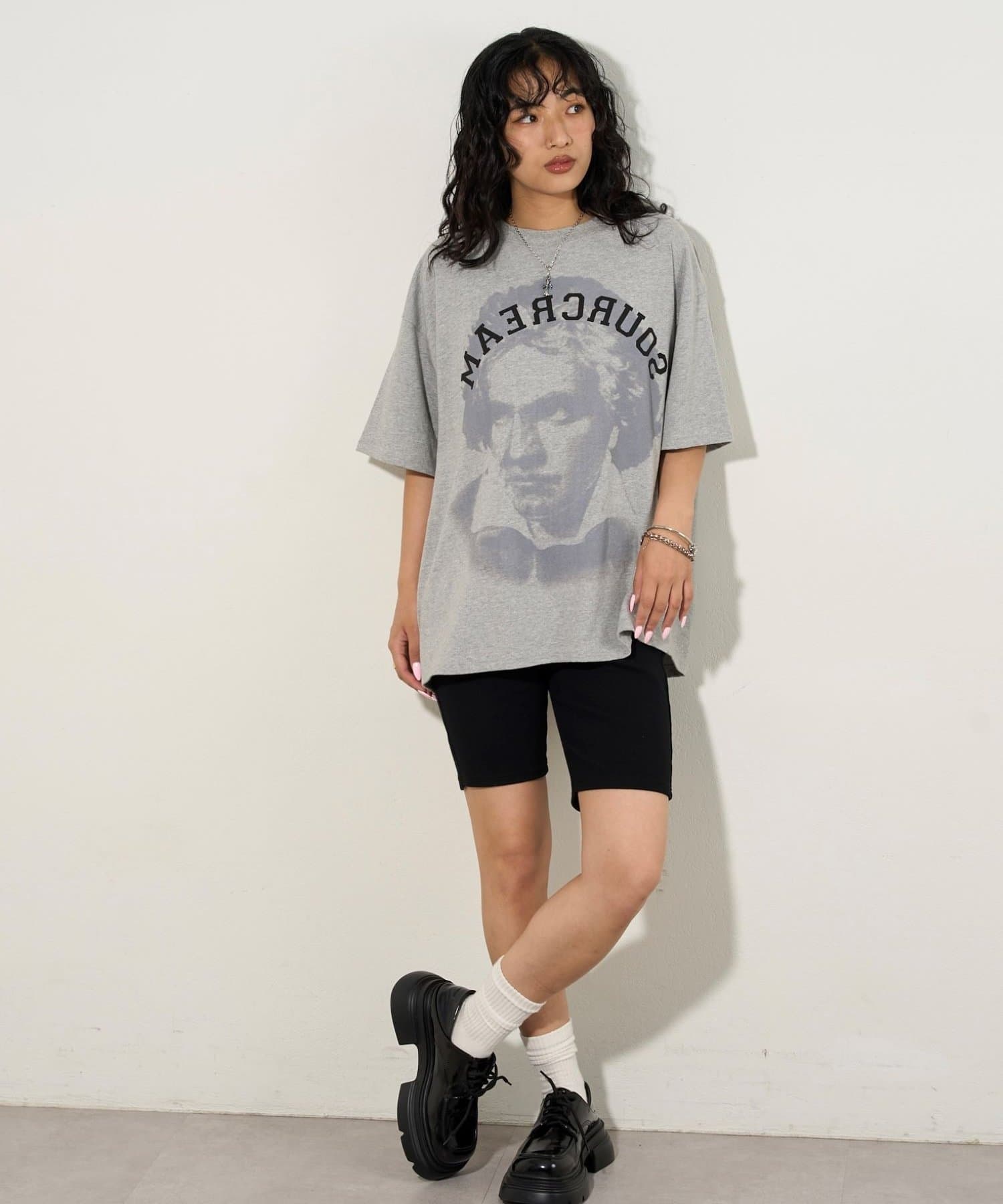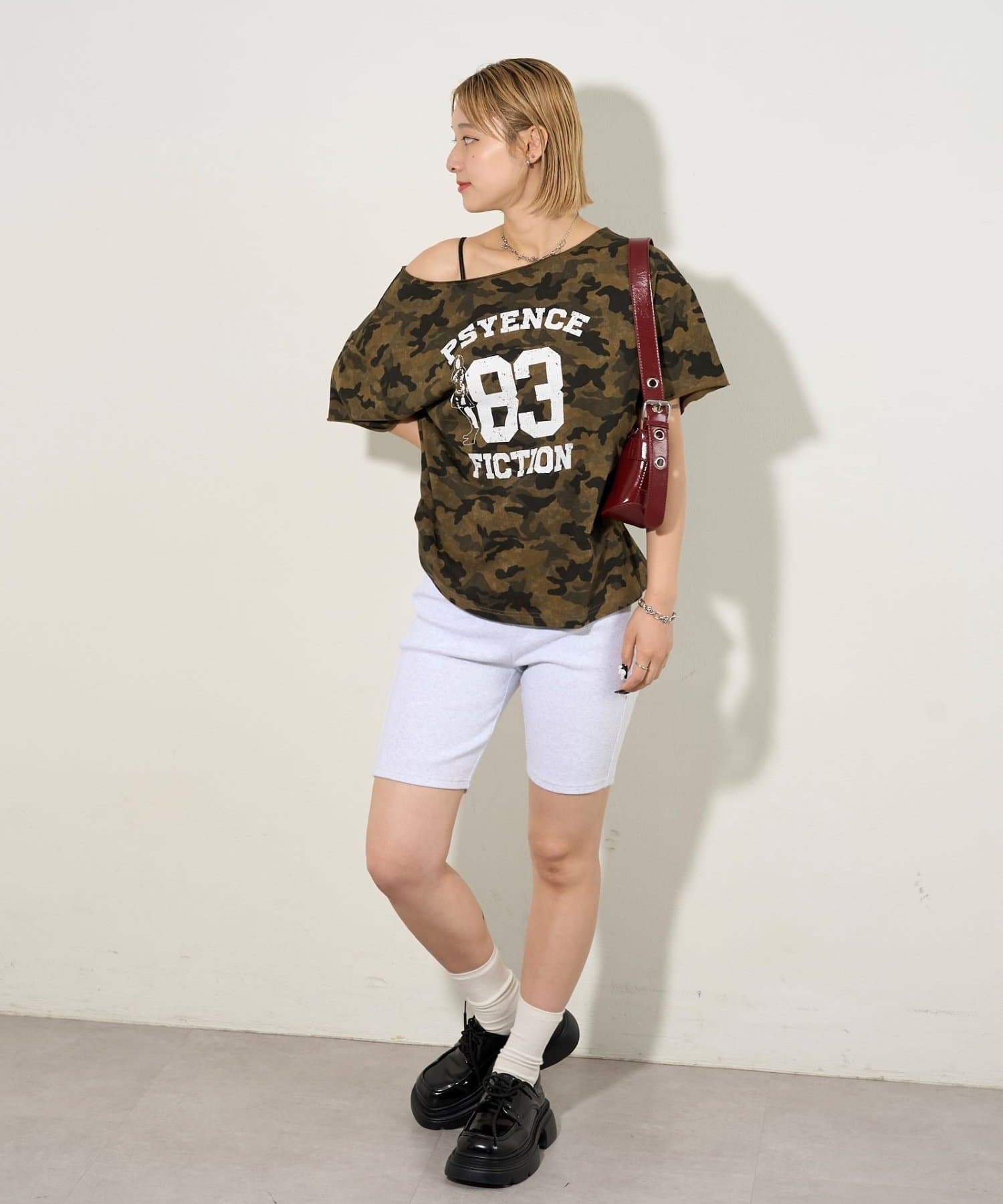 オーバーなTシャツやスウェットと合わせるのが、バランスも良く見えてオススメです。